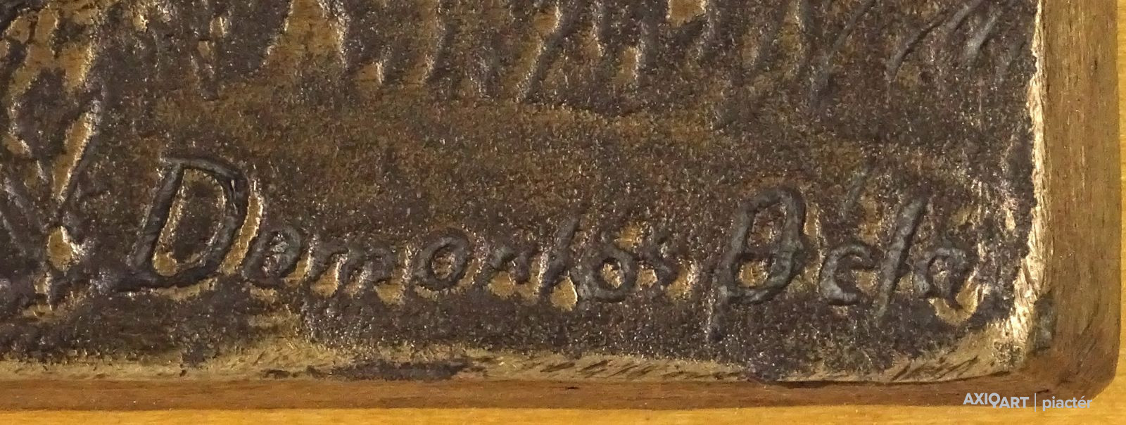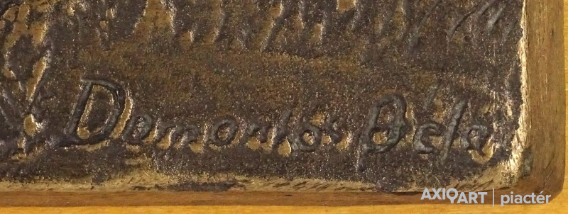 [1R373/143] Fa lapra illesztett jelzett nagy méretű bronz plakett. Hortobágyi puszta, szürkemarha és gémeskút plasztikus megjelenítéssel. Jelzés jobbra lent: DOMONKOS BÉLA Magasság: 34 cm Szélesség: 50 cm Súly: 7.025 kg Domonkos Béla szobrász Kispest, 1934-02-25 Szerző: Szolláth György Autodidakta, mestere: Pátzay Pál. 1974: Kőrösi Csoma Társaság díszdoktora; 1981: Kiváló Társadalmi Munkáért; 1984: Kőrösi Csoma Sándor-díj; 1985: Mezőgazdaság a művészetben, különdíj; 1987: Szocialista Kultúráért; 1992: Nagy Lajos-díj. Háromszáznál több szobrot, domborművet és kisplasztikát készített. Irodalom LOSONCI M.: ~ életútja, Mai Magyar Művészet, 1989. LOSONCI M.: Érden ~nél, Pest Megyei Hírlap, 1987. POGÁNY Ö. G.: ~ munkássága (1990, 1993. kat.) ACSAI J.: A feleségek felesége. Szendrei Júlia szobra, Új Tükör, 1986. Egyéni kiállítások Egyéni kiállítások 1978 • Művelődési Ház, Budakeszi • Művelődési Ház, Kiskunlacháza 1982 • Képcsarnok, Győr 1986 • Művelődési Ház, Kiskőrös • Iskola Galéria, Budapest-Csepel 1989 • Művelődési Ház, Csákvár 1992 • Sportcsarnok, Budapest Válogatott csoportos kiállítások Válogatott csoportos kiállítások 1979 • Tisztelet a mesternek, Kapuvár 1980 • Mezőgazdaság a művészetben, Mezőgazdasági Múzeum, Budapest • Pest Megyei Tárlat, Szentendre 1982 • Érd • Halászat a képzőművészetben, Baja 1983 • Az erdők világa, Csontváry Terem, Budapest • Petőfi a képzőművészetben, Kiskőrös 1986 • Petőfi és az Alföld, Kiskőrös 1989 • Erdélyi menekültek segélye, Újkori Történeti Múzeum, Budapest 1991 • Hódmezővásárhely Művek közgyűjteményekben Művek közgyűjteményekben Bábolnai Múzeum • Földrajzi Múzeum, Érd • Pannon Egyetem, Kaposvár.    Forrás: artportal.hu