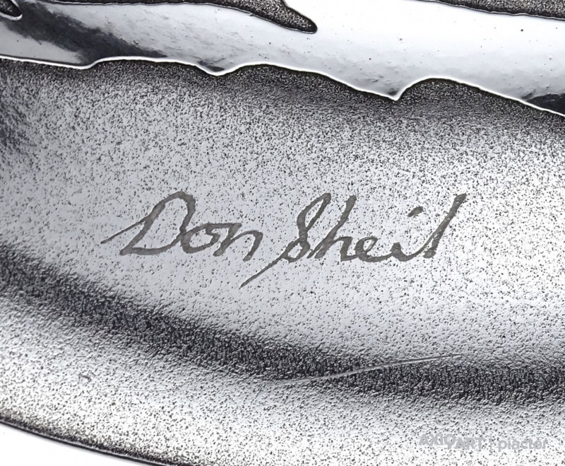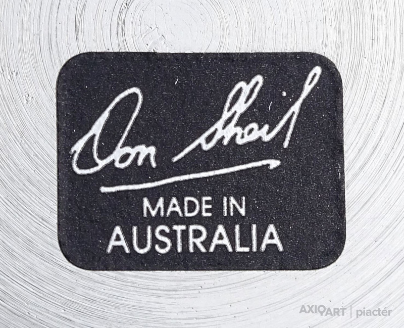 [1J412/X027] Hibátlan állapotú, jelzett fém tányér, dísztányér. Rajta gyönyörű waratah virág díszítéssel. Jelzés: DON SHEIL Hátoldalán címke, rajta felirat: DON SHEIL MADE IN AUSTRALIA Szélesség: 19 cm Súly: 0.23 kg