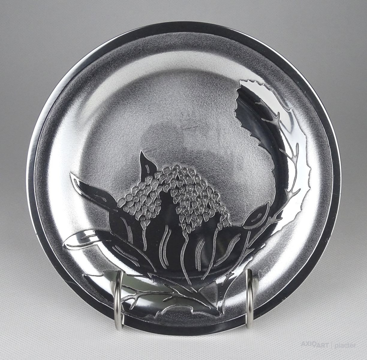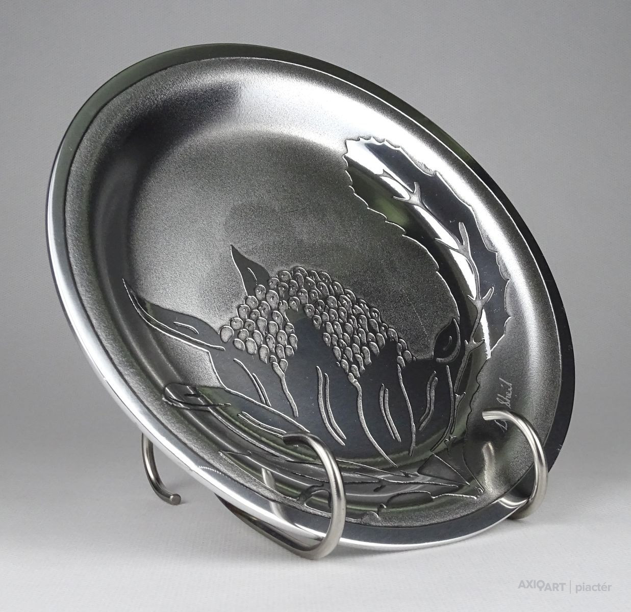 Hibátlan állapotú, jelzett fém tányér, dísztányér. Rajta gyönyörű waratah virág díszítéssel.