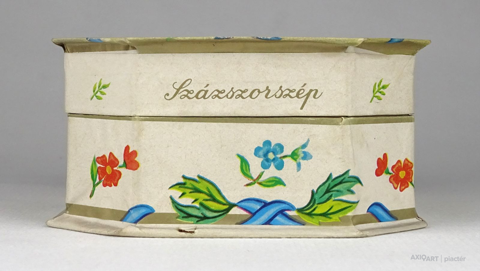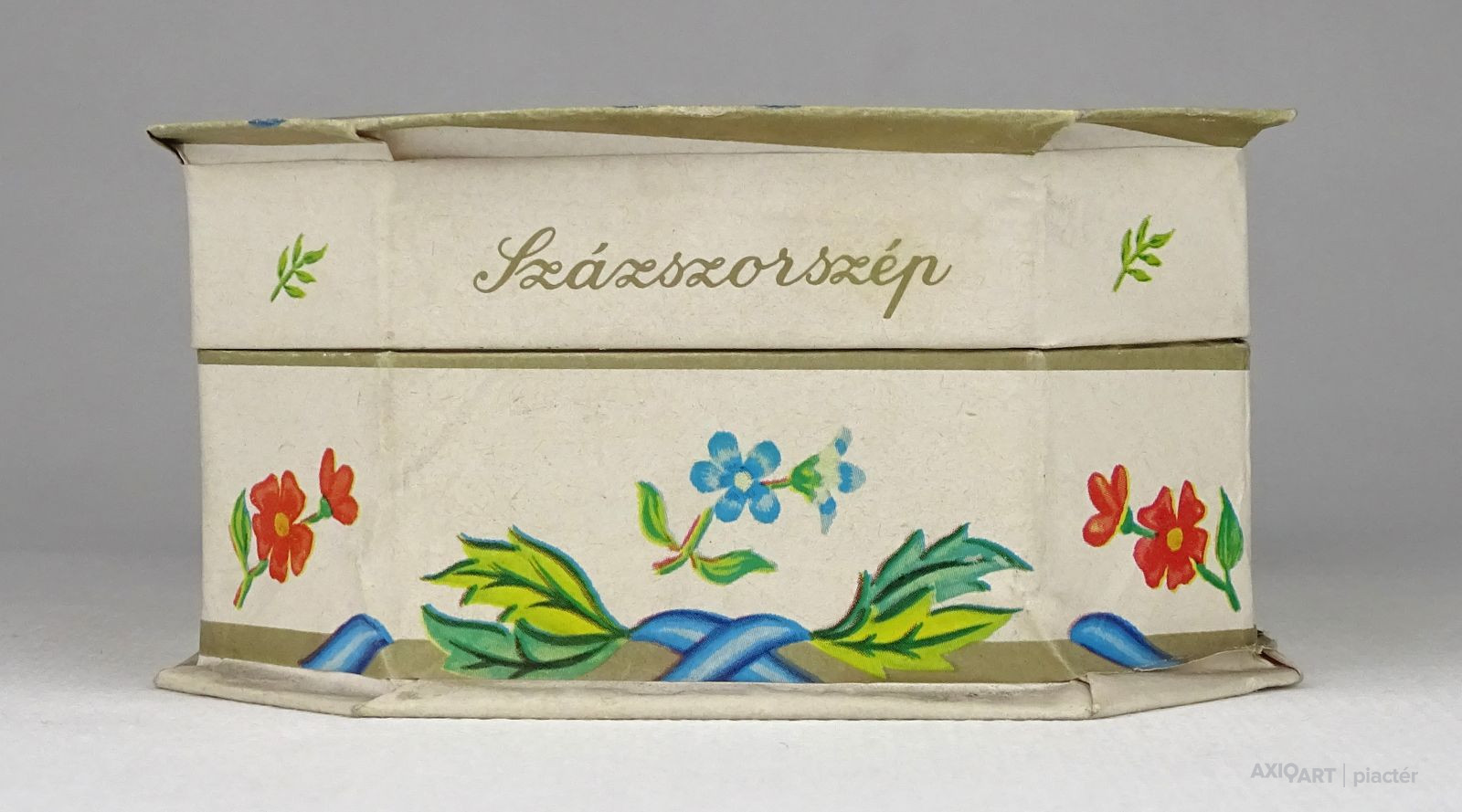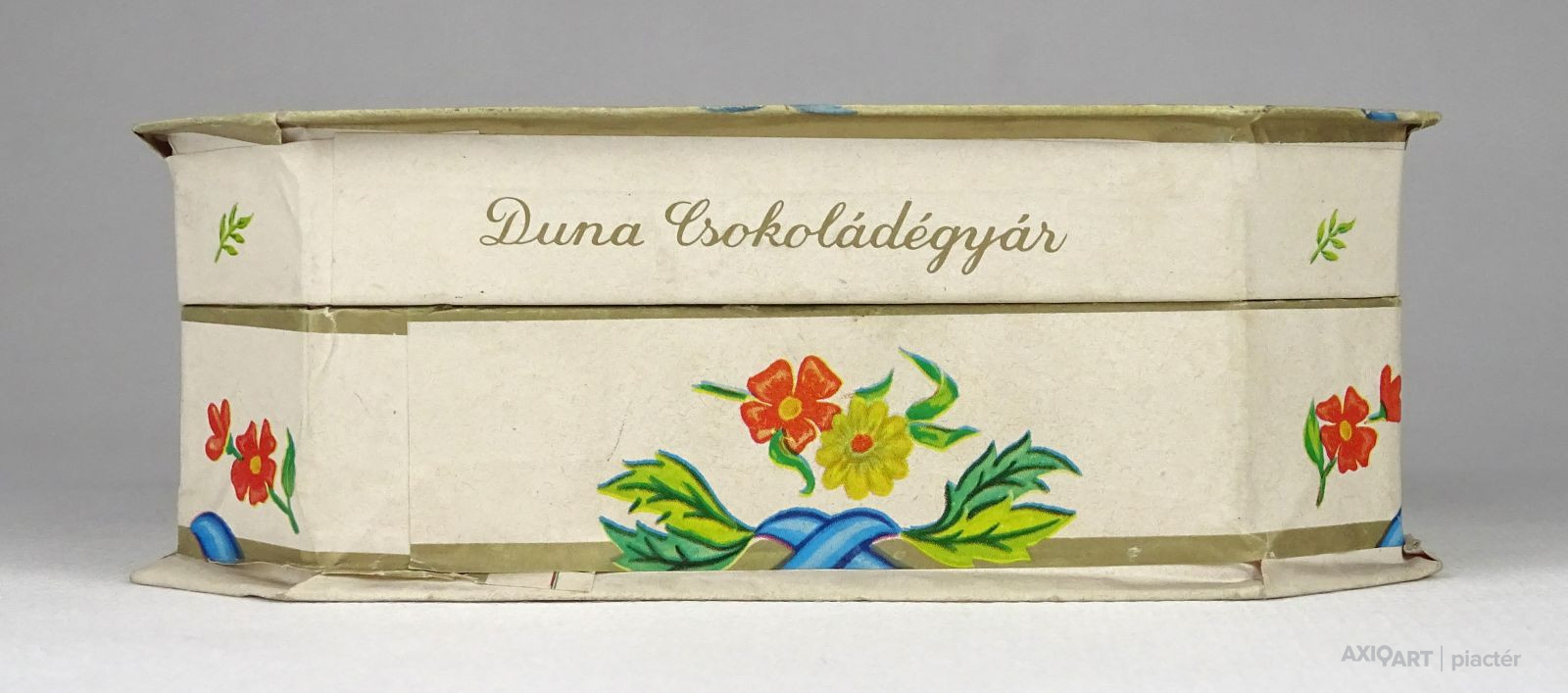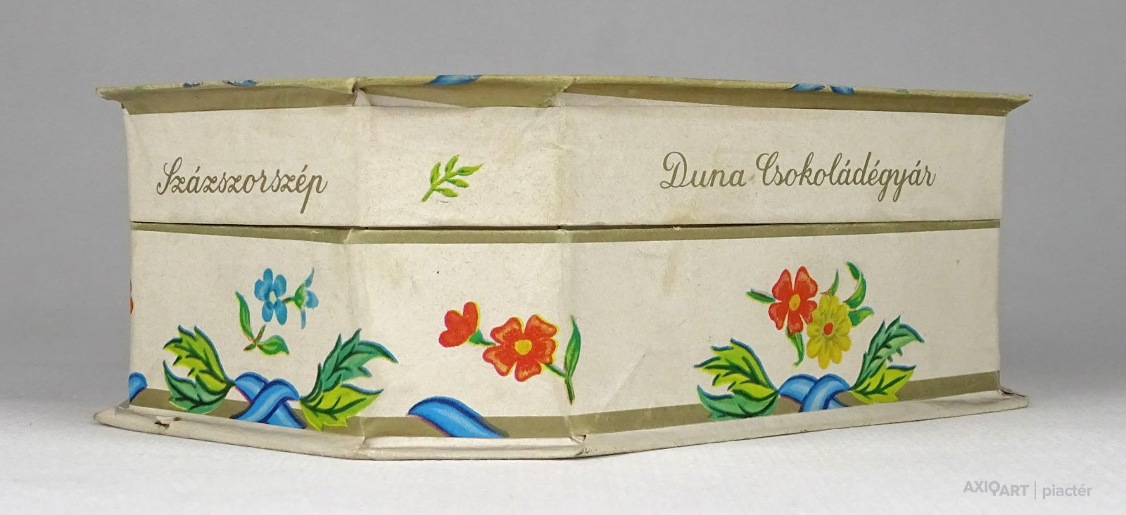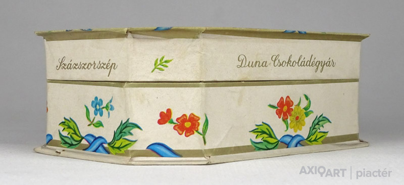 [1Q448/X200] Régi, szép állapotú, feliratos, virágdíszes kemény karton díszdoboz, bonbon doboz. Feliratok: SZÁZSZORSZÉP BONBON DUNA CSOKOLÁDÉGYÁR 1980. JUN. 05. (?) Magasság: 5.3 cm Szélesség: 10.8 cm Hosszúság: 15.3 cm Súly: 0.065 kg