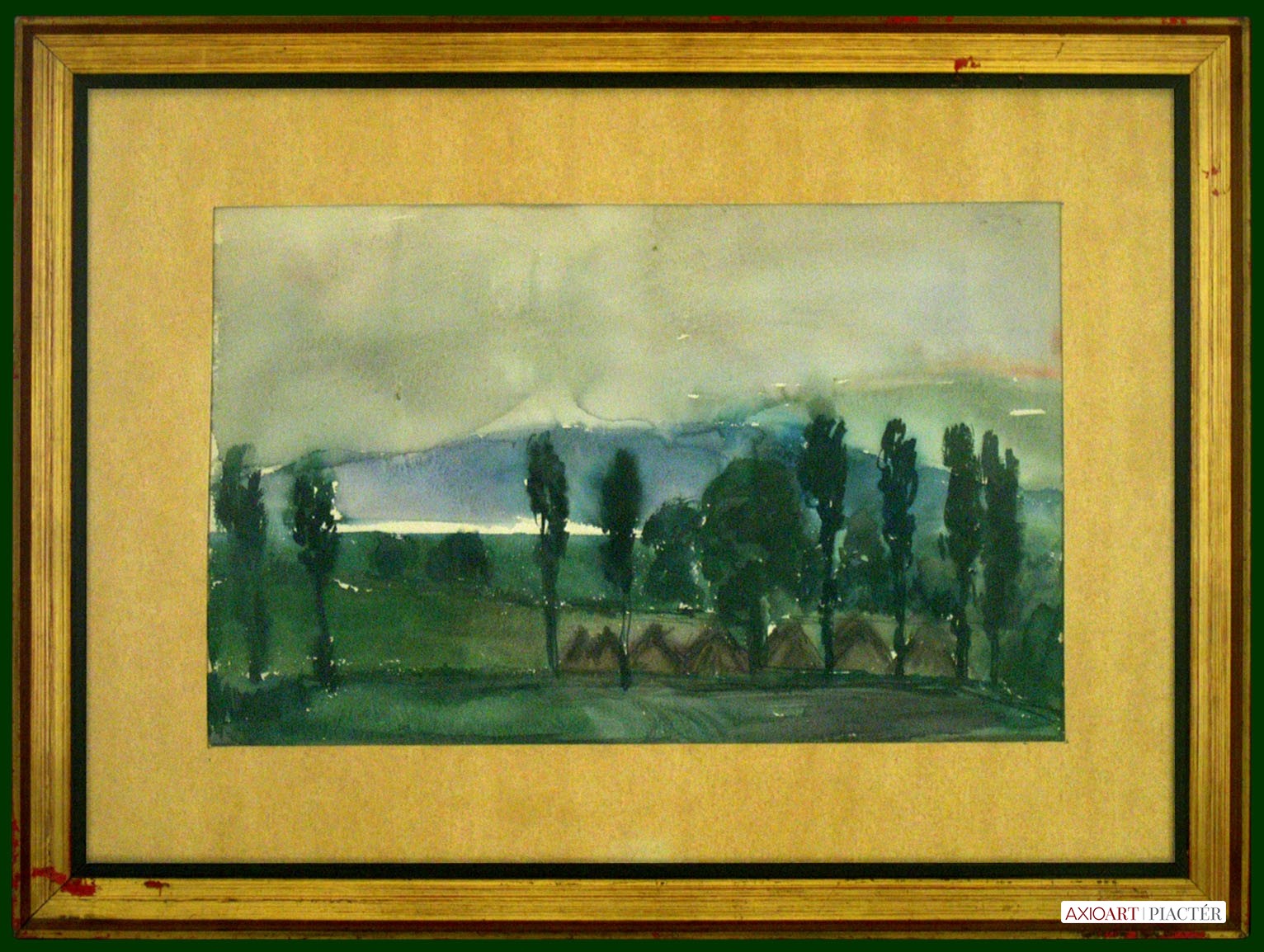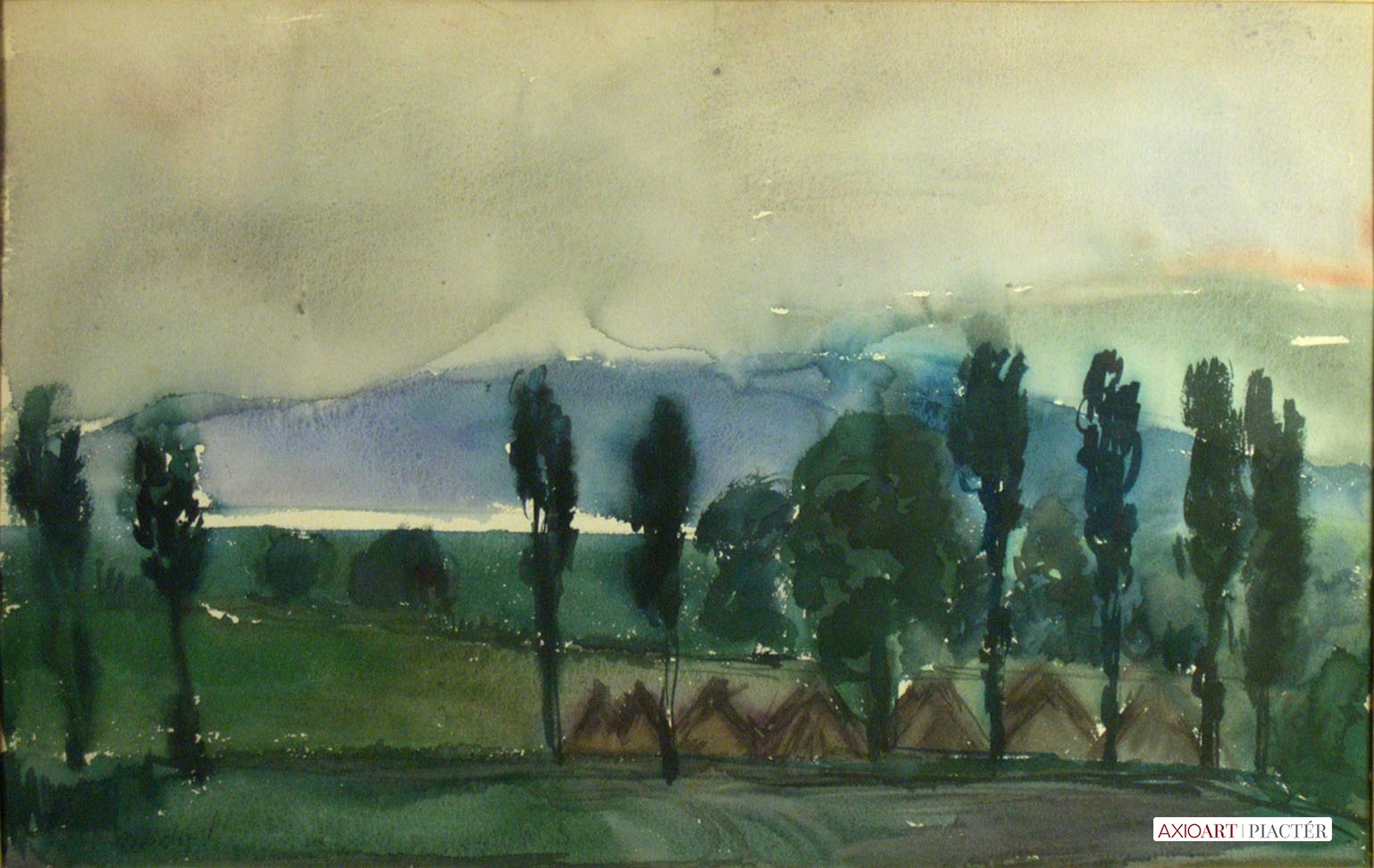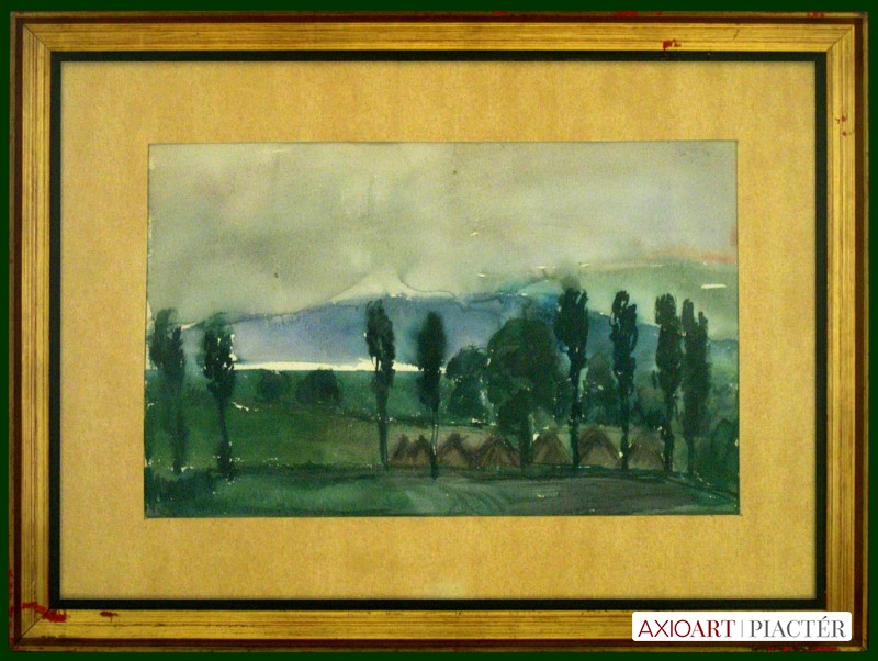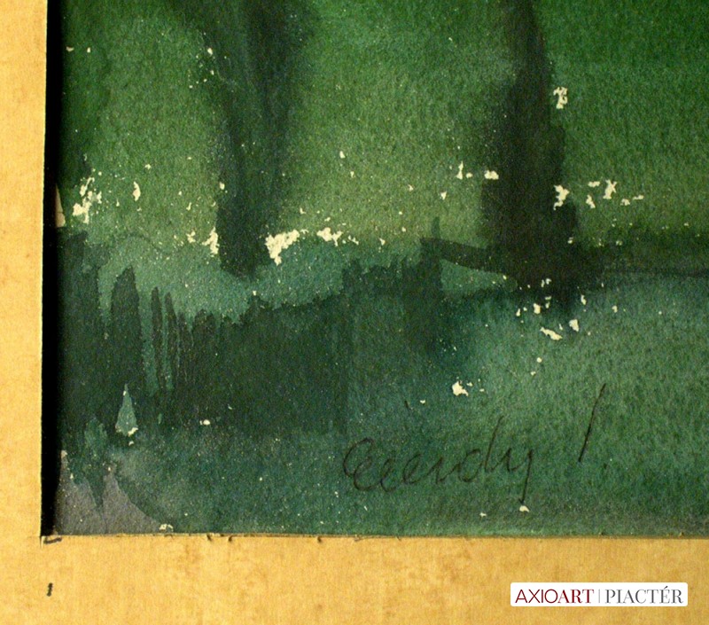 [FK0863/Bp15/14] A kép mérete: 34 x 54 cm keret nélkül. Készült: Akvarell, Papír A kép Élesdy István (Cegléd, 1912, Budapest, 1987) alkotása. Jelezve Balra lent "Élesdy I." A festmény jó állapotban van. Keret: Ép A festmény hátulján a Képcsarnok Vállalat címkéje található. Magyar festők és grafikusok életrajzi lexikona I-II. Festő és rézkarcoló. Eleinte Szolnokon Pólya Tibornál, majd Szőnyi Istvánnál, 1933-tól pedig a budapesti Képzőművészeti Főiskolán Glazt Oszkárnál és Varga Nándor Lajosnál tanult, ahol egy ideig tanársegéd is volt. 1939-ben Rómában tanult ösztöndíjasként, 1940-ben milánói, 1942-ben velencei tanulmányokat folytatott. A '40-es évek elején a nagybányai művésztelepen is megfordult. 1943-ban több nagybányai képzőművész társaságban szerepelt a kolozsvári Műcsarnok kollektív tárlatán. 1941-ben a marosvásárhelyi ipari szakiskola tanára volt, 1964-ben a Firenzei Akadémia tagjává választották. Számos egyéni kiállítása volt Budapesten. 1962-től több olasz városban mutatta be műveit. Rendszeresen szerepelt a Nemzeti Szalon csoportos tárlatain, fővárosi akvarell kiállításokon, Kolozsvárott az Erdélyi Képzőművészek kiállításain, ill. a Magyar Rézkarcolók Egyesülete, a Barabás Miklós Céh, az Olasz Rézkarcolók Szövetsége seregszemléjén. Díjak: a Főváros fametszet díja; a budapesti akvarell kiállítás díja; a budapesti rézkarc kiállítás díja. 1960 Firenze, 1961 Róma, 1966 pedig San Marino nemzetközi díja. Részletező, jól megfigyelő grafikus, fő műfaja az akvarell és a rézkarc. A Várnegyeddel és olasz műemlékekkel sokat foglalkozott. Témáit számos utazása során látott tájak, városképek, arcképek adják. Számos balladát illusztrált. Nagyobb rézkarcsorozatokban dolgozta fel a budai vár építészeti emlékeit. Munkáit őrzi a Fővárosi Képtár és a Magyar Nemzeti Galéria. (Horváth Teréz adatközlése nyomán, ML, MÉ, NF) Magyar festők és grafikusok életrajzi lexikona I-II. Műgyűjtők és kereskedők kézikönyve Festő és rézkarcoló. Eleinte Szolnokon Pólya Tibornál, majd Szőnyi Istvánnál, 1931-től pedig a bp.-i Képzőművészeti Főiskolán Glazt Oszkárnál és Varga Nándor Lajosnál tanult. 1939-ben Rómában tanult ösztöndíjasként. A nagybányai művésztelepen is folytatott tanulmányokat. 1943-ban több nagybányai képzőművész társaságban szerepelt a kolozsvári Műcsarnok kollektív tárlatán. Több európai országban járt tanulmányúton. Itthon és külföldön rendezett kiállításokat. Olaszországban többször is szerepelt alkotásaival. 1940-ben a főváros fametszetdíját, 1941-ben pedig az akvarell-díját nyerte el. 1960-ban Firenzében, 1961-ben Rómában, 1966-ban San Marinóban kapott nemzetközi díjakat. 1964-ben a Firenzei Művészeti Akadémia tiszteletbeli tagjává választotta. Részletező, jól megfigyelő grafikus, fő műfaja az akvarell, val. a rézkarc. Nagyobb rézkarcsorozatban dolgozta fel a budai vár építészeti emlékeit. (ML, MÉ, NF) Magyar festők és grafikusok adattára A Képzőművészeti Főiskolán Glazt Oszkár, majd Varga Nándor Lajos tanítványa, később Glatz tanársegédje. 1939-ben Olaszországban folytatott tanulmányokat, ahova azóta is többször visszatért. Franciaországban, Ausztriában, Németországban és Jugoszláviában járt tanulmányúton. 1940 óta kiállító művész, hazai bemutatói (1955, 1963, 1972, 1974) mellett többször kiállított Olaszországban. 1940-ben a főváros fametszet-, 1941-ben akvarelldíját nyerte el. 1960-ban Firenzében, 1961-ben Rómában, 1966-ban San Marinoban nyert nemzetközi díjat. 1964 óta megfigyelő grafikus, fő műfaja az akvarell és a rézkarc. Nagyobb rézkarcsorozatban dolgozta föl a budai vár építészeti emlékeit. - Irod.: P.Sz.T.: Művész életrajzok. Bp. 1985.; - Tóth Ervin: Élesdy István. Bp. 1987. Művészeti lexikon I-IV. Festő és rézkarcoló. Előbb Szolnokon Pólya Tibornál, majd Szőnyi Istvánnál, 1931-től pedig a Képzőművészeti Főiskolán Glatz Oszkárnál és Varga N. Lajosnál tanult. 1939-ben Rómában volt ösztöndíjas. Főleg rézkarcokat készít. 1955-ben és 1963-ban önálló kiállításon mutatta be munkáit. Művész életrajzok kortárs magyar képzőművészek A Képzőművészeti Főiskolán Glatz Oszkár, majd Varga Nándor Lajos tanítványa, később Glatz tanársegédje. 1939-ben Rómában folytatott tanulmányokat. Tanulmányutakon Olaszországban, Franciaországban, Belgiumban, Hollandiában, Marokkóban, Németországban és Jugoszláviában járt. 1940 óta kiállító művész, számos hazai bemutatója mellett (Budapest, Veszprém, Szombathely stb.) több alkalommal kiállított Olaszországban. Legutóbb a Csontváry Teremben (1982), Szolnokon (1983) és Pécsett (1984) szerepelt. 1940-ben a fővárosi fametszet, 1941-ben akvarell díját nyerte el; 1960-ban Firenzében, 1961-ben Rómában, 1966-ban San Marinóban kapott nemzetközi díjakat. A Firenzei Akadémia tiszteleti tagja (1964). - Érzékeny,kiváló megfigyelőkészségű grafikus, kedvvel rajzolja és festi a főváros régi városnegyedeinek vedutáit. (26 akvarellje díszíti Pereházy Károly: A Várnegyed című könyvét.) Fő műfaja, az akvarell és a rézkarc, de foglalkozik olajfestészettel is; ilyen technikájú képeinek témája a vidéki élettel kapcsolatos. Kortárs magyar művészeti lexikon I-III. Művészeti tanulmányait Szolnokon Pólya Tibornál kezdte, majd Szőnyi Istvánnál tanult. 1933-38: MKF, ahol ugyanekkor tanársegéd is volt. Mestere: Glatz Oszkár és Varga Nándor Lajos. 1940: Bp.-i rézkarc kiállítás díja; 1941: Bp.-i Akvarell Kiáll. díja; 1960: Firenze, 1961; Róma; 1966: San Marino díja; 1939: római ösztöndíjas. 1940-ben milánói, 1942-ben velencei tanulmányutakat folytatott. 1941-ben a marosvásárh