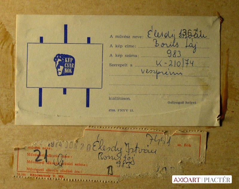 A festmény hátulján a Képcsarnok Vállalat címkéje található.