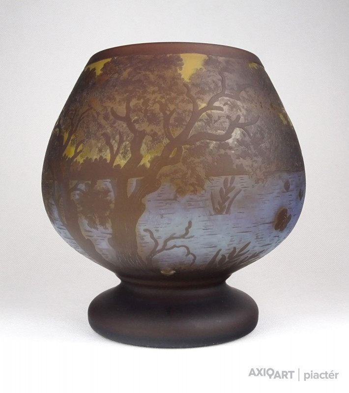 Émile Gallé jellegű Art Nouveau francia jelzett rétegelt üveg váza 18.5 cm