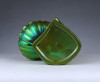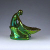 [1Z727/Z052] Régi, hibátlan állapotú, zöld eozin mázas, jubileumi jelzéses Zsolnay porcelán, figurális tál, kagylót tartó női akt névjegykártya tartó, íróasztali kellék. Alján Zsolnay öttornyú jubileumi márkajelzés: ZSOLNAY HUNGARY JUBILEUM 150 Magasság: 12 cm Szélesség: 12 cm Hosszúság: 14 cm Súly: 0.35 kg