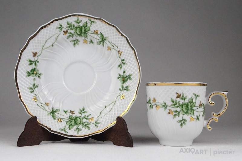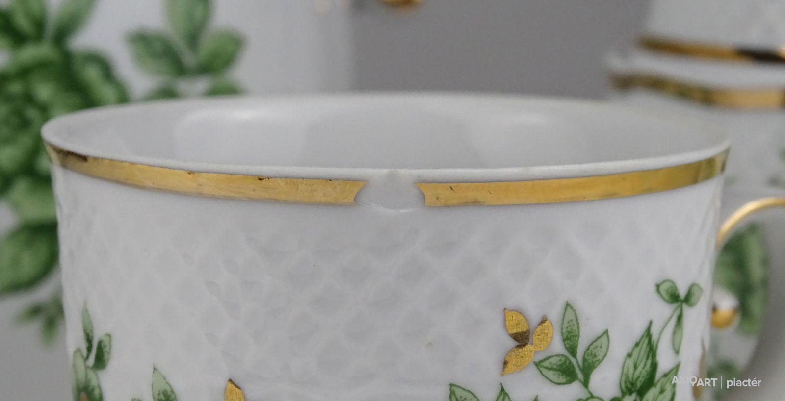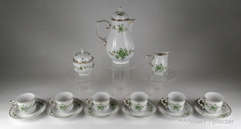Szép állapotú gazdagon aranyozott hat személyes Hollóházi porcelán kávéskészlet.
