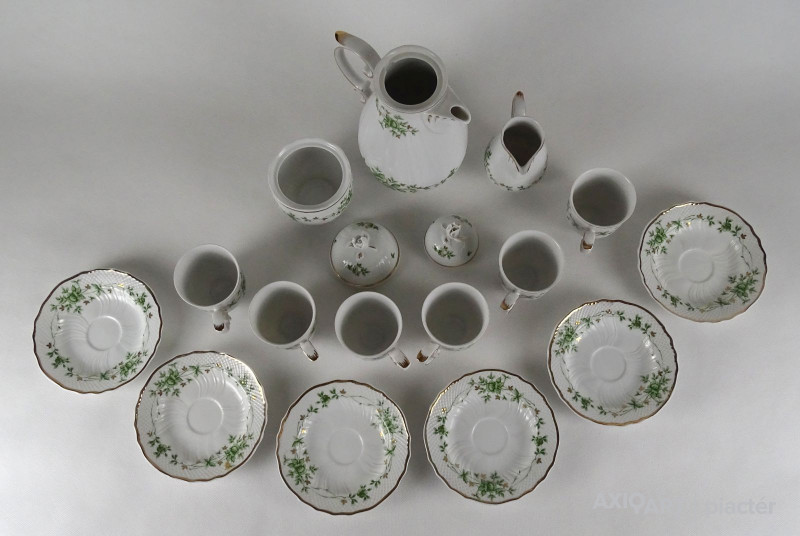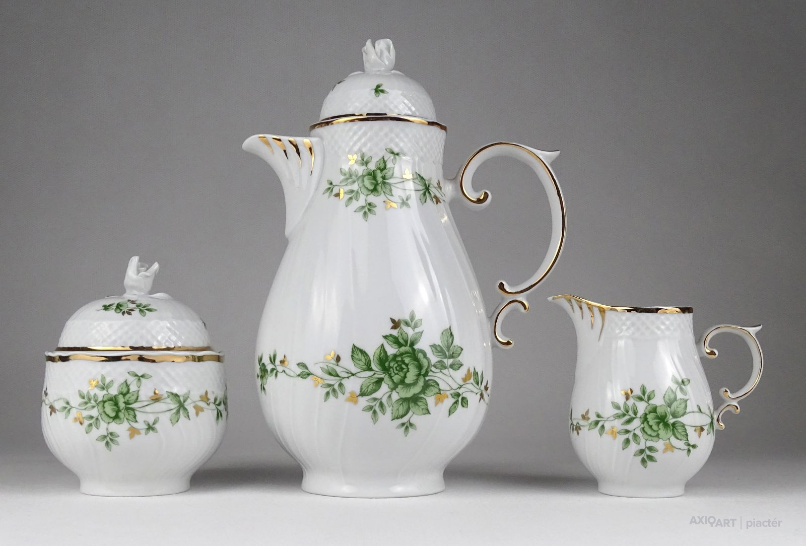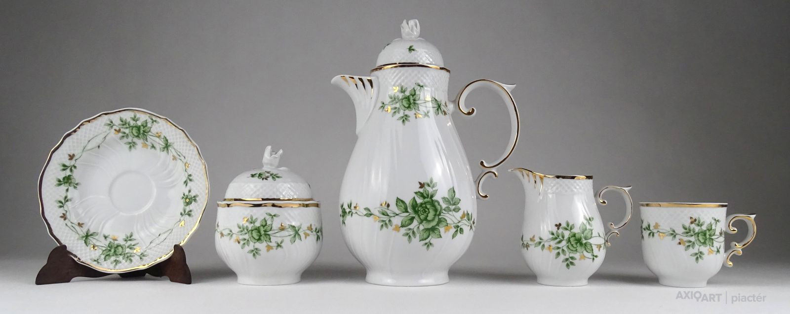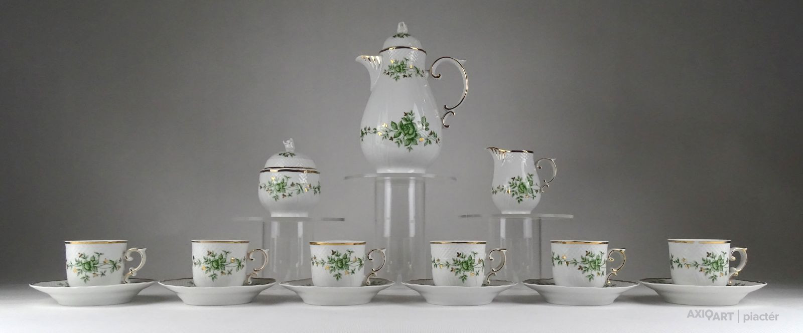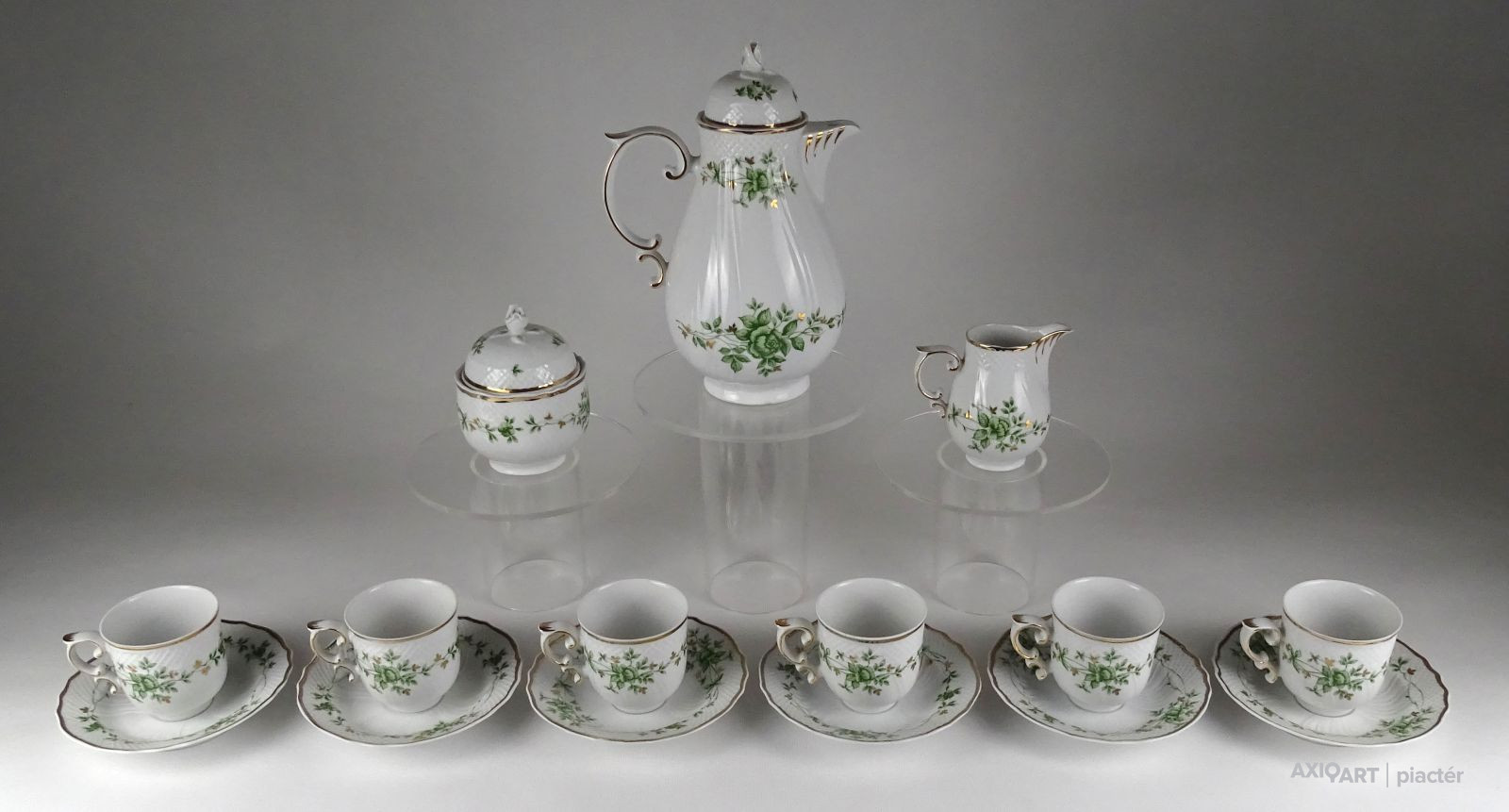 - 1 darab kávéskanna (21.3 x 11 x 15 cm) Rózsáján és talpának peremén kisebb esztétikai hiba található.