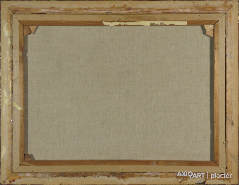 [FKC235/BX-1] A kép mérete: 49 x 41,5 cm keret nélkül. Készült: Olaj, Vászon A kép Vass Vera (Szeged, 1908, Kőszeg, 1958) alkotása. Jelezve: jelzés nélkül A festmény jó állapotban van. Keret: Új A festmény hátoldalán: Szelesi Zoltán Móra F. Múzeum évkönyve 1972-73/2. felirat látható. Kortárs magyar művészeti lexikon I-III. festő (Szeged, 1908. nov. 10.-Kőszeg, 1958. szept. 15.) Festői pályafutását a 30-as évek elején kezdte: először Szegeden, Buday Györgytől fametszet technikát és grafikát, majd Bp.-en reklámgrafikát tanult. 1934-38 között Aba Novák Vilmos festőiskolájának növendéke, egyes munkáknál a mester munkatársa volt. A 30-as évek végén Bp.-en a Szinyei Társaság több kiállításán is részt vett. A 40-es évek közepétől kiújuló gyermekkori betegsége nagy mértékben korlátozta aktív festői pályafutását és a képzőművészeti közéletben való részvételét; az 50-es évek elejétől már festeni sem tudott. Ekkor verseket kezdett írni, melyek egy részét férfi álnéven elküldte véleményezésre Németh Lászlónak, aki komoly elismeréssel nyilatkozott verseiről. Festészete leginkább Gulácsy Lajos légies, finom piktúrájához hasonlítható (Parkban, Délután, 1940 k.), kisebb mértékben mutat hasonlóságokat Rippl-Rónai enteriőr korszakával (Enteriőr, 1940 k.). Akár figurát, akár csendéletet vagy bensőséges jelenetet fest, a képmezőt sfumáto-szerű pára fedi be, e mögött bukkan fel a staffázs-figura, mely kilép szerepéből, jelentőssé válik. Félig elfelejtett művészete napjainkban kezdi elfoglalni helyét a művészettörténetben. Ek: 1995: Vass Vera emlékkiállítása, Móra F.M. Szeged; 1998: Ráday G.: 1999: Vass Vera emlékkiállítása, Sigray Palota, Kőszeg; Vass Vera emlékkiállítása, SzK, Szhely. Vcsk: 1947: Magyar Képzőművészek Szabad Szakszervezete kiállítása, Károlyi Palota. Mk: Móra F. M., Szeged. Km: freskók restaurálása (a Pannonhalmi Apátság Jubileumi Kápolnája) Irod.: Szuromi P.: A holdvilág jegyese - Vass Vera élete és festészete, Szeged, 1995. júl-dec.; Szuromi P.: Szépen, szomorúan, légiesen, ÉS, 1995. okt. 20.; N.N.: Egy elfelejtett művész: Vass Vera, Kőszeg és vidéke, 1999. ápr. 23., Lengyel A.: "... ismeretlensége biztosan fel fog tárulni" - Vass Vera hagyatékából, Szeged, 1994. júl-aug. (H.F.)