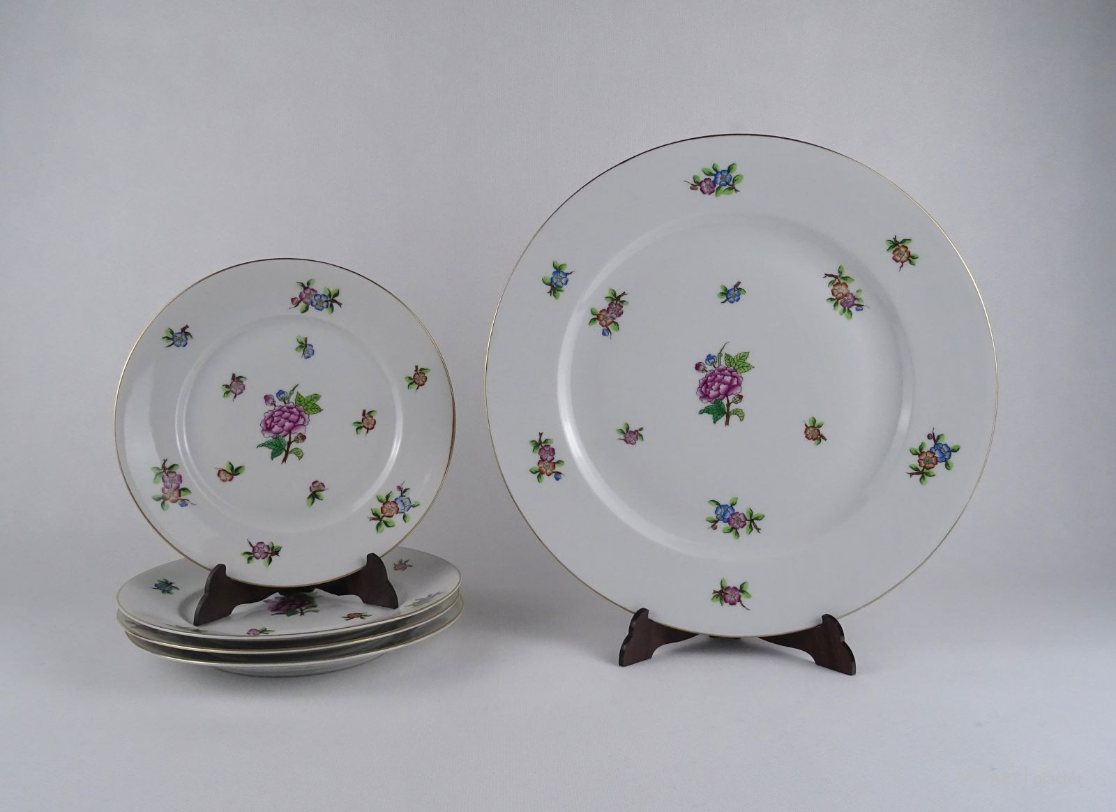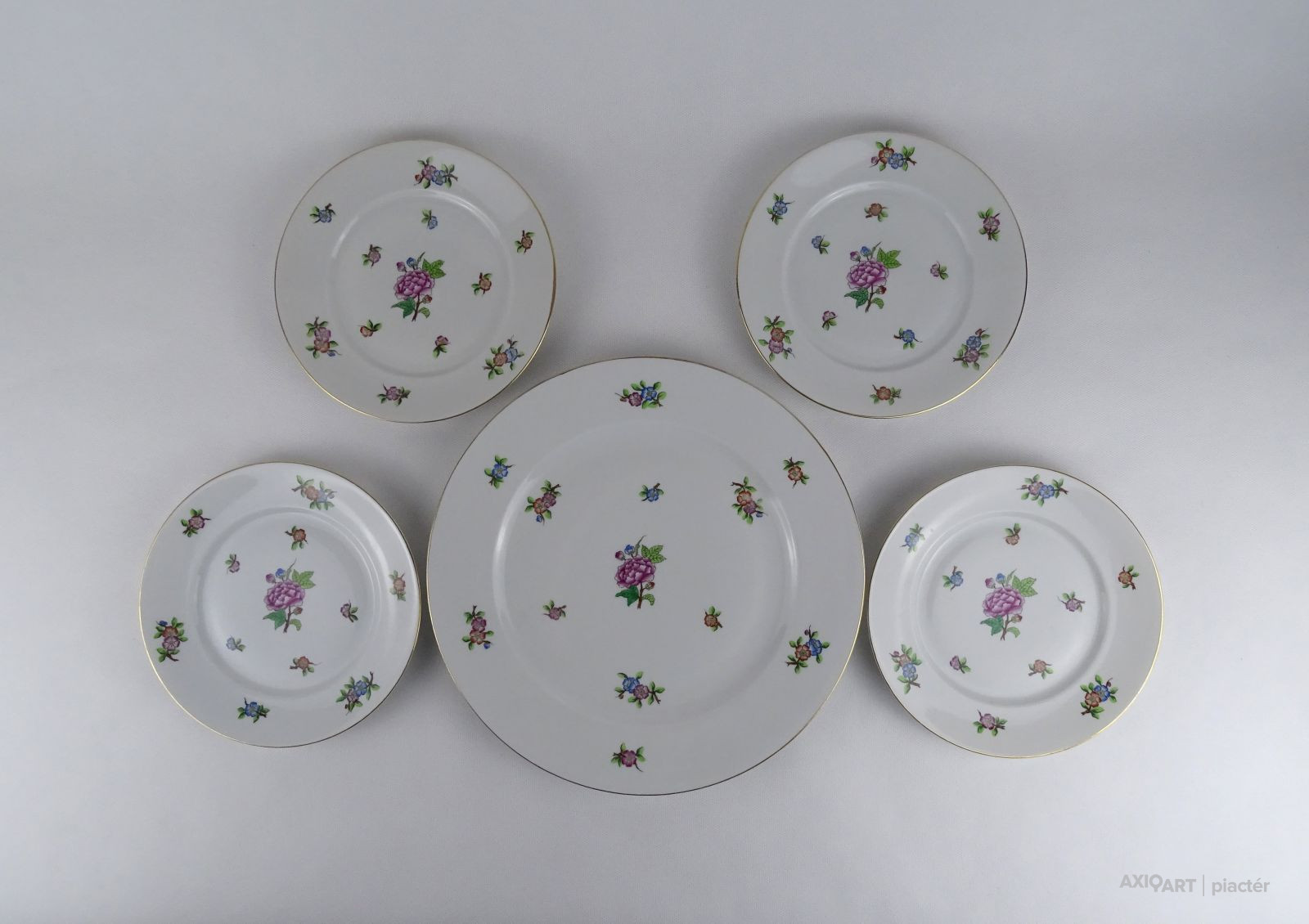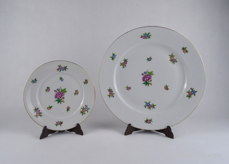 Hibátlan állapotú, kézzel festett Eton mintás Herendi porcelán süteményes készlet.
