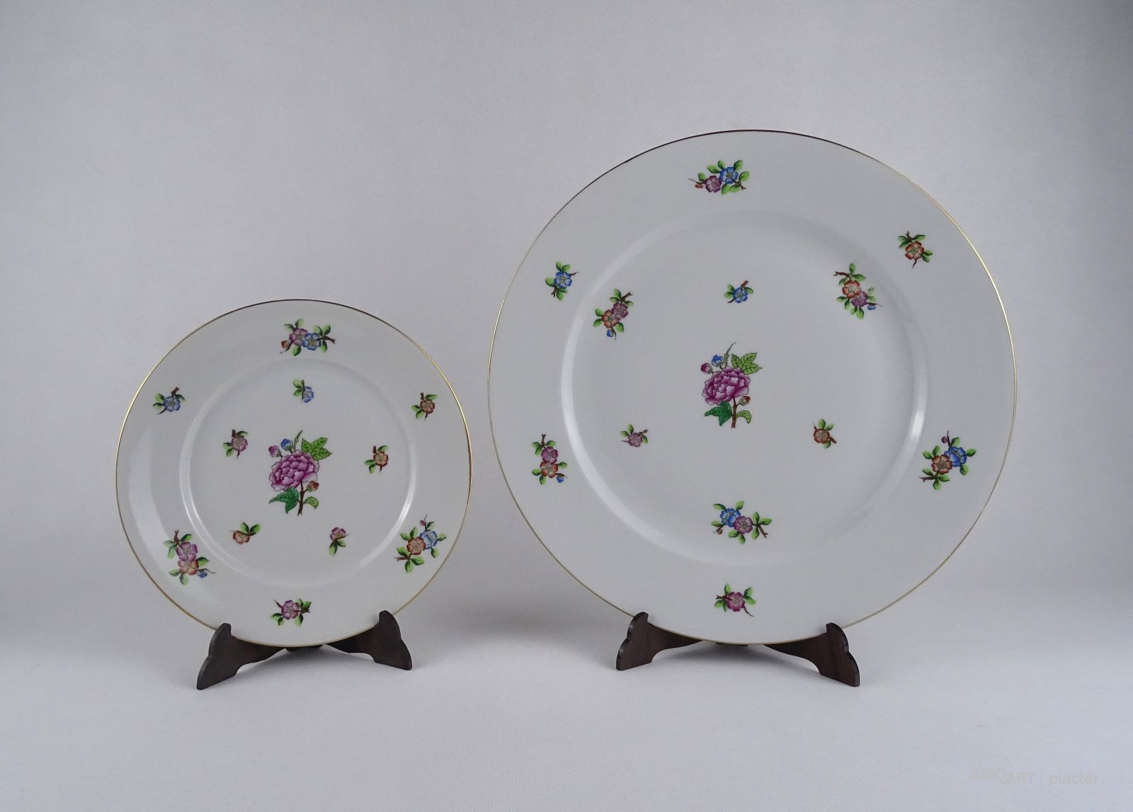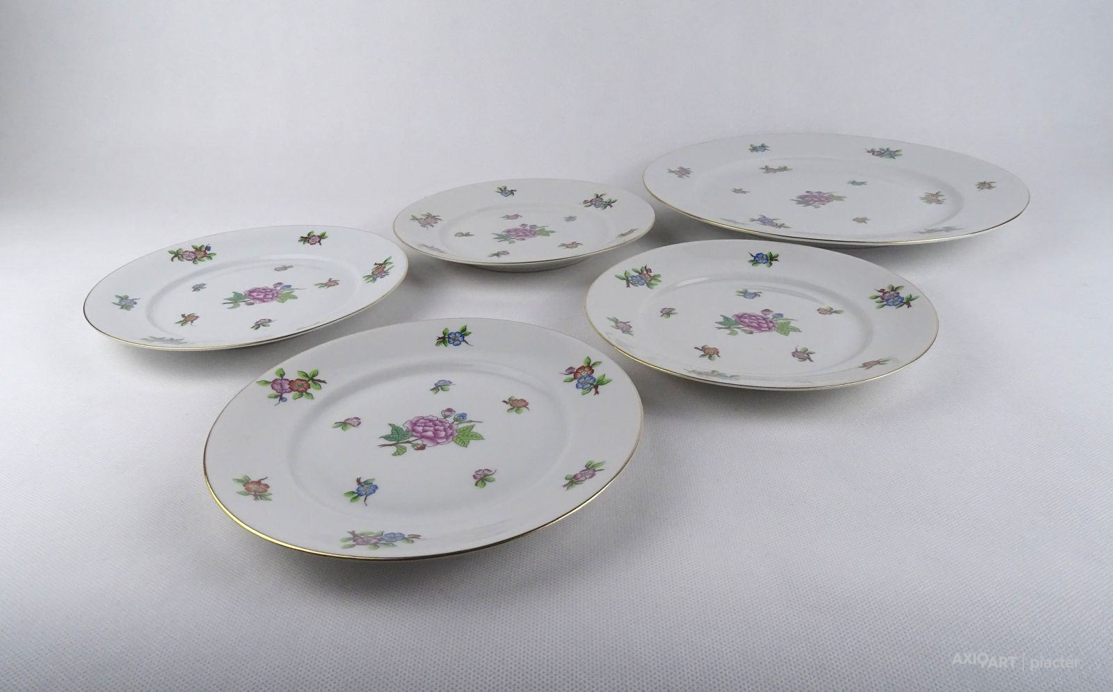 [1T589/X335] Hibátlan állapotú, kézzel festett Eton mintás Herendi porcelán süteményes készlet. Alján kék Herendi jelzés: HEREND HUNGARY Mélynyomással: HEREND Formaszámok: 2518 és 2527 Súly: 1.465 kg   Súly: 1352 g