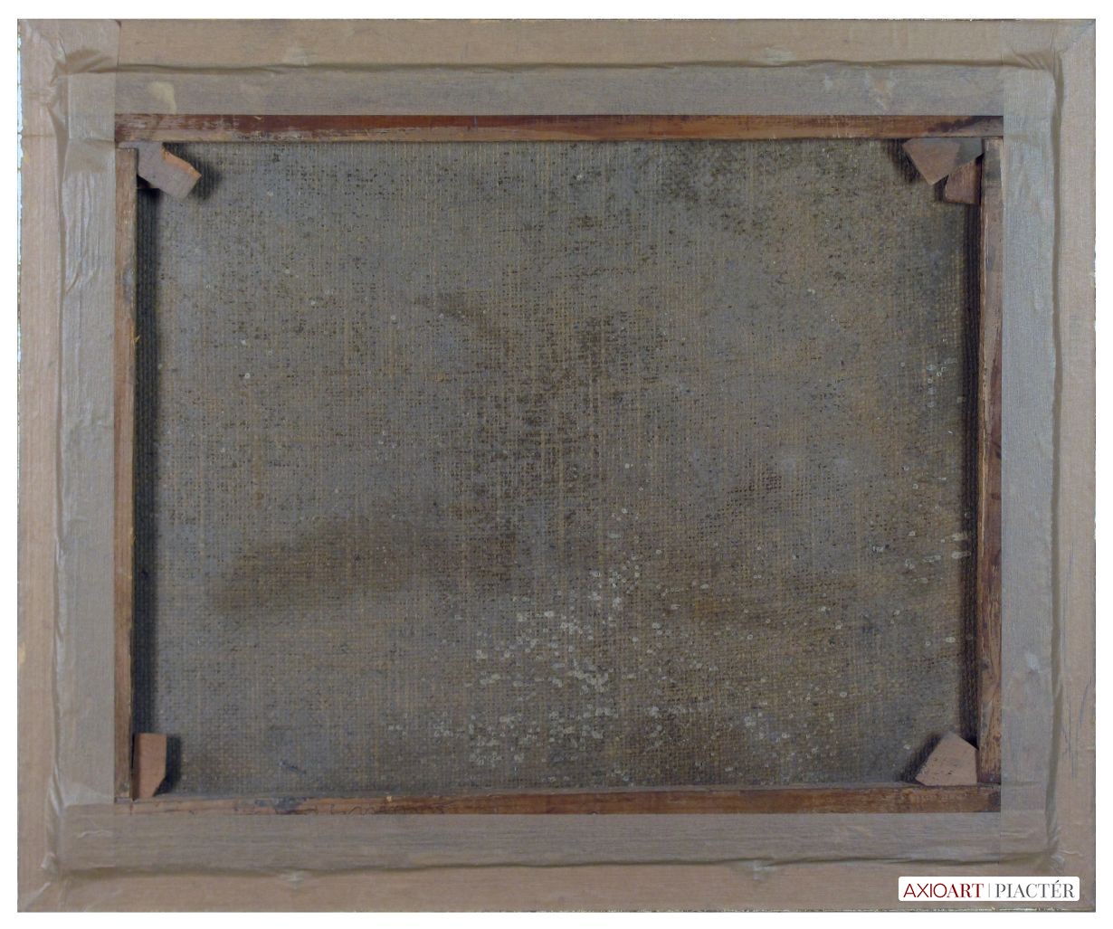 [FKC235/BX-1] A kép mérete: 49 x 41,5 cm keret nélkül. Készült: Olaj, Vászon A kép Vass Vera (Szeged, 1908, Kőszeg, 1958) alkotása. Jelezve: jelzés nélkül A festmény jó állapotban van. Keret: Új A festmény hátoldalán: Szelesi Zoltán Móra F. Múzeum évkönyve 1972-73/2. felirat látható. Kortárs magyar művészeti lexikon I-III. festő (Szeged, 1908. nov. 10.-Kőszeg, 1958. szept. 15.) Festői pályafutását a 30-as évek elején kezdte: először Szegeden, Buday Györgytől fametszet technikát és grafikát, majd Bp.-en reklámgrafikát tanult. 1934-38 között Aba Novák Vilmos festőiskolájának növendéke, egyes munkáknál a mester munkatársa volt. A 30-as évek végén Bp.-en a Szinyei Társaság több kiállításán is részt vett. A 40-es évek közepétől kiújuló gyermekkori betegsége nagy mértékben korlátozta aktív festői pályafutását és a képzőművészeti közéletben való részvételét; az 50-es évek elejétől már festeni sem tudott. Ekkor verseket kezdett írni, melyek egy részét férfi álnéven elküldte véleményezésre Németh Lászlónak, aki komoly elismeréssel nyilatkozott verseiről. Festészete leginkább Gulácsy Lajos légies, finom piktúrájához hasonlítható (Parkban, Délután, 1940 k.), kisebb mértékben mutat hasonlóságokat Rippl-Rónai enteriőr korszakával (Enteriőr, 1940 k.). Akár figurát, akár csendéletet vagy bensőséges jelenetet fest, a képmezőt sfumáto-szerű pára fedi be, e mögött bukkan fel a staffázs-figura, mely kilép szerepéből, jelentőssé válik. Félig elfelejtett művészete napjainkban kezdi elfoglalni helyét a művészettörténetben. Ek: 1995: Vass Vera emlékkiállítása, Móra F.M. Szeged; 1998: Ráday G.: 1999: Vass Vera emlékkiállítása, Sigray Palota, Kőszeg; Vass Vera emlékkiállítása, SzK, Szhely. Vcsk: 1947: Magyar Képzőművészek Szabad Szakszervezete kiállítása, Károlyi Palota. Mk: Móra F. M., Szeged. Km: freskók restaurálása (a Pannonhalmi Apátság Jubileumi Kápolnája) Irod.: Szuromi P.: A holdvilág jegyese - Vass Vera élete és festészete, Szeged, 1995. júl-dec.; Szuromi P.: Szépen, szomorúan, légiesen, ÉS, 1995. okt. 20.; N.N.: Egy elfelejtett művész: Vass Vera, Kőszeg és vidéke, 1999. ápr. 23., Lengyel A.: "... ismeretlensége biztosan fel fog tárulni" - Vass Vera hagyatékából, Szeged, 1994. júl-aug. (H.F.)