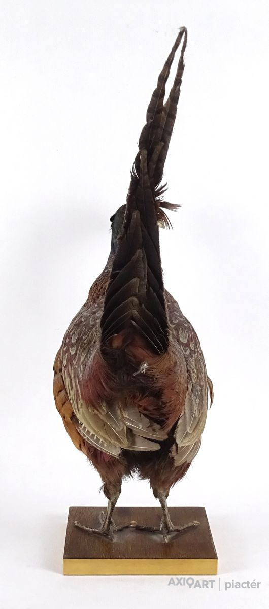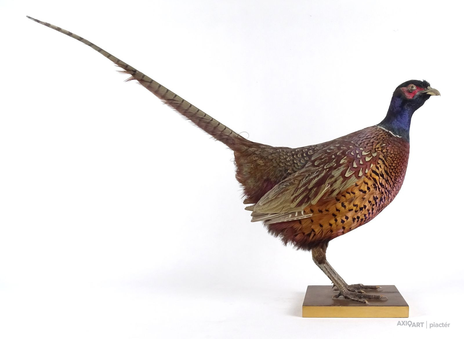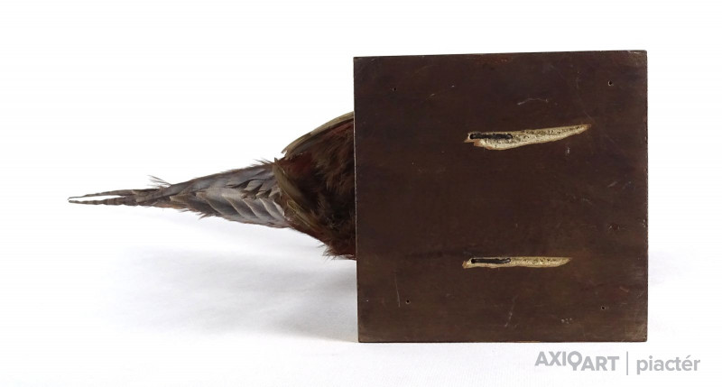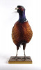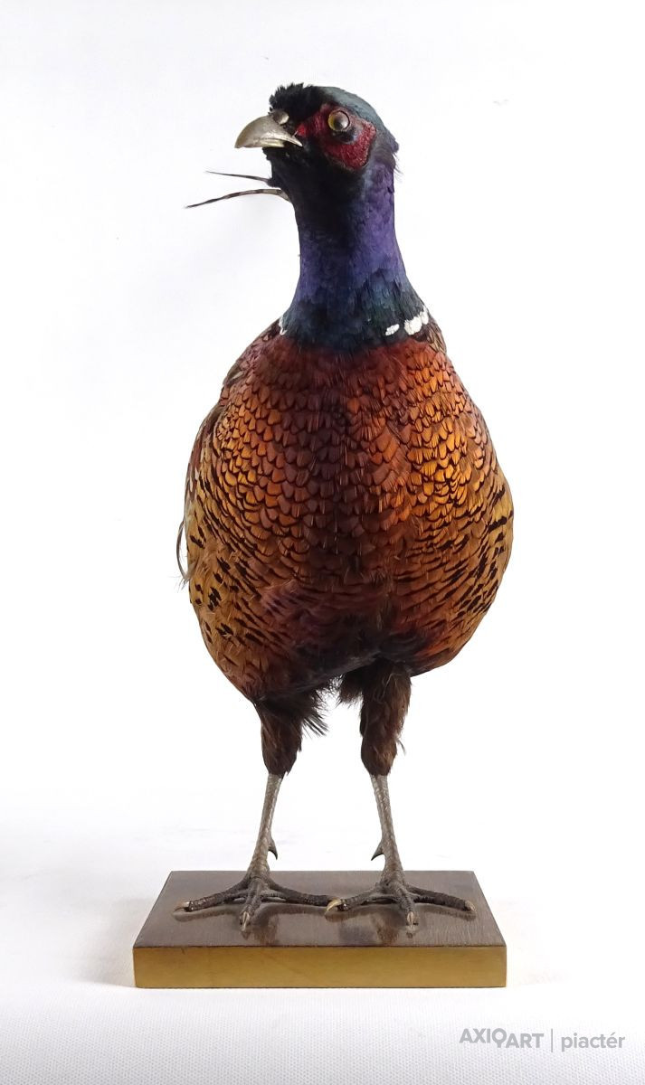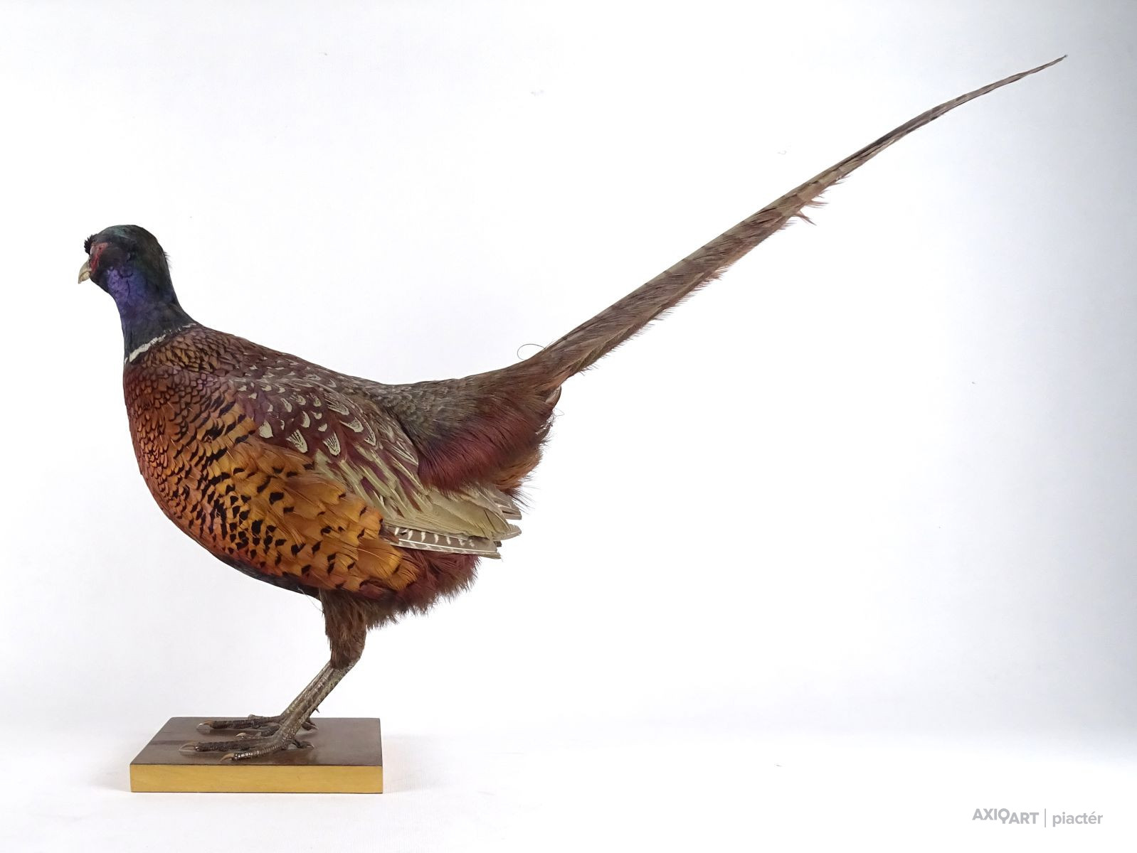 Talapzaton álló vadász preparátum, kitömött madár, fácán, fácánkakas.