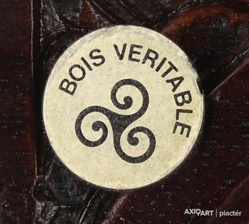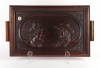 [1N606/X292] Erős, masszív faragott fa tálca üveg lappal. Az üveglap alatt egy részletgazdag férfi és női faragott fej, házaspár látható. Üvegen címke, rajta felirat: BOIS VERITABLA Magasság: 4 cm Szélesség: 27.5 cm Hosszúság: 47.5 cm Súly: 2.26 kg