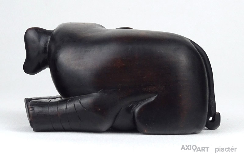 [1J516/X127] Régi, szép állapotú, faragott keményfa fafaragás. Hason fekvő elefánt szobor. Magasság: 6 cm Szélesség: 6.5 cm Hosszúság: 11.5 cm Súly: 0.185 kg
