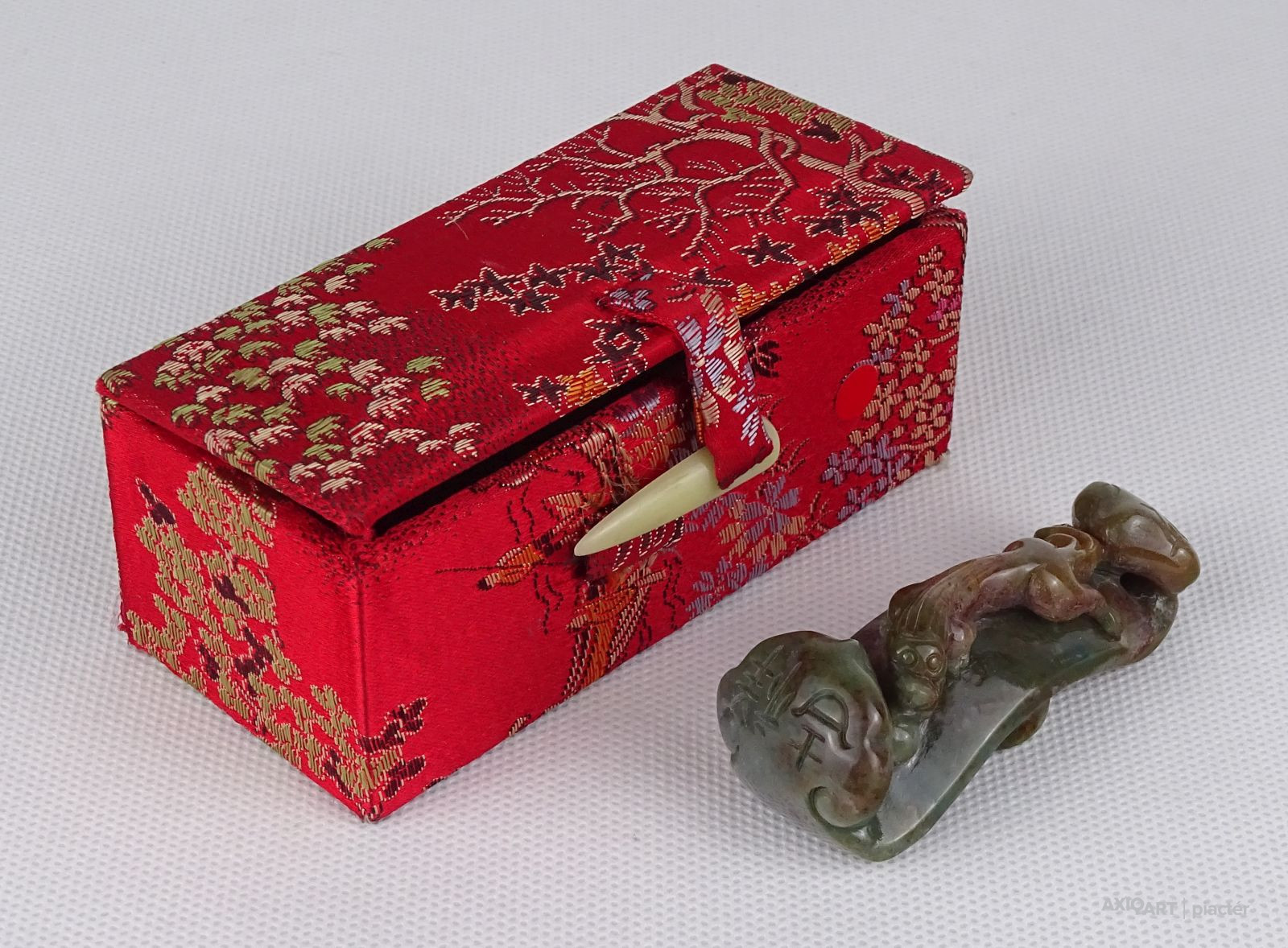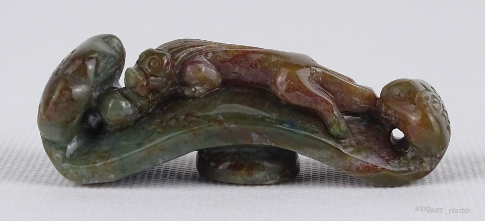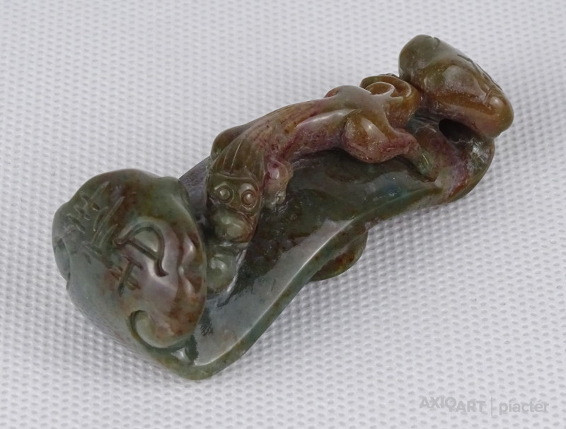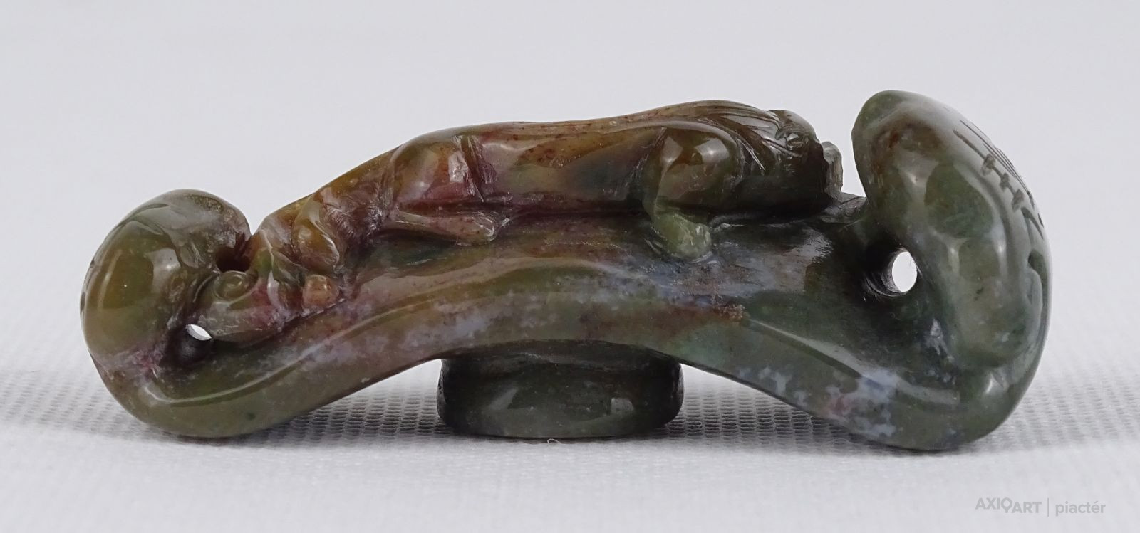 Faragott kínai JÁDE gyík dísztárgy dobozában