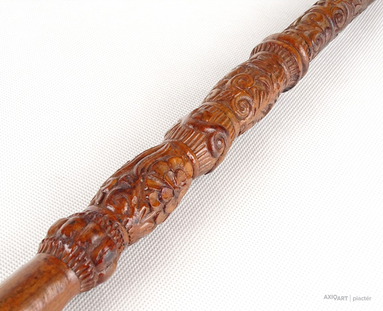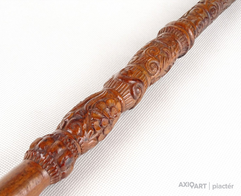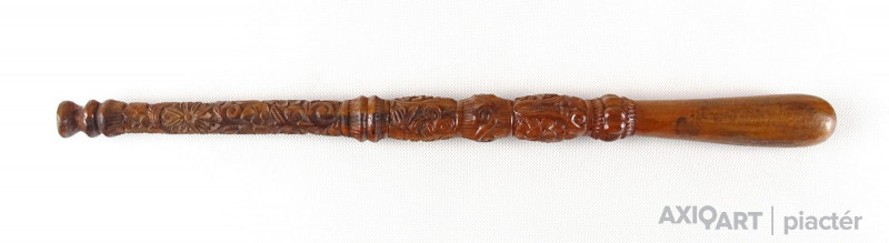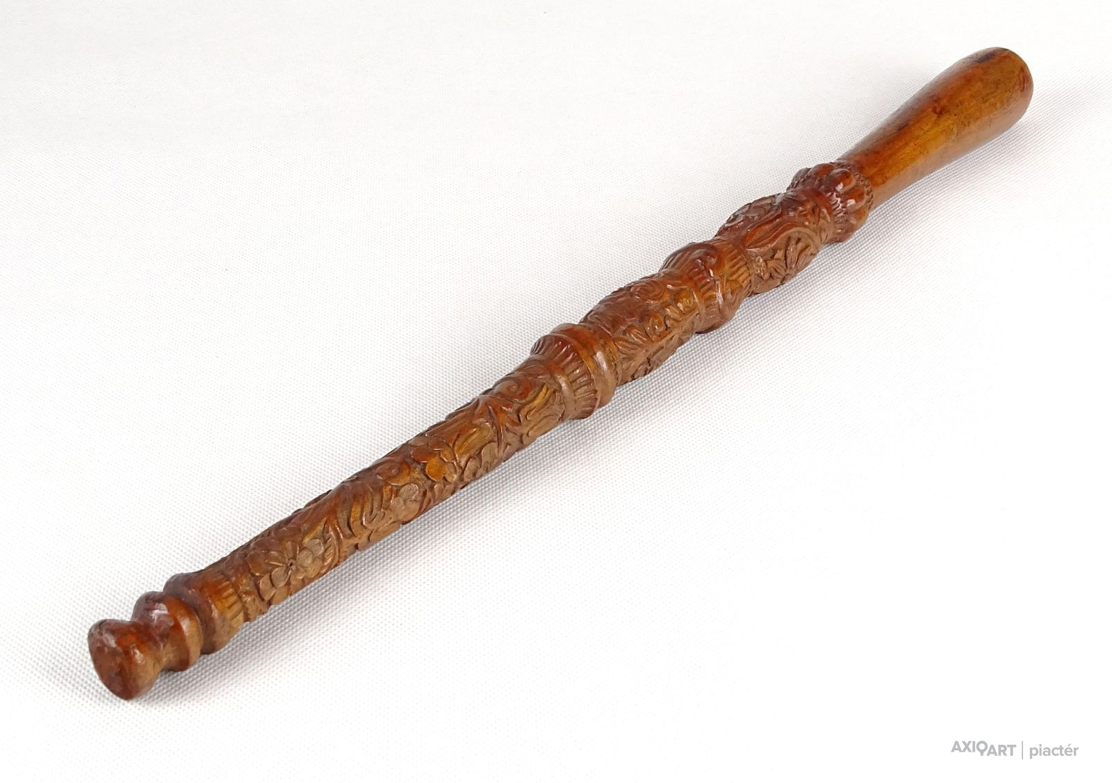 Antik, faragott, gazdagon díszített rövid fa pálca. Kapoli Antal jellegű fafaragás.