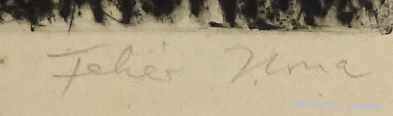 [FKC308/Bp204/129] A kép mérete: 20 x 26 cm keret nélkül. Készült: Rézkarc, Papír A kép Zádor István (Nagykikinda, 1882, Budapest, 1963) alkotása. Jelezve jobbra lent "Zádor István (ceruzával)" A festmény jó állapotban van. Keret: Új Magyar festők és grafikusok életrajzi lexikona I-II. Festő, grafikus. Huszonhat éves volt, amikor elhatározta, hogy fejét a művészetre adja. Éveken át tanulta a grafikai technikát. Budapesten, Párizsban és Firenzében folytatott tanulmányokat. Budapesten Olgyai Viktor volt a tanítómestere, Párizsban az École des Beaux Arts-on képezte magát. Nyáron a szolnoki művésztelepen, télen pedig Párizsban dolgozott, kisebb brüsszeli, antwerpeni kirándulásokkal tarkítva. 1910-ben Észak-Olaszországban tartózkodott, Firenzében az akadémián tanult. 1918-19-ben több forradalmi rajzriportot készített. A Tanácsköztársaság bukása után először Weimarba, majd Münchenbe emigrált, előbb a Bauhaus növendéke volt, majd ismét a rézkarc technikát tanulmányozta. Stuttgart volt az utolsó állomás. Csendéleteket, táj- és arcképeket, aktokat, enteriőröket festett, bár többnyire grafikával foglalkozott. Zádor igen nagy technikai tudással bírt a rézkarcolás művészetében. Főképp városképeket, hatásos architektúrákat varázsolt lapjaira. Egy német kiadó megbízásából sorozatban örökítette meg a Rajna-vidéki és tengerparti városokat, később a Ruhr-vidék gyárairól készített rézkarcokat. Neve ismertté vált mindenfelé. Olaszországba, Svájcba hívták meg kiállítani. Kiállítások, cserék, eladások, évkönyvek Angliától Japánig, Amerikáig. 1930-ban meghívták Hollandiába. Tájképeivel olyan sikert aratott, hogy megbízást kapott egy kiadótól 36 orvosprofesszor protréjának megrajzolásával, majd egy holland katonai szaklap bízta rá a tábornokok megörökítését. A Szinyei Társaság tagja, a Magyar Rézkarcolóművészek Egyesületének elnöke volt. 1918-ban "Ebédlő" című enteriőrje állami kis aranyérmet nyert. Illusztrációiért elnyerte a könyv-illusztrációs díjat, majd a Lipótvárosi Kaszinó díját. Később Kossuth-díjjal jutalmazták munkásságát. 1934-ben jelent meg ofszetnyomásban "Egy hadifestő emlékei" című albuma. Több olajképe, rézkarca és litográfiája található a Magyar Nemzeti Galériában. "Budapest 1945" című albuma a felszabadulás után "Egy fél évszázad rajzokban" című albuma 1959-ben jelent meg. (Éber, ML, Czeizing-Fehér: Művészek) Magyar festők és grafikusok életrajzi lexikona I-II. Műgyűjtők és kereskedők kézikönyve Kossuth-díjas festő, grafikus. Budapesten, Párizsban és Firenzében tanult. Párizsban az École des Beaux Arts-n képezte magát. A szolnoki művésztelep tagja volt. 1918-19-ben forradalmi rajzriportokat készített. A Tanácsköztársaság bukása után, először Weimarba, majd Münchenbe emigrált. Csendéleteket, táj- és arcképeket, valamint enteriőröket festett, bár többnyire grafikával foglalkozott. Olgyai Viktor volt a tanítómestere. Igen nagy technikai tudással bírt a rézkarcolás művészetében. Többnyire városképeket, hatásos architektúrákat varázsolt lapjaira. A Szinyei Társaság tagja, a Magyar Rézkarcolóművészek Egyesületének elnöke volt. 1918-ban "Ebédlő" című enteriőrje állami kis aranyérmet nyert. 1934-ben jelent meg offsetnyomásban "Egy hadifestő emlékei" című albuma. Több kiállítása volt a fővárosban. Számos olajképe, rézkarca és litográfiája van a Magyar Nemzeti Galériában. "Budapest 1945" című albuma a felszabadulás után, "Egy fél évszázad rajzokban" című albuma 1959-ben jelent meg. Kossuth-díjjal tüntették ki. (Éber, ML) Magyar festők és grafikusok adattára Festő, grafikus, Kossuth-díjas. Festményei enteriőrök, portrék és tájképek. Legismertebb művei rézkarcok és rajzok. Albumai: Budapest 1945; Egy fél évszázad rajzokban (Budapest, 1959). 1958-ban az Ernst Múzeumban volt életmű kiállítása. Irod.: Dénes Tibor: Zádor István. Képzőművészet, 1938., Zádor István és Grantner Jenő kiállítási katalógus. Ernst Múzeum. 1958. Művészeti lexikon I-IV. Festő és grafikus, Kossuht-díjas. Bp.-en, a párizsi École des Beaux-Arts-on és Firenzében tanult. A szolnoki művésztelep tagja volt. Festményei főleg intérieurök, tájak és kiváló karakterű portrék. Részletező, érzékeny rézkarcain líraian ábrázolta a Tisza menti tájat. 1918-19-ben forradalmi riportokat készített. A Tanácsköztársaság bukása után Weimarba, majd Münchenbe emigrált. 1929-től a Magyar Rézkarcoló Művészek Egyesületének elnöke volt. Számos kiállításon vett részt (1916, 1918, 1921, 1922), legutóbb 1958-ban az Ernst Múzeumban rendeztek nagy retrospektív kiállítást műveiből (Grantner Jenővel közösen). Budapest 1945 c. albuma a felszabadulás után, Egy fél évszázad rajzokban c. albuma 1959-ben jelent meg. Művészeti lexikon I-II. Festő és grafikus. Nagykikinda 1882. jan. 15. Budapesten, Párizsban és Firenzében tanult. Csendéleteket, tájképeket, arcképeket és interiöröket fest, bár elsősorban grafikával foglalkozik. Mestere a grafikában Olgyai Viktor volt. Technikai tudása a rézkarcolásban igen nagy, többnyire városképeket, hatásos architektúrákat varázsol lapjaira. Több olajképe, számos rézkarca és litográfiája van a Szépműv. Múz.-ban és a Főv. Képtárban. A Szinyei-Merse Pál Társaság tagja, a Magyar Rézkarcolóművészek Egyesületének elnöke. 1918. Ebédlő c. interiőrje állami kis aranyérmet kapott. 1916. a Nemzeti Szalónban, 1918., 1921. az Ernst-múzeumban volt kollektív kiállítása. 1934. jelent meg offsetnyomásban Egy hadifestő emlékei c. albuma. Kortárs magyar művészeti lexikon I-III. A középiskola elvégzése után 1906-ig banktisztviselő volt, de már 1901-t