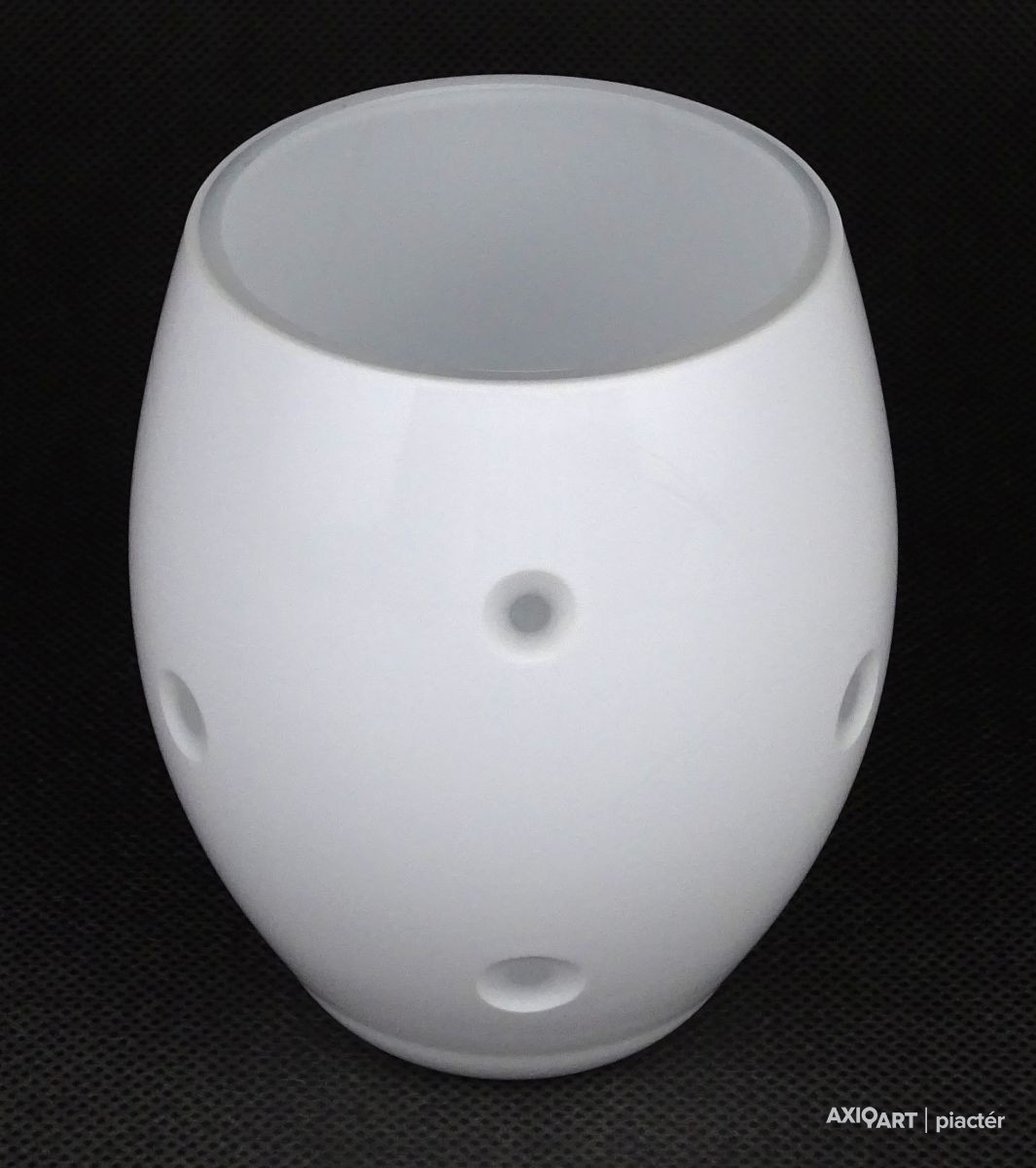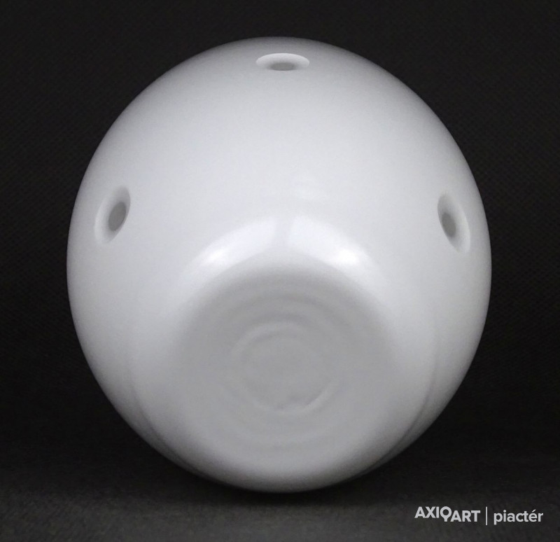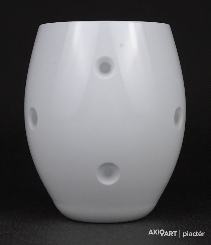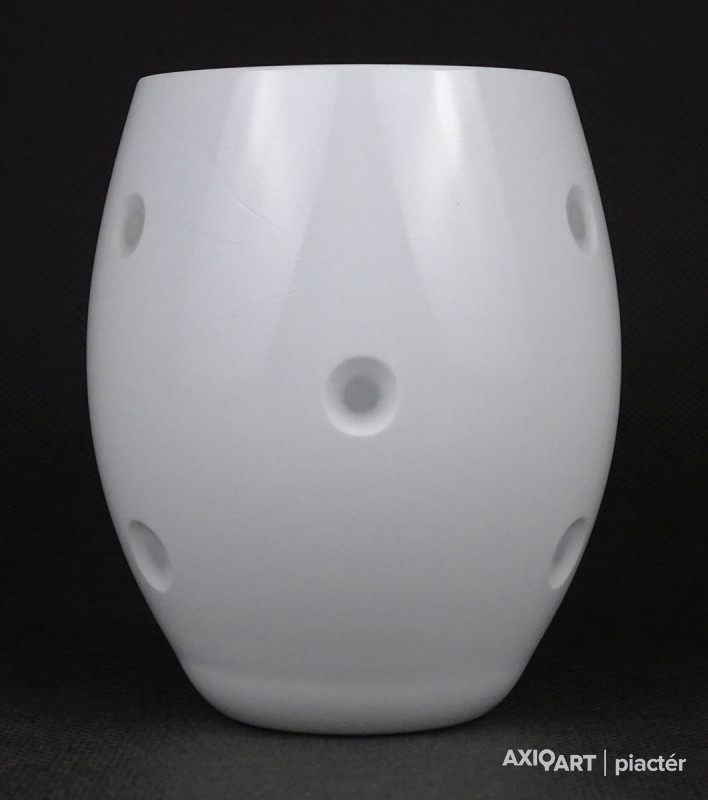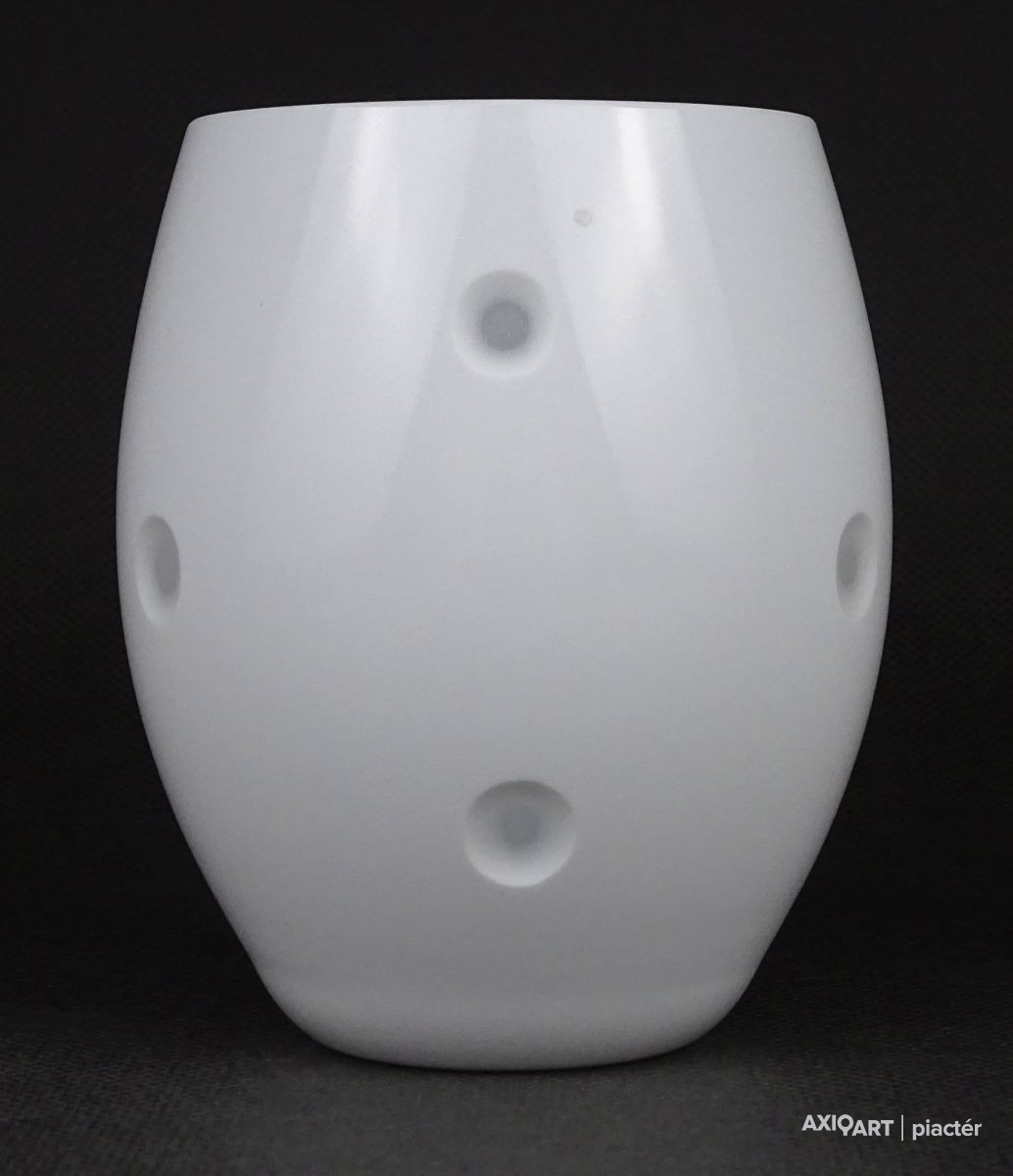 Fehérre színezett rétegelt fújt skandináv tojás alakú üveg váza 10.5 cm