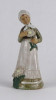Fejkendős virágszedő kerámia lány virágokkal 17.5 cm