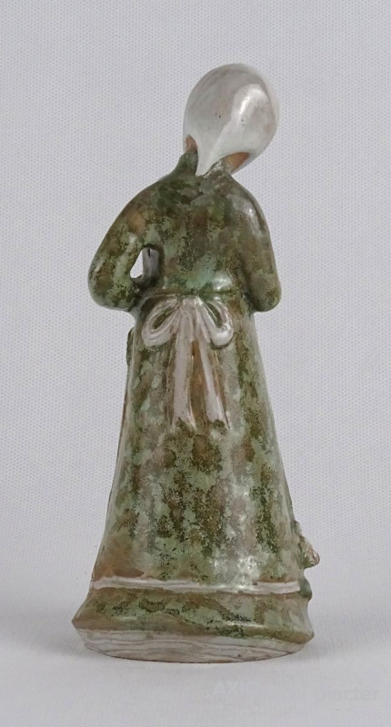 [1S697/Z009] 25% ÁRENGEDMÉNY MINDEN TERMÉKÜNKRE Dec. 14-ig Hibátlan állapotú mázas virágszedő kerámia lány, menyecske szobor. Rajta fejkendő és kötény, kezében virág. Nyaka restaurált. Magasság: 17.5 cm Súly: 0.2 kg