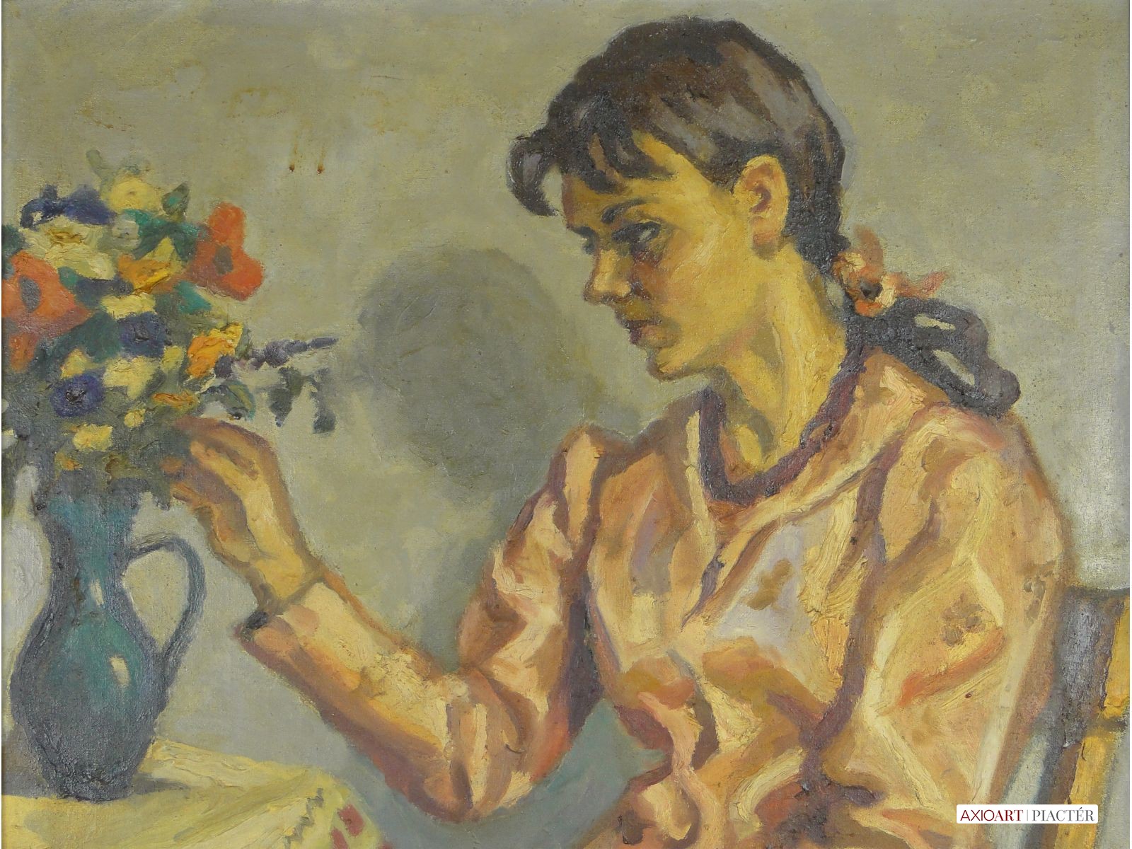 Felekiné Gáspár Anni : Fiatal lány virággal