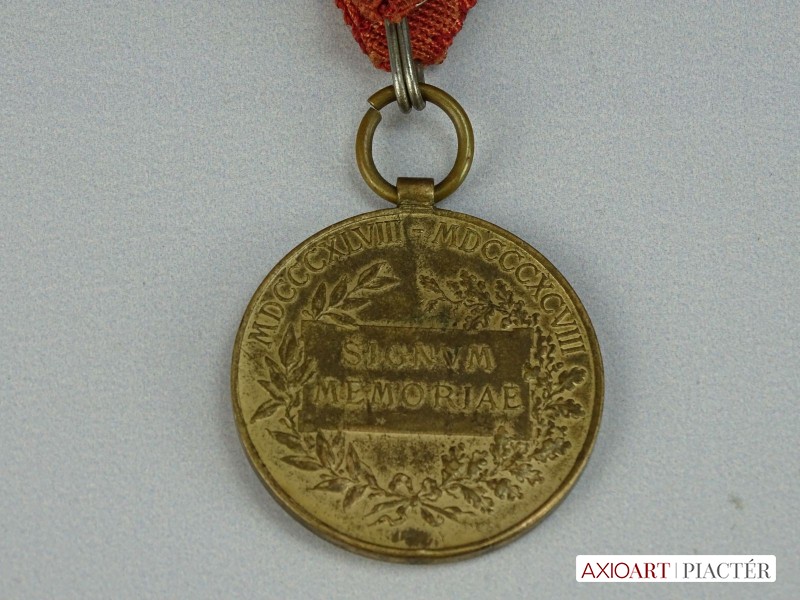 [0H241/X137] Antik, kétoldalas, valódi ezüst érem, emlékérem szalag nélkül. Egyik oldalon Ferencz József császár domború portréja és felirat: FRANC IOS I.D.G. IMP. AUST. REX BOH. ETC ET REX AP. HUNG Másik oldalon babér és tölgyfa ág koszorú, körülötte felirat: SIGNUM MEMORIAE MDCCCXLVIII - MDCCCXCVIII (1848 - 1898) Szélesség: 3.4 cm Hosszúság: 8 cm Súly: 0.023 kg