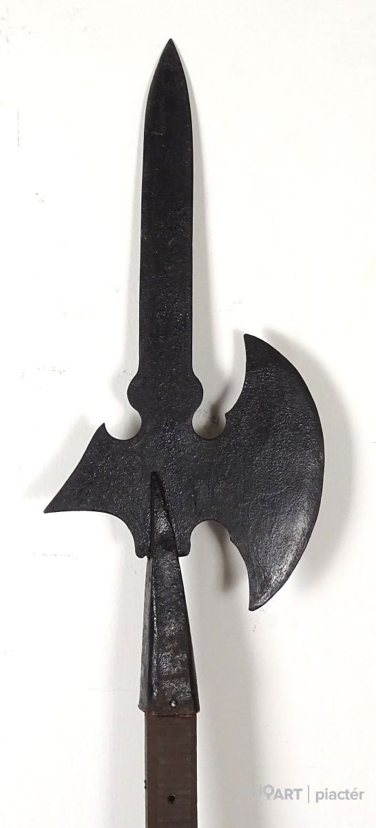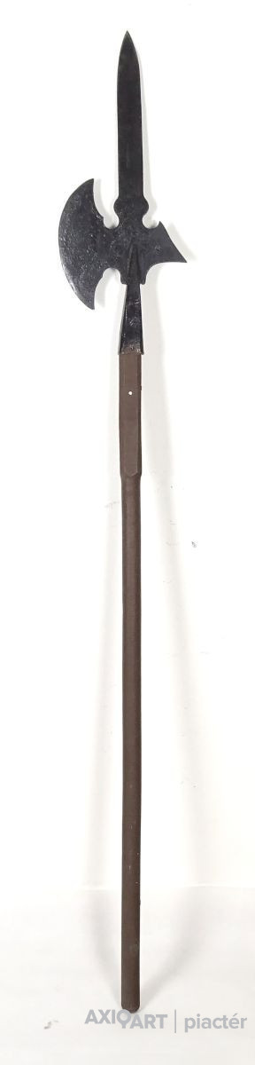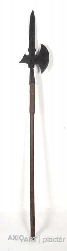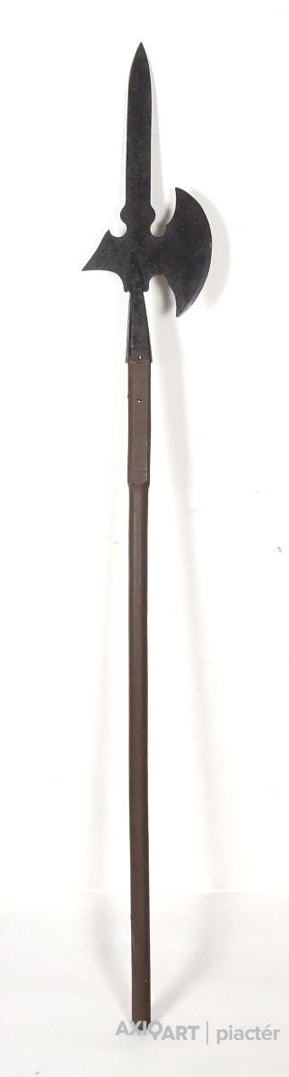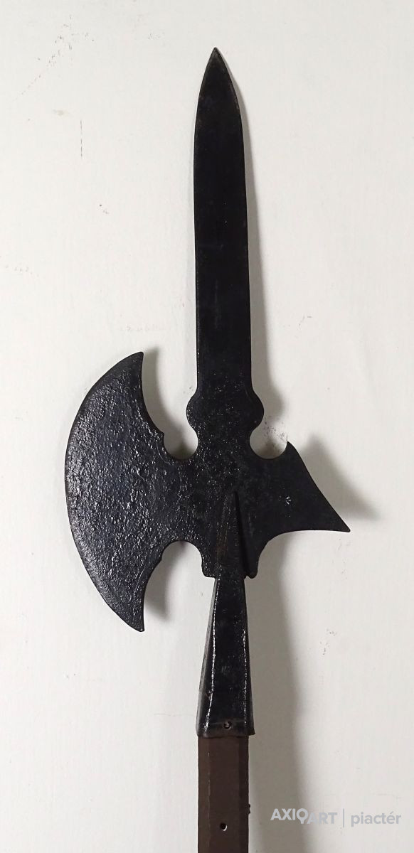 [1R075/KCS] Az alabárd feje feketére festett, alatta halvány mintázat kivehető. Rajta csillag szerű jelzés látható. Hosszúság: 161 cm Súly: 2.01 kg