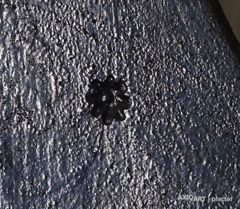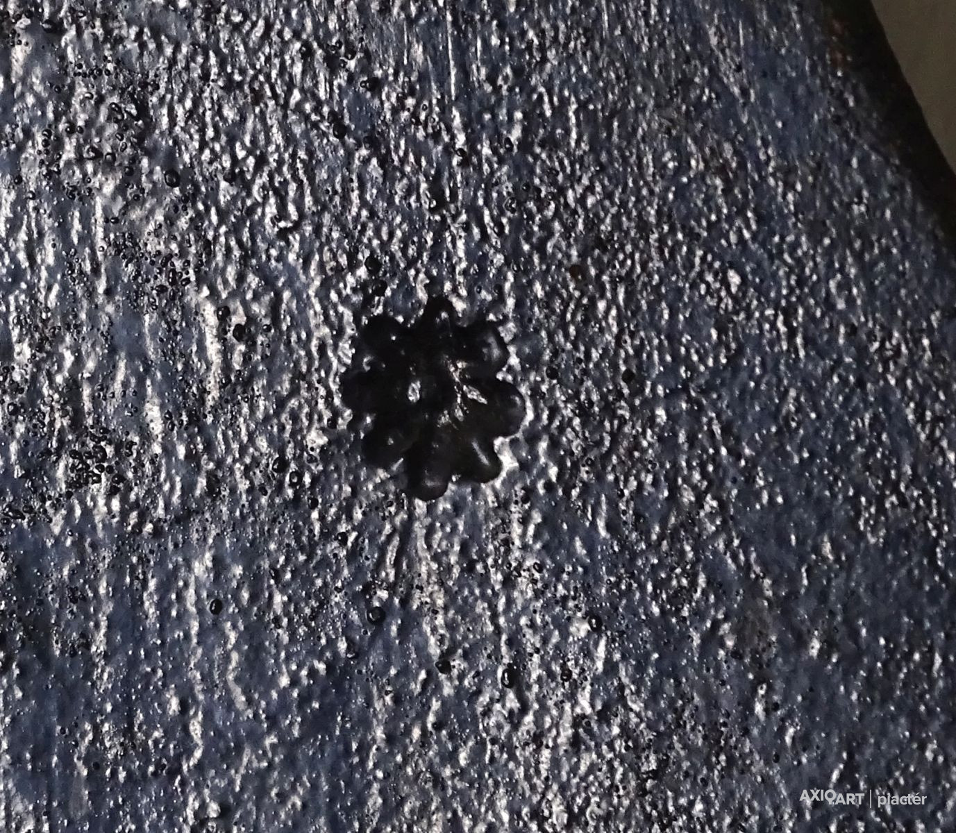 Az alabárd feje feketére festett, alatta halvány mintázat kivehető. Rajta csillag szerű jelzés látható.