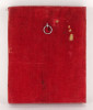 Fa táblára festett ikonkép réz rátétekkel. Akasztási lehetőséggel rendelkezik. A fa lap hátoldala piros anyaggal borított.
