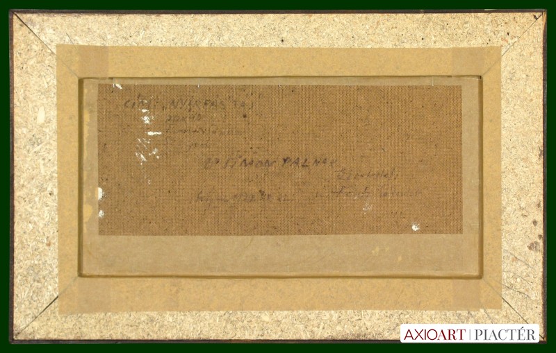 [FK2106/Bp11/7] A kép mérete: 60 x 80 cm keret nélkül. Készült: Olaj, Farostlemez A kép Gádor Emil (Pécs, 1911, Budapest, 1998) alkotása. Jelezve Jobbra lent "Gádor Emil" A festmény jó állapotban van. Keret: Új Magyar festők és grafikusok életrajzi lexikona I-II. Festő, grafikus. A budapesti Képzőművészeti Főiskolán Glatz Oszkár, Rudnay Gyula és Varga Nándor Lajos tanítványa volt. Már főiskolás korában részt vett a Szinyei Társaságnak a Nemzeti Szalonban rendezett "Fiatalok" tárlatán. Itt elismerő kitüntetést nyert (1934). A főiskola után reklámgrafikusként dolgozott. 1942-ben szerepelt a Műcsarnok két nagy tárlatán, s a váci Művelődési Házban két seccót festett. Számos hazai kiállítás mellett Németországban, Velencében, Triesztben, Bolognában, Pozsonyban, Hollandiában, Svájcban és Belgrádban mutatta be tájképeit, portréit és figurális kompozícióit. Tanulmányúton járt több kelet- és nyugat-európai országban, megfordult Egyiptomban és Kubában. 1945-ben hazatelepedett Pécsre, s ettől kezdve aktívan részt vett a város, a Dunántúl képzőművészeti életében. 1958-ban Budapestre költözött, ahol három évig a Műcsarnok osztályvezetőjeként működött. Első fővárosi kiállítása 1959-ben volt a Fényes Adolf Teremben. Festői fejlődésében, s művészi érlelődésében különböző korszakok határolódnak el. Korábban többnyire világos, derűs színvilágú posztnagybányai felfogású művei tették ismertté. Puha, kontúr nélküli formák, lírai hangulatú, táj- és emberábrázolások jellemezték. Később a konstrukció, a szerkezet hangsúlyozása, az összefoglaltabb ábrázolás problémái foglalkoztatták a művészt egyre elmélyültebben. Gádor állandó kedvelt témája a városkép volt. Jól megkomponált, karakterisztikus arcképei biztos rajztudásról és kellemes színmegoldásairól vallanak. Műv. díjak: a Szinyei Társaság kitüntető oklevele. Alba Regia-díj, Janus Pannonius-érem, Szocialista Kultúráért Emlékérem, kiállítási és pályázati elismerések (1960, 1975, 1980). Műveit több magyarországi közgyűjtemény őrzi. (U. E.: Műv. 1972/1, Tassnádi Attila, Műv. 1966/8.) Magyar festők és grafikusok életrajzi lexikona I-II. Műgyűjtők és kereskedők kézikönyve Festő, grafikus. A budapesti Képzőművészeti Főiskolán Glatz Oszkár tanítványa volt. Már főiskolás korában részt vett a Szinyei Társaságnak a Nemzeti Szalonban rendezett "Fiatalok" kiállításán. Itt elismerő kitüntetést nyert (1934). A főiskola után reklámgrafikusként dolgozott. 1942-ben szerepelt a Műcsarnok két nagy tárlatán, s a váci Művelődési Házban két seccot festett. Több hazai kiállításon és Németországban, Velencében, Triesztben, Bolognában, Pozsonyban, Belgrádban mutatta be tájképeit, arcképeit és figurális kompozícióit. 1945-ben hazatelepedett Pécsre, s ettől kezdve aktívan részt vett a város, a Dunántúl képzőművészeti életében. 1958-ban Budapestre költözött. Első fővárosi kiállítása 1959-ben volt a Fényes Adolf Teremben. 1965-ben Janus Pannonius éremmel, 1958-ban Alba Regia-díjjal tüntették ki. Festői fejlődésében, s művészi érlelődésében különböző korszakok határolódnak el. Korábban főleg világos, derűs színvilágú posztnagybányai felfogású alkotásai tették ismertté. Puha kontúr nélküli formák, lírai hangulatú, táj- és emberábrázolások jellemezték. Később a konstrukció, a szerkezet hangsúlyozása, az összefoglaltabb ábrázolás problémái foglalkoztatták egyre elmélyültebben. Állandó kedvelt témája a városkép volt. Jól megkomponált, karakteriksztikus arcképei biztos rajztudásról és kellemes színmegoldásairól vallanak. (U. E.: Műv.-1972/1. Műv.-1966/8) Magyar festők és grafikusok adattára 1936-ban fejezte be főiskolai tanulmányait Glatz Oszkár vezetésével. Számos európai országban megfordult tanulmányúton. Első ízben 1943-ban Vácott lépett a közönség elé, ezt követően 10 alkalommal Pécsett, 1957-ben és 1966-ban a Fényes Adolf Teremben, 1970-ben Kaposvárott, 1971-ben a Csepel Galériában, 1972-ben Debrecenben, 1974-ben Nagykanizsán, 1975-ben Békéscsabán és Nagymaroson, 1976-ban Nyíregyházán mutatkozott be. Több önálló tárlata volt az NSZK-ban. 1934-ben elnyerte a Szinyei Társaság elismerését. 1965-ben Janus Pannonius-éremmel, 1958-ban Alba Regia-díjjal tüntették ki. - Művészi fölfogása realisztikus. Lírájának mély hangját főként színei tolmácsolják. - Irod.: P. Sz. T.: Művész életrajzok. Bp. 1985. Művészeti lexikon I-IV. Festő. 1931-36 között a Képzőművészeti Főiskolán Glatz Oszkár növendéke volt. 1959-ben a Fényes Adolf-teremben mutatta be lírai hangulatú tájképeit és figurális kompozícióit. A pécsmeszesi iskolában freskója van. Művész életrajzok kortárs magyar képzőművészek Festő. 1916-ban fejezte be tanulmányait Glatz Oszkár növendékeként. Első ízben 1943-ban, Vácott lépett a közönség elé, ezt követően tíz alkalommal Pécsett, majd Budapesten (1957, 1966, 1971, 1980), Kaposvárott (1970), Debrecenben (1972), Nagykanizsán (1974), Békéscsabán (1975, 1982), Nagymaroson (1975), Nyíregyházán (1976), Győrött (1978), Szobon (1981) és Dömösön (1983) mutatkozott be. Több önálló tárlata volt az NSZK-ban. 1965-ben Janus Pannonius éremmel, 1958-ban Alba Regia-díjjal tüntették ki. - Művészi felfogása realisztikus, ezen belül azonban konstruktív dekorativitásra törekszik. Kedvelt műfaja a városkép és a csendélet. Kortárs magyar művészeti lexikon I-III. Festő. 1931-36: MKF, mesterei: Glatz Oszkár, Rudnay Gyula, Varga Nándor Lajos. 1934: a Szinyei Társaság kitüntető oklevele; 1959: Alba Regia-díj; 1960, 1975, 1980: kiállítási és pályázati elismerések; 1965: Janus 