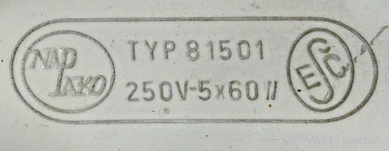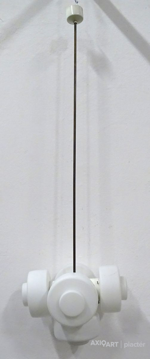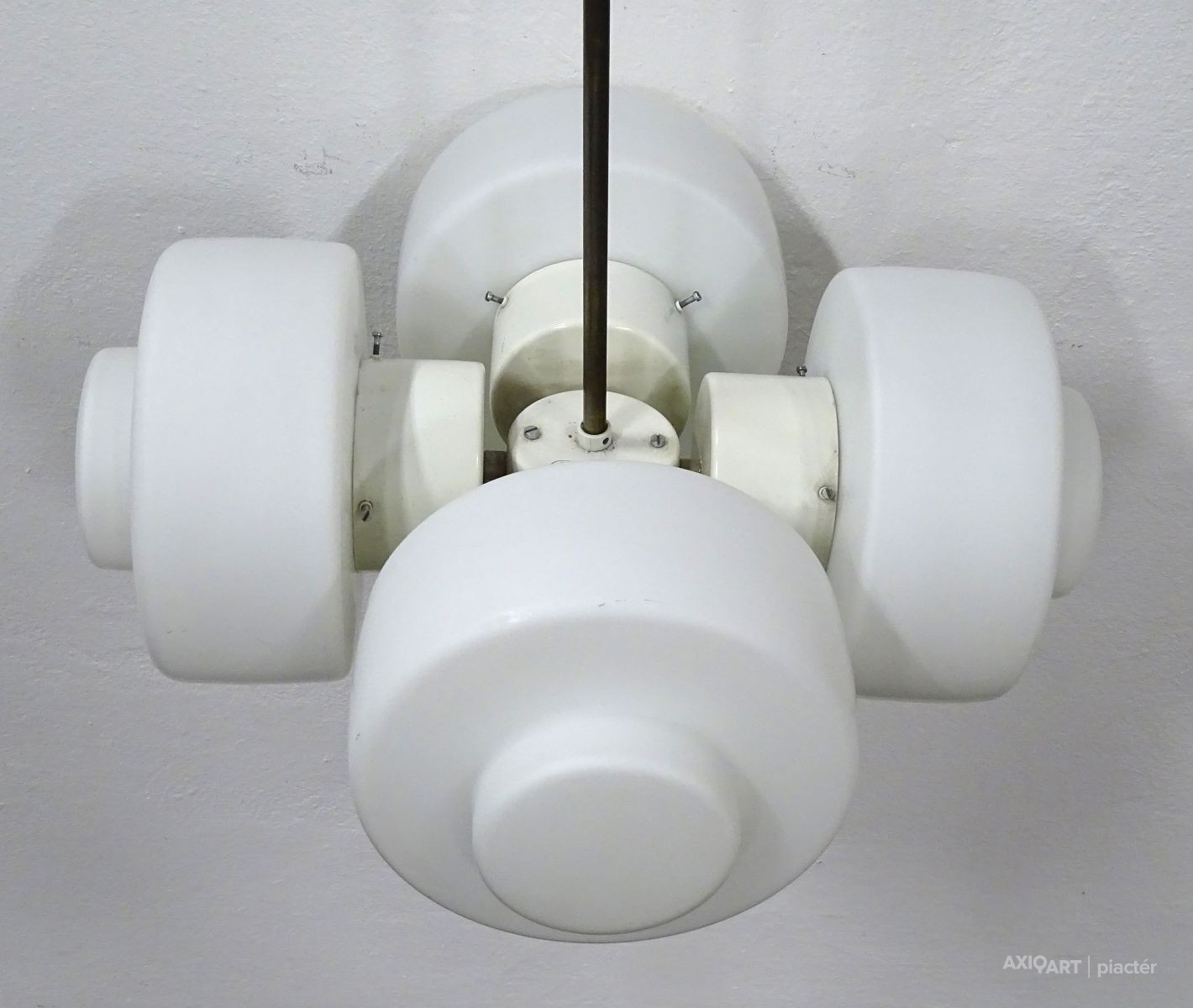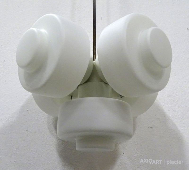 Ritka, öt égős, bauhaus mennyezeti lámpa, csillár. Az egyik burán kisebb repedés található, lásd fotó.