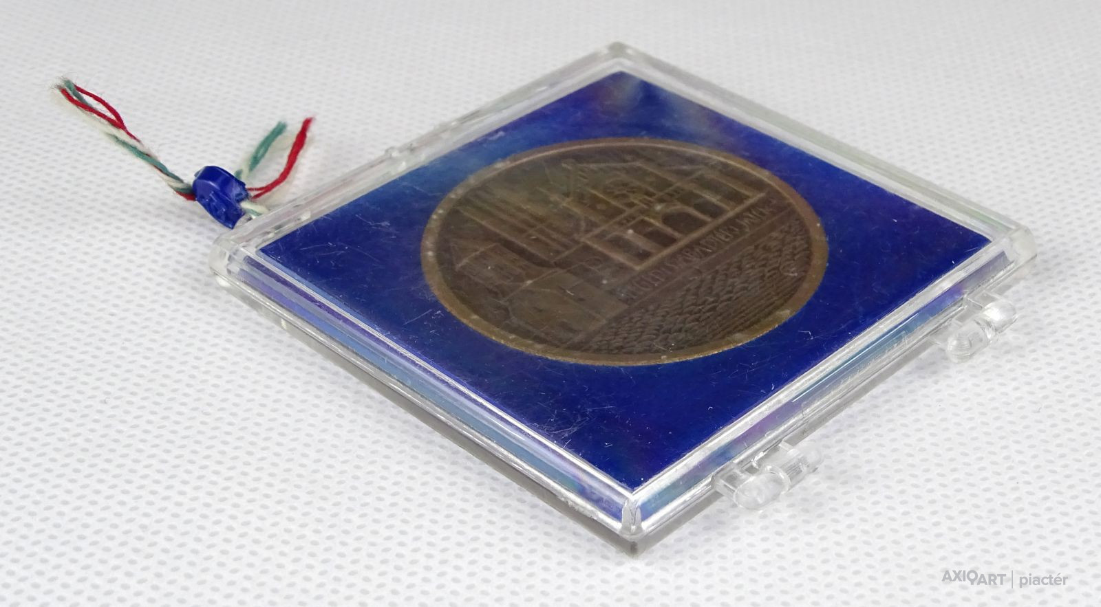 Kemény, plombált gyűjtői műanyag tokban található bronz érem, plakett.