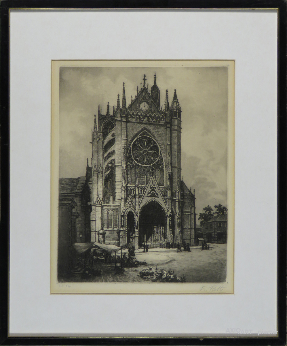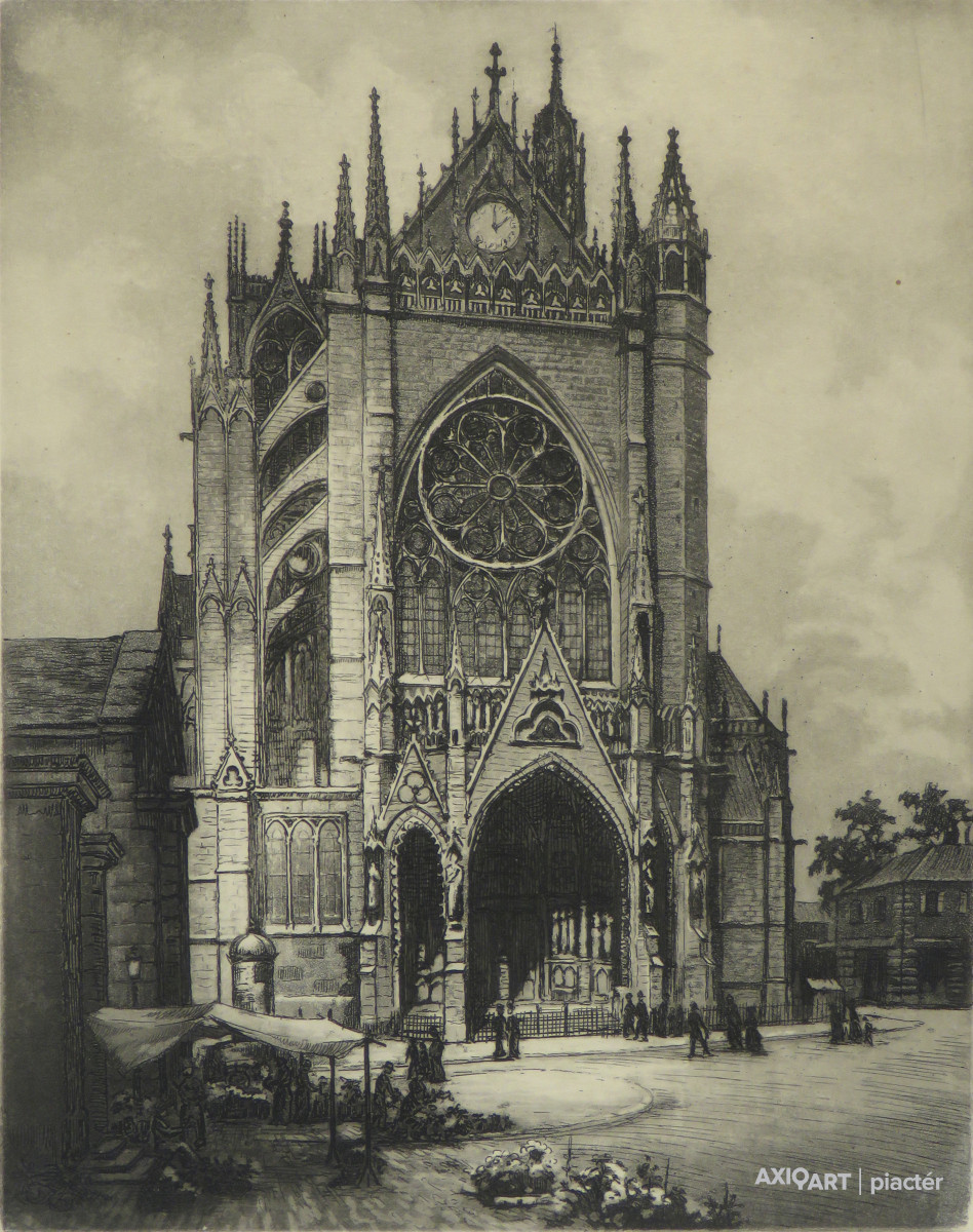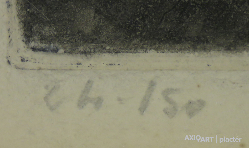 [FKC302/Bp58/33] A kép mérete: 22 x 34 cm keret nélkül. Készült: Akvarellel színezett rézkarc, Papír A kép Zádor István (Nagykikinda, 1882, Budapest, 1963) alkotása. Jelezve jobbra lent "Zádor István (ceruzával)" A festmény jó állapotban van. Keret: Új Magyar festők és grafikusok életrajzi lexikona I-II. Festő, grafikus. Huszonhat éves volt, amikor elhatározta, hogy fejét a művészetre adja. Éveken át tanulta a grafikai technikát. Budapesten, Párizsban és Firenzében folytatott tanulmányokat. Budapesten Olgyai Viktor volt a tanítómestere, Párizsban az École des Beaux Arts-on képezte magát. Nyáron a szolnoki művésztelepen, télen pedig Párizsban dolgozott, kisebb brüsszeli, antwerpeni kirándulásokkal tarkítva. 1910-ben Észak-Olaszországban tartózkodott, Firenzében az akadémián tanult. 1918-19-ben több forradalmi rajzriportot készített. A Tanácsköztársaság bukása után először Weimarba, majd Münchenbe emigrált, előbb a Bauhaus növendéke volt, majd ismét a rézkarc technikát tanulmányozta. Stuttgart volt az utolsó állomás. Csendéleteket, táj- és arcképeket, aktokat, enteriőröket festett, bár többnyire grafikával foglalkozott. Zádor igen nagy technikai tudással bírt a rézkarcolás művészetében. Főképp városképeket, hatásos architektúrákat varázsolt lapjaira. Egy német kiadó megbízásából sorozatban örökítette meg a Rajna-vidéki és tengerparti városokat, később a Ruhr-vidék gyárairól készített rézkarcokat. Neve ismertté vált mindenfelé. Olaszországba, Svájcba hívták meg kiállítani. Kiállítások, cserék, eladások, évkönyvek Angliától Japánig, Amerikáig. 1930-ban meghívták Hollandiába. Tájképeivel olyan sikert aratott, hogy megbízást kapott egy kiadótól 36 orvosprofesszor protréjának megrajzolásával, majd egy holland katonai szaklap bízta rá a tábornokok megörökítését. A Szinyei Társaság tagja, a Magyar Rézkarcolóművészek Egyesületének elnöke volt. 1918-ban "Ebédlő" című enteriőrje állami kis aranyérmet nyert. Illusztrációiért elnyerte a könyv-illusztrációs díjat, majd a Lipótvárosi Kaszinó díját. Később Kossuth-díjjal jutalmazták munkásságát. 1934-ben jelent meg ofszetnyomásban "Egy hadifestő emlékei" című albuma. Több olajképe, rézkarca és litográfiája található a Magyar Nemzeti Galériában. "Budapest 1945" című albuma a felszabadulás után "Egy fél évszázad rajzokban" című albuma 1959-ben jelent meg. (Éber, ML, Czeizing-Fehér: Művészek) Magyar festők és grafikusok életrajzi lexikona I-II. Műgyűjtők és kereskedők kézikönyve Kossuth-díjas festő, grafikus. Budapesten, Párizsban és Firenzében tanult. Párizsban az École des Beaux Arts-n képezte magát. A szolnoki művésztelep tagja volt. 1918-19-ben forradalmi rajzriportokat készített. A Tanácsköztársaság bukása után, először Weimarba, majd Münchenbe emigrált. Csendéleteket, táj- és arcképeket, valamint enteriőröket festett, bár többnyire grafikával foglalkozott. Olgyai Viktor volt a tanítómestere. Igen nagy technikai tudással bírt a rézkarcolás művészetében. Többnyire városképeket, hatásos architektúrákat varázsolt lapjaira. A Szinyei Társaság tagja, a Magyar Rézkarcolóművészek Egyesületének elnöke volt. 1918-ban "Ebédlő" című enteriőrje állami kis aranyérmet nyert. 1934-ben jelent meg offsetnyomásban "Egy hadifestő emlékei" című albuma. Több kiállítása volt a fővárosban. Számos olajképe, rézkarca és litográfiája van a Magyar Nemzeti Galériában. "Budapest 1945" című albuma a felszabadulás után, "Egy fél évszázad rajzokban" című albuma 1959-ben jelent meg. Kossuth-díjjal tüntették ki. (Éber, ML) Magyar festők és grafikusok adattára Festő, grafikus, Kossuth-díjas. Festményei enteriőrök, portrék és tájképek. Legismertebb művei rézkarcok és rajzok. Albumai: Budapest 1945; Egy fél évszázad rajzokban (Budapest, 1959). 1958-ban az Ernst Múzeumban volt életmű kiállítása. Irod.: Dénes Tibor: Zádor István. Képzőművészet, 1938., Zádor István és Grantner Jenő kiállítási katalógus. Ernst Múzeum. 1958. Művészeti lexikon I-IV. Festő és grafikus, Kossuht-díjas. Bp.-en, a párizsi École des Beaux-Arts-on és Firenzében tanult. A szolnoki művésztelep tagja volt. Festményei főleg intérieurök, tájak és kiváló karakterű portrék. Részletező, érzékeny rézkarcain líraian ábrázolta a Tisza menti tájat. 1918-19-ben forradalmi riportokat készített. A Tanácsköztársaság bukása után Weimarba, majd Münchenbe emigrált. 1929-től a Magyar Rézkarcoló Művészek Egyesületének elnöke volt. Számos kiállításon vett részt (1916, 1918, 1921, 1922), legutóbb 1958-ban az Ernst Múzeumban rendeztek nagy retrospektív kiállítást műveiből (Grantner Jenővel közösen). Budapest 1945 c. albuma a felszabadulás után, Egy fél évszázad rajzokban c. albuma 1959-ben jelent meg. Művészeti lexikon I-II. Festő és grafikus. Nagykikinda 1882. jan. 15. Budapesten, Párizsban és Firenzében tanult. Csendéleteket, tájképeket, arcképeket és interiöröket fest, bár elsősorban grafikával foglalkozik. Mestere a grafikában Olgyai Viktor volt. Technikai tudása a rézkarcolásban igen nagy, többnyire városképeket, hatásos architektúrákat varázsol lapjaira. Több olajképe, számos rézkarca és litográfiája van a Szépműv. Múz.-ban és a Főv. Képtárban. A Szinyei-Merse Pál Társaság tagja, a Magyar Rézkarcolóművészek Egyesületének elnöke. 1918. Ebédlő c. interiőrje állami kis aranyérmet kapott. 1916. a Nemzeti Szalónban, 1918., 1921. az Ernst-múzeumban volt kollektív kiállítása. 1934. jelent meg offsetnyomásban Egy hadifestő emlékei c. albuma. Kortárs magyar művészeti lexikon I-III. A középiskola elvégzése után 1906-ig banktisztviselő v