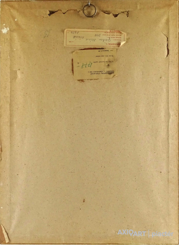 [FK2668/Bp301/4] A kép mérete: 50,5 x 80,5 cm keret nélkül. Készült: Olaj, Vászon A kép Moldován István (Kolozsvár, 1911) alkotása. Jelezve Jobbra lent "Moldován István" A festmény jó állapotban van. Keret: Ép A festmény hátoldalán a Képcsarnokvállalat raglapja láltható. Magyar festők és grafikusok életrajzi lexikona I-II. Festő. Tanulmányait Kolozsvárott, a Szépművészeti Főiskolán kezdte 1930-ban. A következő esztendőben a nagybányai Szépművészeti Iskolában Thorma János és Krizsán János korrektúráján képezte magát. 1931-ben a budapesti Képzőművészeti Főiskola hallgatója lett. Réti István, később Szőnyi István volt a mestere. Már mint főiskolás sok díjat és kitüntetést nyert. 1948-ban megkapta a római ösztöndíjat, de lemondva róla, Erdélybe ment. 1948-1950 között Erdélyben élt, és népművészetben gazdag vidékein festett. 1943-ban Kolozsvárott, 1946-ban Gyöngyösön, 1955-ben, 1959-ben és 1962-ben a Kulturális Kapcsolatok Intézetében, illetve a Csók Galériában rendezett egyéni bemutatókat. Ezen kívül több Európai országban, az USA-ban, Kanadában és Indiában is bemutatta munkáit. Eleinte sajátos atmoszférájú, lírai tájképeket, eleven színvilágú képmásokat festett, később mondernebb, erőteljesebben szerkesztett művekkel jelentkezett. A Pécsi Tanárképző Főiskola számára mozaikot készített. Erdély szerelmese volt. A székely népművészet gazdag formavilágának hatása döntő jelentőségűvé vált sokoldalú művészetében. Műv. díjak: a Szinyei Társaság elismerő oklevele, a Főváros festészeti-díja, "Kolozsvár a képzőművészetben" II. díj, állami ösztöndíj, római ösztöndíj, a Képzőművészek Szövetsége Észak-Magyarországi festészeti díja, SZOT festészeti díj. Több murális művet (mozaik) alkotott. A Magyar Nemzeti Galéria több alkotását őrzi. (M. L.: Műv. 1967/6, RI-NM) Magyar festők és grafikusok életrajzi lexikona I-II. Műgyűjtők és kereskedők kézikönyve Festő. Tanulmányait a kolozsvári Szépművészeti Főiskolán kezdte 1930-ban. A nagybányai szabadiskolában is megfordult. Itt Thorma János és Krizsán János korrektúráján képezte magát. 1931-ben Budapesten a Képzőművészeti Főiskola hallgatója lett. Réti István, később Szőnyi István volt a mestere. Már mint főiskolás sok díjat nyert. 1948-ban megkapta a római ösztöndíjat, de lemondva róla, Erdélybe ment. 1948-1950 k. Erdélyben élt, és népművészetben gazdag vidékein festett. 1943-ban Kolozsváron, 1946-ban Gyöngyösön, 1955-ben, 1959-ben és 1962-ben a Kulturális Kapcsolatok Intézetében, illetve a Csók Galériában rendezett önálló kiállítást. Ezen kívül több Európai országban, az USA-ban, Kanadában és Indiában is bemutatta műveit. Eleinte sajátos atmoszférájú, lírai tájképeket, eleven színvilágú képmásokat festett, később mondernebb, erőteljesebben szerkesztett művekkel jelentkezett. A Pécsi Tanárképző Főiskola számára mozaikot készített. Erdély szerelmese volt. A székely népművészet gazdag formavilágának hatása döntő jelentőségűvé vált sokoldalú művészetében. 1942-ben megkapta a Szinyei Társaság elismerését, és a Főváros festészeti-díjat,1943-ban elnyerte a "Kolozsvár a képzőművészetben" c. díjat. 1947-ben állami ösztöndíjat,1948-ban a római ösztöndíjat, 1972-ben a Képzőművészek Szövetsége Észak-Magyarországi festészeti díját kapta meg. A MNG több művét őrzi. (M. L.: Műv.-1976/6) Magyar festők és grafikusok adattára Tanulmányait Kolozsvárott a Képzőművészeti Főiskolán, majd Nagybányán Thorma János és Krizsán János irányítása mellett kezdte, 1931-től Budapesten megszakításokkal a Képzőművészeti Főiskolán Réti István és Szőnyi István növendékeként fejezte be. 1949-ben és 1950-ben ösztöndíjjal dolgozott Erdélyben, majd hosszú tanulmányutakra indult Nyugat-Európába, az Egyesült Államokba, s a Szovjetunióba. Először Kolozsvárott lépett a nyilvánosság elé 1943-ban, majd 1946-ban Egerben és Gyöngyösön, 1947-ben Miskolcon, 1948-ban Hatvanban, 1955, 1961 és 1981-ben a Csók Galériában, 1959-ben a KKI-ben, 1960-ban Nagykanizsán, 1963-ban Kiskunfélegyházán, 1966-ban Debrecenben, 1969 és 1975-ben Békéscsabán, 1971-ben a Mednyánszky Teremben, 1973-ban Gyöngyösön és Debrecenben, 1977-ben Egerben, 1979-ben Veszprémben, 1983-ban Miskolcon, 1984-ben Csepelen, 1986-ban a Vigadó Galériában rendezett önálló kiállítást. Külföldi kiállításai: Moszkva, Varsó, India, Szófia, Párizs, Bukarest, Belgrád, New York, Montreál és Toronto. Eddig közel kétezer színes táblaképet festett, de szívesen foglalkozik mozaikkészítéssel is. 1964-ben a Pécsi Pedagógiai Főiskola, 1968-ban a Salgótarjáni Kórház, 1969-ben a názáreti templom és 1970-ben a Videoton Vállalat díszterme részére mozaikot készített. - Erdély szerelmese. A székely népművészet gazdag formavilágának hatása döntő jelentőségűvé vált festészetében. Olyan formanyelvet alakított ki magának, amely színvilágában és summázó formaalakításában sajátos erdélyi zamat érződik, ugyanakkor korszerűen modern is konstruktivista stílusa. Munkásságát 1942-ben a Szinyei Társaság elismerésével és a Fővárosi festészeti-díjjal, 1943-ben Római-ösztöndíjjal, 1947-ben Állam ösztöndíjjal (Románai), 1963-ben a SZOT festészeti-díjával, 1972-ben a Képzőművészek Szövetsége Észak-Magyarországi festészeti-díjával tüntették ki. - Irod.: Bíró Béla: Kolozsváry Moldován István. Erdélyi Helikon, 1943.; Felvinczi Takács Zoltán: Kolozsváry Moldován István. Kolozsvár, 1943.; Dutka Mária: Magyar Nemzet, 1961.; Maksay László: Moldován István. Művészet, 1965.; D. Fehér Zsuzsa. Moldován István, Bp. 1971.; Theisler G