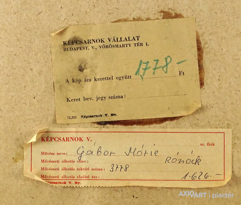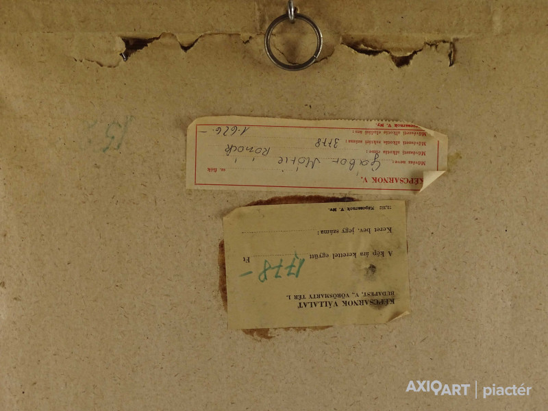 Hátoldalán Képcsarnok Vállalat papír címkéi, rajtuk felirat: