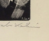 Sorszámozott papír fametszet üveglap mögött, hibátlan keretben. Akasztási lehetőséggel rendelkezik.