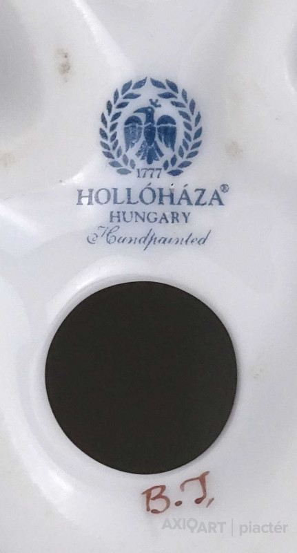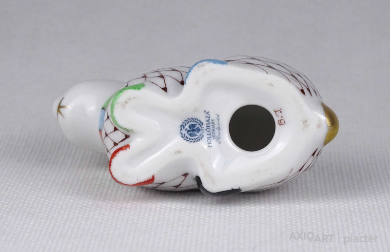 [1U329/Z265] Hibátlan állapotú, jelzett, garden mintás, kézzel festett Hollóházi porcelán nyúl figura. Alján kék márkajelzés: HOLLÓHÁZA HUNGARY HANDPAINTED Magasság: 7.7 cm Szélesség: 3.5 cm Hosszúság: 7.8 cm Súly: 0.08 kg
