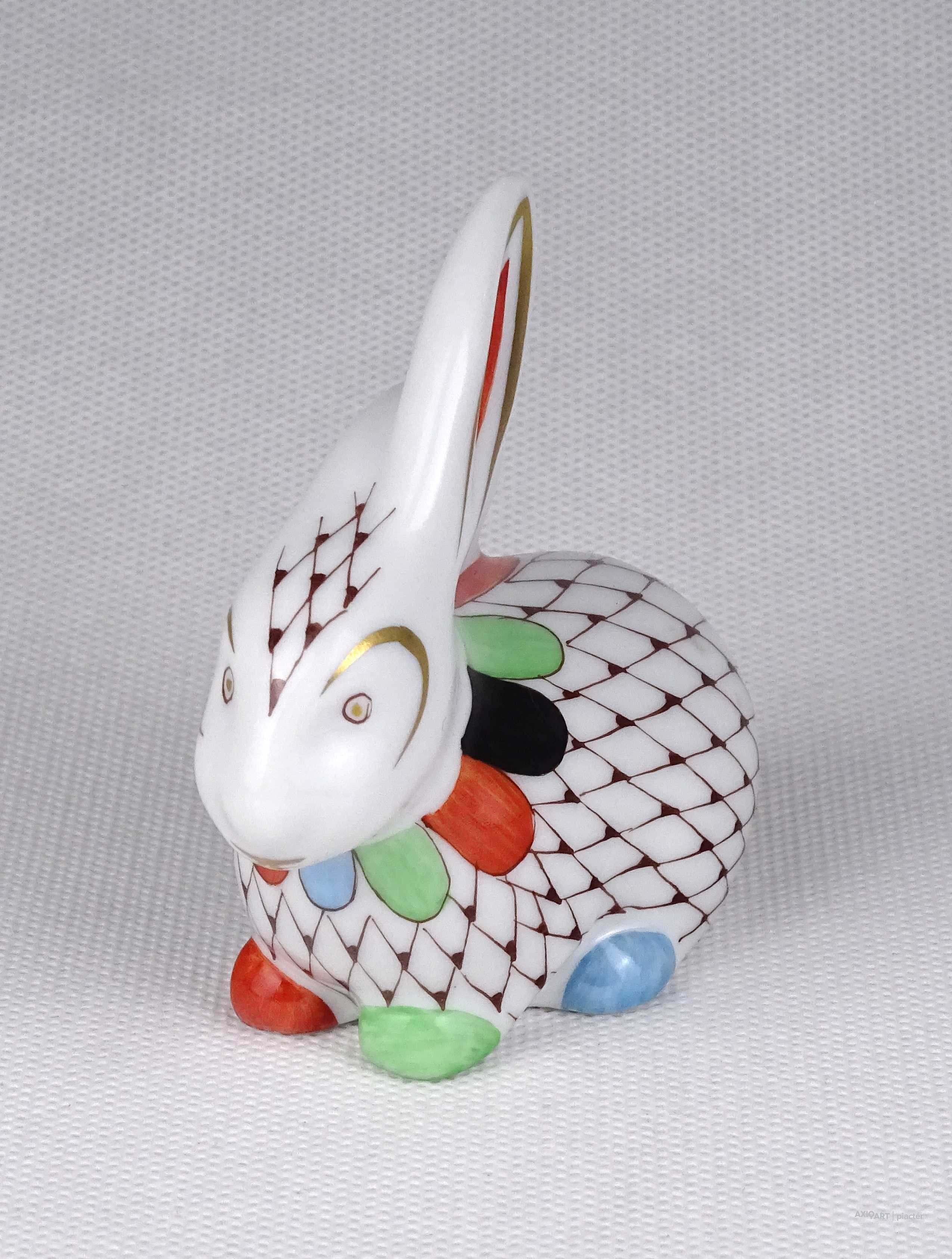 Garden mintás Hollóházi porcelán nyúl 7.7 cm