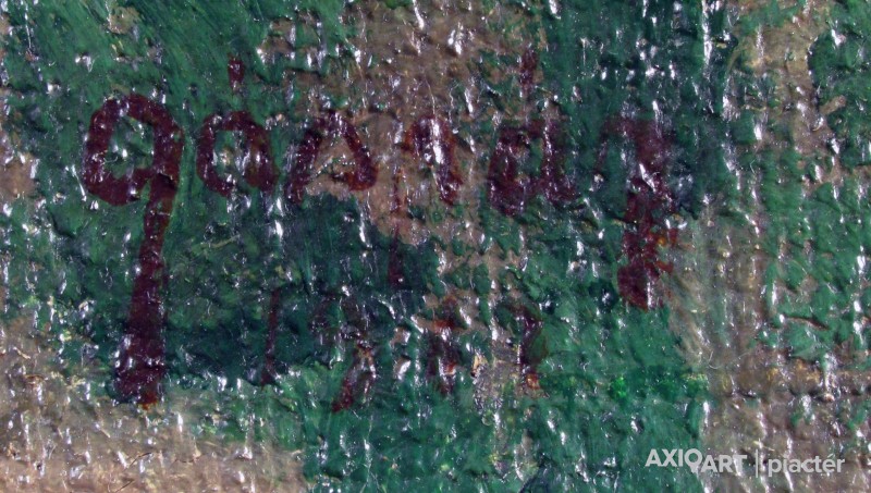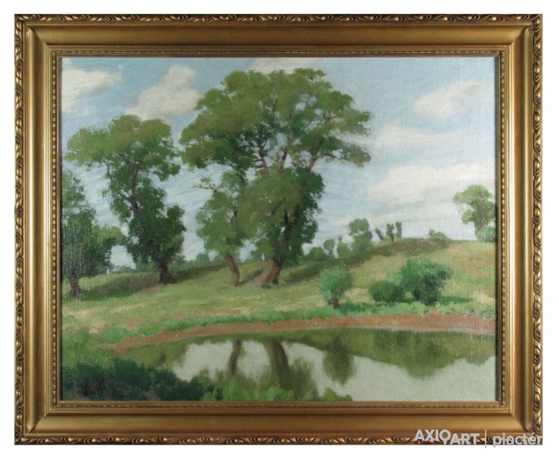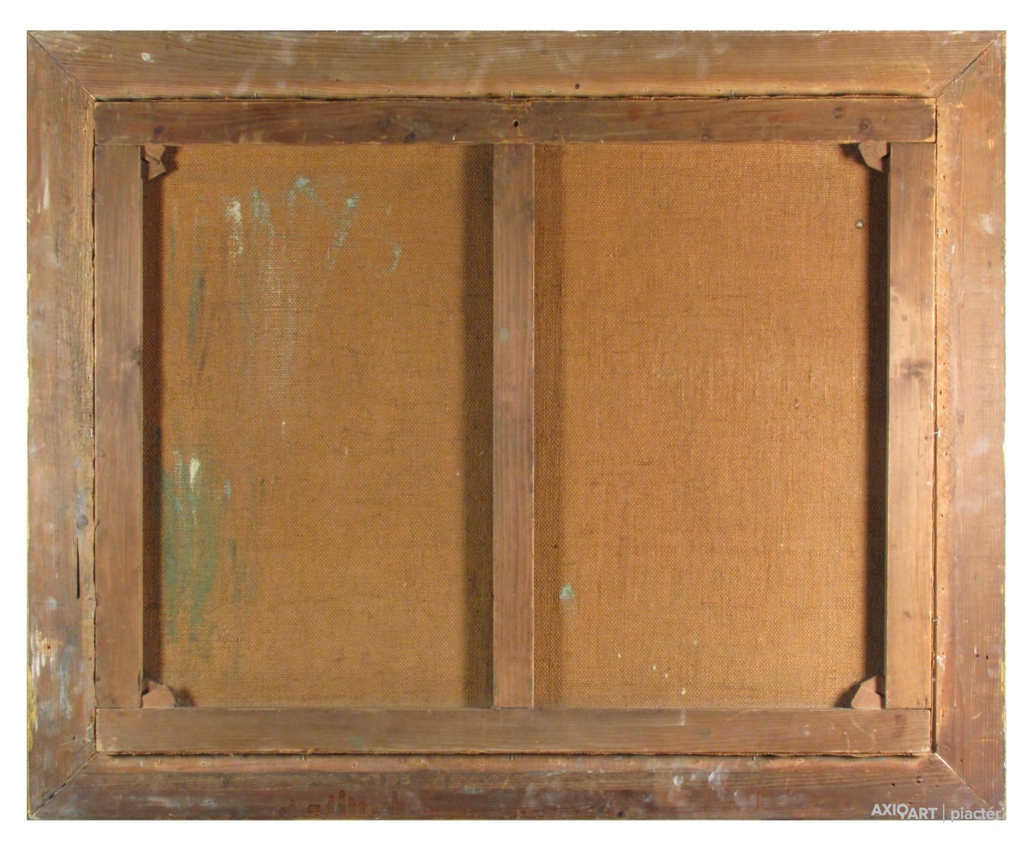 [FKC876/Bp92/46] A kép mérete: 100 x 81 cm keret nélkül. Készült: Olaj, Vászon A kép Ujváry Ignác (Pest, 1860, Kisoroszi, 1927) alkotása. Jelezve balra lent "Újváry I." A festmény jó állapotban van. Keret: Ép Magyar festők és grafikusok életrajzi lexikona I-II. Festő. Budapesten Lotz Károly mellett, a Benczúr-mesteriskolában, majd Münchenben és Párizsban tanult. Eleinte nagyobb kompozíciókkal szerepelt a fővárosi tárlatokon (Szent István szentté avatása), később visszavonulva Kisorosziba, erőteljes, friss tájfestményekkel lépett fel (virágos rét, Eresz alatt, stb.). 1928-ban a Műcsarnokban hagyatéki kiállítást rendeztek műveiből. Tanára volt a budapesti Iparművészeti Iskolának. Több díjat kapott. 1891-ben a Rökk-díjat, 1894-ben a Műbarátok-díját, 1895-ben pedig az Ipoly-díjat nyerte. Tagja volt a Magyar Képzőművészek Egyesületének. Néhány munkája a Magyar Nemzeti Galéria tulajdona. (Éber, ML, VNML) Magyar festők és grafikusok életrajzi lexikona I-II. Műgyűjtők és kereskedők kézikönyve Festő. Budapesten Lotz Károly mellett, a Benczúr-mesteriskolában, Münchenben és Párizsban tanult. Eleinte nagyobb kompozíciókkal szerepelt (Szent István szentté avatása), majd visszavonulván Kisorosziba, erőteljes, friss tájképekkel lépett fel. Tanára volt a fővárosi Iparművészeti Iskolának. 1891-ben Rökk-díjat, 1894-ben a Műbarátok díját, 1895-ben az Ipoly-díjat nyerte. Néhány képe a MNG tulajdona. (Éber) Művészeti lexikon I-II. Festő, szül. Budapest 1860. szept. 20. U. o. végezte tanulmányait s eleinte nagyobb kompozíciókkal szerepelt (Szent István szentté avatása), később visszavonulván Kisorosziba, erőteljes, friss tájképekkel lépett fel (Virágos rét, Eresz alatt). Tanára az Iparművészeti Iskolának. Művészeti lexikon I-IV. Festő. Bp.-en Lotz Károly tanítványaként, majd a Benczúr-mesteriskolában, később Münchenben és Párizsban végezte tanulmányait. Eleinte nagyobb kompozíciókkal szerepelt a bp.-i tárlatokon (Sz. István szentté avatása), később Kisorosziba visszavonulva erőteljes ecsetkezelésű, friss tájképeit állította ki. Több művésszel együtt részt vett a Feszty-körkép festésében. Az Iparművészeti Iskola tanára volt. Számos díjat nyert. Néhány képét a Nemz. Gal. őrzi. 1928-ban a Műcsarnok hagyatéki kiállítást rendezett műveiből. Magyar festők és grafikusok adattára Korai képei nagyobb történelmi kompozíciók, legjobb művei azonban Kisorosziban festett tájai. 1928-ban rendezték meg hagyatéki kiállítását a Műcsarnokban. Zsellérudvar, Őszi est, Hajóépítés a Dunaparton c. munkáit a Magyar Nemzeti Galéria őrzi. - Irod.: Lyka Károly: Ujváry Ignác, Magyar Művészet, 1927.