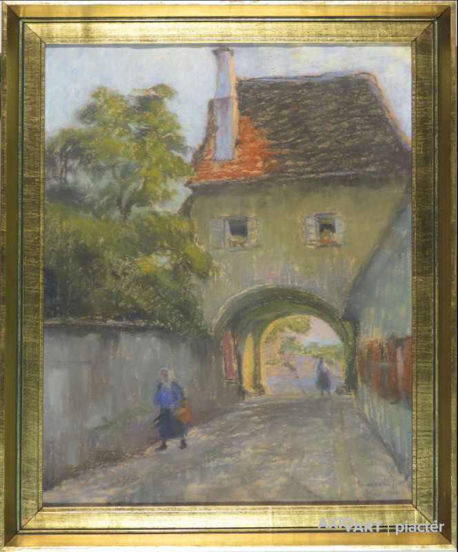 [FKC944/Bp307/8] A kép mérete: 60 x 48 cm keret nélkül. Készült: Pasztell, Papír A kép Gimes Lajos (Miskolc, 1886, 1945) alkotása. Jelezve jobbra lent "Gimes Lajos ... 939" A festmény jó állapotban van. Keret: Ép Magyar festők és grafikusok életrajzi lexikona I-II. Festő. Budapesten, Münchenben, Párizsban tanult. 1911-től nagyobbára temperával festett tájképekkel szerepelt tárlatainkon (Havasi táj, Március végén, Selmeci piac stb.). 1924-ben az Ernst Múzeumban, 1928-ban pedig a Műcsarnokban volt kollektív tárlata. Impresszionizmusba hajló naturalista képeket festett. 1924-ben "Őszi napsugár" című művével kitüntető elismerést, 1925-ben "Március végén" című képével a Lipótvárosi Kaszinó díját, 1926-ban "Dolomitok" című vízfestményével gróf Esterházy Móric-emlékdíját nyerte. 1917-ben "Tábori kovácsok" című képét a főváros vásárolta meg. (Éber, Új idők Lexikona/1938, ML) Magyar festők és grafikusok adattára Budapesten, Münchenben és Párizsban tanult. 1911-től állított ki tájképeket a Műcsarnokban. 1924-ben az Ernst Múzeumban, 1928-ban a Műcsarnokban volt kollektív kiállítása. Impresszionizmusba hajló naturalista képeket festett. - ML Magyar festők és grafikusok életrajzi lexikona I-II. Műgyűjtők és kereskedők kézikönyve Festő. Budapesten, Münchenben, Párizsban tanult. 1911-től állított ki tájképeket a Műcsarnokban. 1924-ben a fővárosi Ernst Múzeumban, 1928-ban a Műcsarnokban volt kollektív kiállítása. Impresszionizmusba hajló naturalista képeket festett. (ML) Művészeti lexikon I-IV. Festő. Bp.-en, Münchenben és Párizsban tanult. 1911-től állított ki tájképeket a Műcsarnokban. 1924-ben az Ernst Múzeumban, 1928-ban a Műcsarnokban volt kollektív kiállítása. Impresszionizmusba hajló naturalista képeket festett. Művészeti lexikon I-II. Budapesten tanult s itt és Miskolcon működött. 1911 óta állít ki tájképeket a Műcsarnokban.