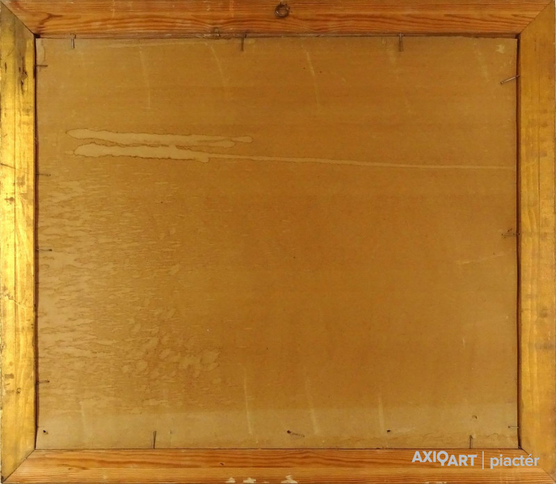 [FK0037/Z018] A kép mérete: 50 x 70 cm keret nélkül. Készült: Olaj, Vászon A kép Paizs László (Szentpéterúr, 1935) alkotása. Jelezve Jobbra lent "P. L." A festmény jó állapotban van. Keret: Ép A festmény hátoldalán a Képcsarnokvállalat címkéje található. Magyar festők és grafikusok életrajzi lexikona I-II. Festő. Tanulmányait a budapesti Iparművészeti Főiskolán végezte 1959-ben. Z. Gács György, Rákosy Zoltán és Szentiványi Lajos növendéke volt. A '60-as évek első felében hagyományosabb felfogású olajképeket festett, mozaikokat, freskókat, utóbb a pop-art körébe tartozó, a francia Arman munkáival rokon műveket alkotott. 1961 óta kiállító művész. Egyéni (Fényes Adolf Terem, Csók Galéria, Műcsarnok, Magyar Nemzeti Galéria, Halászbástya, Bástya Galéria, Vigadó Galéria, Budapest Galéria, Győr, Szombathely, Szeged, Zalaegerszeg, Duisburg, Aix-en-Provence, stb). és vegyes (Ernst Múzeum, Műcsarnok, Óbuda Galéria, Magyar Nemzeti Galéria, Csók Galéria, Vigadó Galéria, Székesfehérvár, Kaposvár, Pécs, Hódmezővásárhely, Firenze, Milano, Padova, Nápoly, Velence, Düsseldorf, Aachen, Genf, stb) tárlatokon vett részt. 1980-ban Munkácsy-díjjal jutalmazták, 1988-ban Érdemes Művész kitüntető elismerésben részesült. Munkáit őrzi a Magyar Nemzeti Galéria, a Fővárosi Képtár, a szombathelyi képtár, a pécsi Janus P. Múzeum, a székesfehérvári István Király Múzeum és a dunaszerdahelyi Kortárs Magyar Galéria. (H.B.: Műv, 1972/4, K.Gy.: Műv. 1977/2, K.G.: Műv. 1978/10, M.L.: Műv, 1983/5, R.G.: Műv, 1987/9, Sz.Gy.: Új Műv. 1995/4, MK) Magyar festők és grafikusok életrajzi lexikona I-II. Műgyűjtők és kereskedők kézikönyve Festő. Tanulmányait a bp.-i Iparművészeti Főiskolán végezte. Mozaikokat ferskókat, utóbb a pop-art körébe tartozó, a francia Arman műveivel rokon műveket alkotott. Mozaikok: a Szegedi Megyei Tanács, a Pécsi Óvoda, a Gödöllői Agrártudományi Egyetem. Freskók: Budapest - Csatárka úti Gyermekotthon. 1971-ben a Fényes Adolf Teremben volt kiállítása, 1983-ban pedig a szegedi Móra Ferenc Múzeumban nagyszabású tárlatokon mutatta be munkáit. 1988-ban érdemes művész kitüntető elismerésben részesült. (MK) Magyar festők és grafikusok adattára Az Iparművészeti Főiskolán végzett 1959-ben. Mozaikokat (Szeged, Megyei Tanács; Pécs, Óvoda; Gödöllő, Agrártudományi Egyetem), freskókat (Budapest, Csatárka úti Gyermekotthon), újabban a pop art körébe tartozó, a francia Arman műveivel rokon műveket alkotott. 1971-ben a Fényes Adolf Teremben nyílt kiállítása. 1983 februárjában a szegedi Móra Ferenc Múzeumban megrendezett nagyszabású tárlaton mutatta be alkotásait. 1988-ban érdemes művész kitüntető elismerésben részesült. - MK Művészeti lexikon I-IV. (Szentpéterur, 1935. dec. 26.- ): festő. Az Iparművészeti Főiskolán 1959-ben végzett Rákosy Zoltán, Z. Gách György és Szentiványi Lajos növendékeként. Épületdiszítő mozaikokat, (Szeged, Megyei Tanács, 1961; Pécs, Óvoda, 1964), műanyagfreskókat (Bp., Csatárka úti Gyermekotthon, 1964) és gobelinterveket készít. Kortárs magyar művészeti lexikon I-III. Festő, szobrász, grafikus. 1959: MIF, mesterei: Z. Gács György, Rákosy Zoltán, Szentiványi Lajos. 1980: Munkácsy-díj; 1988: érdemes művész. Főiskolás éveinek második felében, majd azt követően számos murális munka kivitelezésében vett részt, Fónyi Géza, Konecsni György, Z. Gács György, Rákosi Zoltán és Domanovszky Endre mellett dolgozva. A 60-as évek első felének hagyományosabb fölfogású olajképeket festett. 1964-ben a Velencei B.-n megismerkedett az amerikai pavilonban a pop art Európában akkor még újnak számító törekvésével, és részben ez inspirálta, hogy 1967-ben textil, fém, bőr anyagú "varrottas" képeket küldjön az FKS éves tárlatára; a megnyitó előtt többek között az ő munkáit is eltávolították a falról. A 70-es években pop art-os objekteket (A trónörököspár politikai gyilkosság áldozata lett, 1970, plexiüveg, újság, szarvasbogarak), majd konstruktív, átlátszó plexiüveg plasztikákat készített belső fénytörő határfelületekkel. A 80-as években készültek az anyagában színezett, konstruktív, nagyméretű poliészter szobrai, majd színes poliészter táblaképeket alkotott, mesterségesen roncsolt felületekkel, mintha régészeti leletek vagy atomtámadás utáni festmény-szurrogátumok lennének. Ekkor kezdett organikus plaszikájú bronzszobrokat is mintázni. A 90-es években, a táblaképek és szobrok mellett nagyméretű, egyedi grafikákat készített, formavilágában némileg a roncsolt táblaképekből kiindulva, de szinte kizárólag az emberi alakból elvonatkoztatott torzókat megjelenítve. Ek: 1966: Művészklub, Győr; 1971: Fényes A. T.; 1972: Bercsényi 28-30 G.; 1973: BME B-épület; 1976: Csók G.; 1977: G. Hildebrandt, Duisburg (NSZK); 1979: Bástya G., Halászbástya; Helyőrségi Műv. H., Nagyatád; József A. Műv. Közp., Szeged; Göcsej M., Zalaegerszeg; 1982: Bezzegh G., Küsnacht (CH); 1983: Móra F. M., Szeged; 1987: Műcsarnok (kat.); MNG; 1988: Pandora G., Badacsonytomaj; 1989: Parktheatter, Iserlohn (NSZK); Qualitas G.; Hevesi S. Színház, Zalaegerszeg; 1990: Vasarely Fondation (Ferdinánd Judittal, Fóth Ernővel), Aix-en-Provence (FR); 1994: Vigadó G.; 1997: Pest Center G.; 1998: Budapest G. (kat.); 1999: Pest Center G. (kat); G. Arcis, Sárvár; MMA, Bp.; 2001: SZK, Szhely; Ernst M. (kat.) Vcsk: 1961, 1964, 1966: FKS, Ernst M.; 1962: 9. Magyar Képzőműv. kiállítás, Műcsarnok; 1967: Mai magyar festészet, Új-Delhi; 1969: Vas megyei művészek, Savaria M., Szhely; V. Orsz. Grafikai B., Miskolc; 1971: Új művek, Műcsarnok; 1972: Fiatal művészek Budapestről. Likovni Salon, Újvidék (YU); 1972, 1973: Balatonboglár