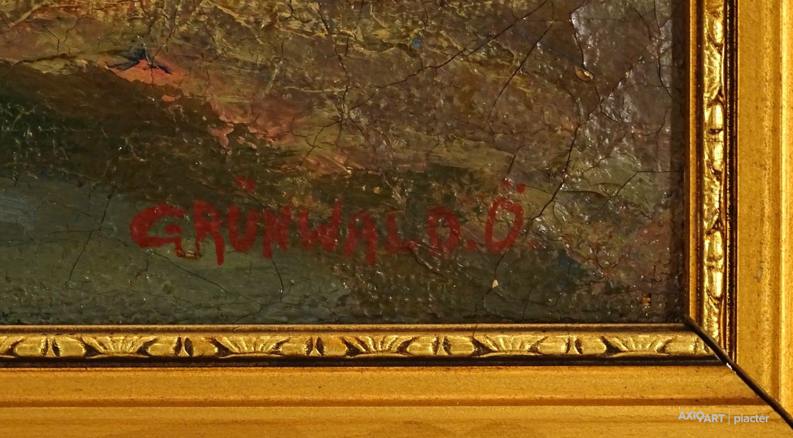 [1F312/002] Olaj vászon festmény (feszítőkeret nélkül), régi szép állapotú aranyozott keretben. Jelzés jobbra lent: GRÜNWALD Ö. Magasság: 66.5 cm Szélesség: 76 cm Súly: 3.18 kg