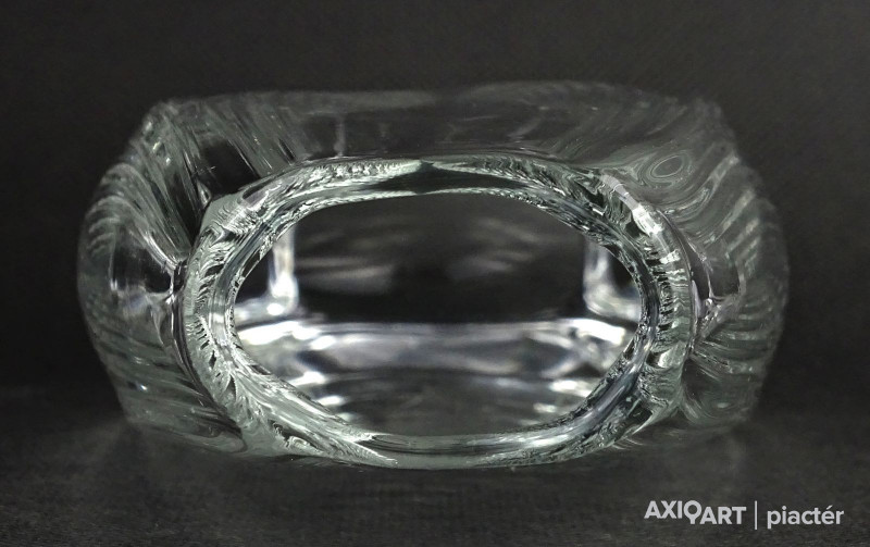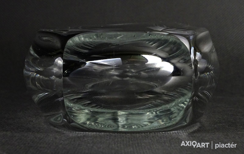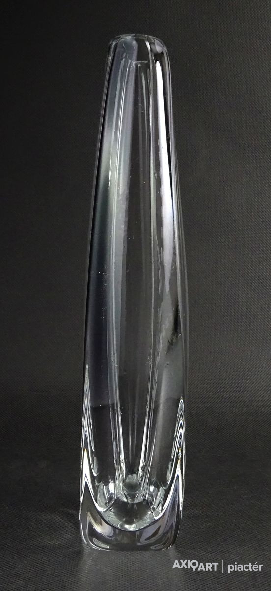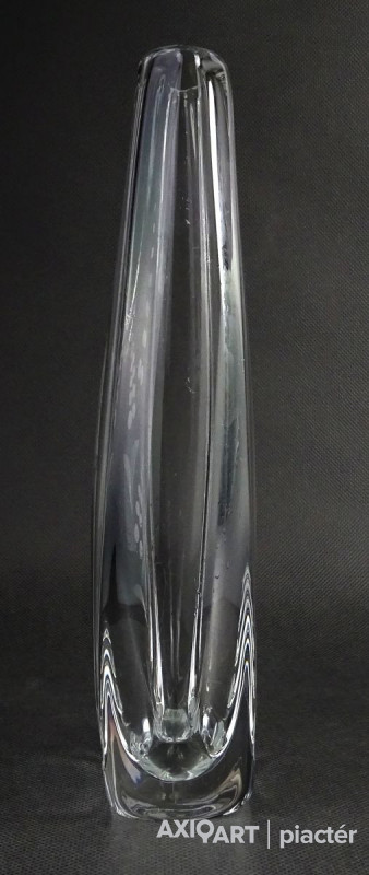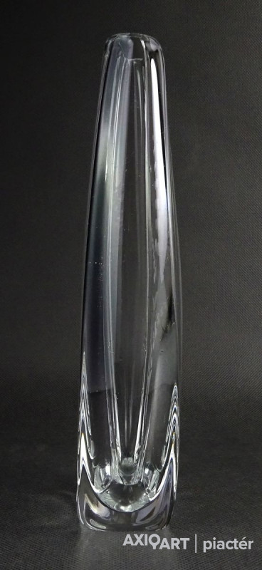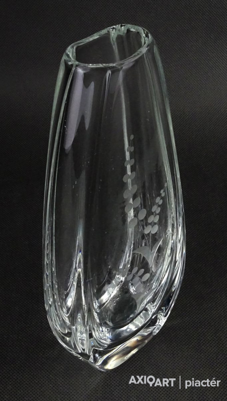[1O212/Z046] Hibátlan állapotú, színezett fúvott üveg váza, talpas üveg váza vagy üveg kupa. Skandináv design üveg. Talpán a fúvás szakítás nyoma szépen kivehető. Magasság: 14 cm Szélesség: 6.5 cm Súly: 0.215 kg Erik Höglund  Ugrás a navigációhozUgrás a kereséshez A papról (1902–1971) lásd Erik Höglund (pap) . Erik Höglund Született 1932. január 31. Karlskrona , Blekinge megye Halál 1998. január 27. (65 éves) Maria Magdalena plébánia , Stockholm Állampolgárság svéd Foglalkozás/megbízás Tervező, művész Ismert Tervezés Koszta Boda számára Feleség Maerit Levin (sz. 1953–1967; elvált) Ingrid Höglund (sz. 1974–1998; halála) Partner Monica Backström (partner 1968-1972) Rokonok Anna Höglund (lánya) Erika Höglund (lánya) Albin Höglund (fia)  Erik Sylvester Höglund , 1932. január 31-én született Karlskronában , 1998. január 27-én halt meg a stockholmi Maria Magdalena plébánián , svéd szobrász , festő , grafikus és üvegművész . Életrajz  Erik Höglund Torsten Höglund és Jenny Jonsson könyvelő fia, valamint Tore Enar Höglund szobrász és grafikus öccse volt . Tanulmányait a stockholmi Konstfackban végezte , először dekorfestészetet Fritz Sjöströmnek , majd szobrászatot Robert Nilssonnak , végül 1951–1952-ben Harald Sallbergnek grafikát . Erik Rosén , a Boda Üveggyár 1953 és 1973 között dolgozó tervezője fogadta be , és ez idő alatt jött el, hogy átalakítsa a svéd műüveggyártást az üvegtermékek kinézetére vonatkozó új ötletek bevezetésével. Ösztöndíja többek között metszetekkel kapcsolatban, a színek és a földes, aszimmetrikus dizájn sikeres lett a külpiacon. Bodán töltött ideje alatt fenyővel, vasalással és bútorokkal is foglalkozott. Később más üveggyárakkal is együttműködött, például a Pukeberggel , a Lindshammarral és a Studioglas Strömbergshyttannal . 1968-ban Monica Backström üvegművésszel megalapította a Backström & Höglund Design AB formatervező céget, amely bútorok, háztartási eszközök és használati tárgyak tervezésével foglalkozik. Höglund tagja volt a Vet Hut AB-nek is, amelyet 1971-ben alapított a Boda glasbruk tíz tervezője szokásos munkájuk mellett: Erik Höglund, Monica Backström, Ann Wolff , Göran Wärff , Bertil Vallien , Ulrica Hydman-Vallien , Per Arne. Lundahl, Liselotte Jörgensdotter, Gunhild Sinnemark és Rolf Sinnemark . Erik Höglund szobrászként számos köztéri dekorációt készített különféle anyagokból, köztük téglából és betonból. Ezt követően gyakran dolgozott együtt olyan építészekkel, mint Jon Höjer a Höjer & Ljungqvistnél , Bengt Gate és Lars Ågren .  Kiállítás  A stockholmi Palmcrantzska gyárban korábban Ulf G. Lindén állandó kiállítása volt Erik Höglund alkotásaival. Ezt a gyűjteményt 2009 szeptemberében a karlskronai Blekinge Múzeumnak adományozták.  Közművek válogatásban  Két állat és egy játék (1966), gránit, Bredängs Torg Stockholmban. Fiskargumman a karlskronai halpiacon. Négyzet alakú oszlop Gävle-ben Erik Höglund mintegy 150 köztéri dekorációt készített üvegből, bronzból, kovácsolásból, téglából, gránitból és betonból. Kerékpárosok I (1956), bronz, a trelleborgi oktatási intézmény Kerékpárosok II (1957), bronz, a karlskogai oktatási intézmény Kerékpárosok III (1957), bronz, stockholmi Hökarängens iskola Az élő szó (1958), festmény a nybrói városi könyvtárban Kerékpárosok IV (1958), bronz, Handverkstorget Sandvikenben Kerékpárosok V (1959), Sjöboskolan, Borås Falfestmény üvegablak (1962) a borgholmi templomban Kristallglasskogen (1964), üvegmozaik fal, Ellagårdsskolan Täby községben A tudás fája (1966), vasműves és üveg, Folkets Hus Nybroban Állatszobrok (1964-67), gránit, Hallsberg Két állat és egy játék (1966), gránit, Bredängs torg Stockholmban Tó szökőkúttal (1967), gránit, Trelleborg Ülő terhes nő (1971), bronz, Haganässkolan Älmhultban Hajó halászokkal (1972), vas, üveg és fa, Hotel Witt Kalmarban Négyzet alakú oszlop (1971-74), beton, Stortorget Gävle -ben A súlyemelő (1974), bronz, az östersundi sportcsarnok Gyűrűk a vízen (1976-77), bronz, Rödeby Torg , Karlskrona önkormányzat Az élet játéka , tégladomborműves fal és régi érmék , üveg, mindkettő 1979–1980, Sparbanken Linköpingben Úszók (1980), kovácsoltvas, úszócsarnok Rödebyben , Karlskrona önkormányzat Cirkuszgömb (1980-81), kovácsoltvas, Kristianstad megyei tanács Fiskargumman (1981-82), bronz, halpiac Karlskronában Az olvasócsalád (1983), bronz és üveg, Kalmár Városi Könyvtár Életmentő (1985), réz, úszócsarnok Haganässkolanban Älmhultban Dans bort i vägen (1985), bronz, Torsås volt Anya és gyermeke , bronz, Trelleborg A büszke apa és Két ember , bronz, Eskadern lakónegyed Linköpingben Játssz szobrot téglából, Lönneberga óvoda, Norra Fäladen Lundban  Forrás: wikipédia