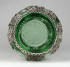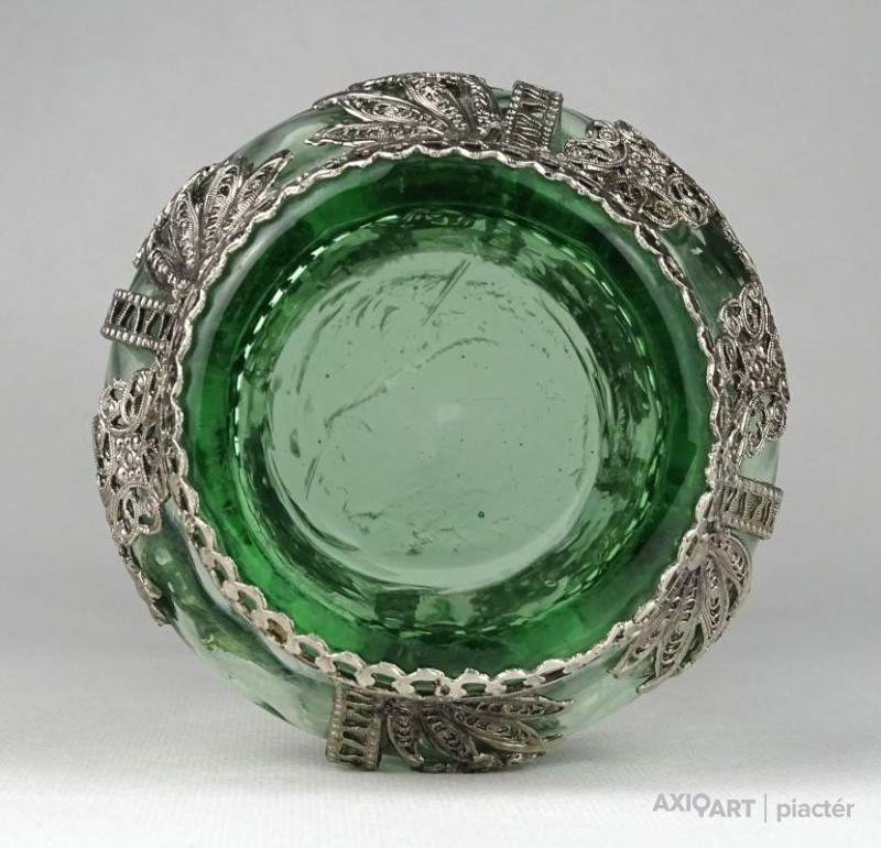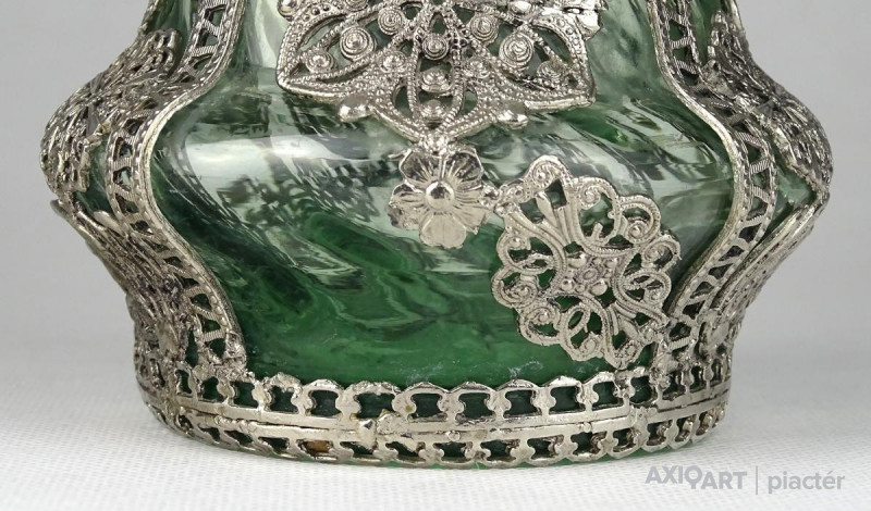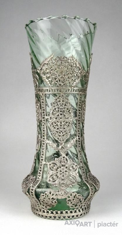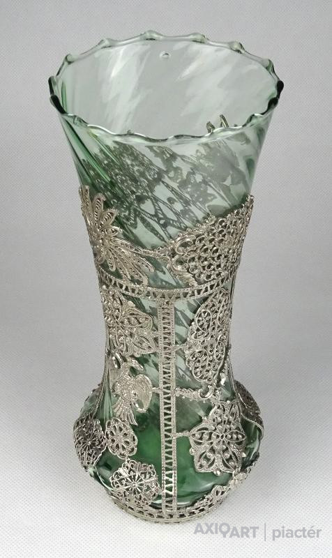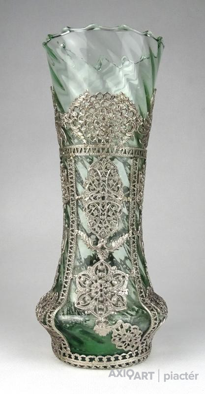 Gyönyörű antik fújt üveg váza filigrános veretezéssel 22 cm