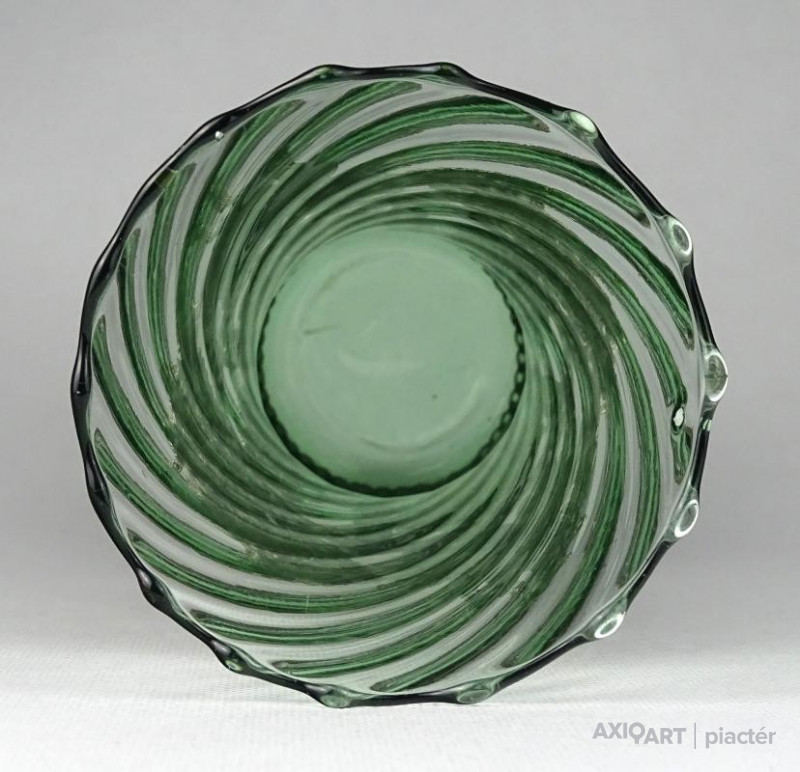 [1O212/Z046] Hibátlan állapotú, színezett fúvott üveg váza, talpas üveg váza vagy üveg kupa. Skandináv design üveg. Talpán a fúvás szakítás nyoma szépen kivehető. Magasság: 14 cm Szélesség: 6.5 cm Súly: 0.215 kg Erik Höglund  Ugrás a navigációhozUgrás a kereséshez A papról (1902–1971) lásd Erik Höglund (pap) . Erik Höglund Született 1932. január 31. Karlskrona , Blekinge megye Halál 1998. január 27. (65 éves) Maria Magdalena plébánia , Stockholm Állampolgárság svéd Foglalkozás/megbízás Tervező, művész Ismert Tervezés Koszta Boda számára Feleség Maerit Levin (sz. 1953–1967; elvált) Ingrid Höglund (sz. 1974–1998; halála) Partner Monica Backström (partner 1968-1972) Rokonok Anna Höglund (lánya) Erika Höglund (lánya) Albin Höglund (fia)  Erik Sylvester Höglund , 1932. január 31-én született Karlskronában , 1998. január 27-én halt meg a stockholmi Maria Magdalena plébánián , svéd szobrász , festő , grafikus és üvegművész . Életrajz  Erik Höglund Torsten Höglund és Jenny Jonsson könyvelő fia, valamint Tore Enar Höglund szobrász és grafikus öccse volt . Tanulmányait a stockholmi Konstfackban végezte , először dekorfestészetet Fritz Sjöströmnek , majd szobrászatot Robert Nilssonnak , végül 1951–1952-ben Harald Sallbergnek grafikát . Erik Rosén , a Boda Üveggyár 1953 és 1973 között dolgozó tervezője fogadta be , és ez idő alatt jött el, hogy átalakítsa a svéd műüveggyártást az üvegtermékek kinézetére vonatkozó új ötletek bevezetésével. Ösztöndíja többek között metszetekkel kapcsolatban, a színek és a földes, aszimmetrikus dizájn sikeres lett a külpiacon. Bodán töltött ideje alatt fenyővel, vasalással és bútorokkal is foglalkozott. Később más üveggyárakkal is együttműködött, például a Pukeberggel , a Lindshammarral és a Studioglas Strömbergshyttannal . 1968-ban Monica Backström üvegművésszel megalapította a Backström & Höglund Design AB formatervező céget, amely bútorok, háztartási eszközök és használati tárgyak tervezésével foglalkozik. Höglund tagja volt a Vet Hut AB-nek is, amelyet 1971-ben alapított a Boda glasbruk tíz tervezője szokásos munkájuk mellett: Erik Höglund, Monica Backström, Ann Wolff , Göran Wärff , Bertil Vallien , Ulrica Hydman-Vallien , Per Arne. Lundahl, Liselotte Jörgensdotter, Gunhild Sinnemark és Rolf Sinnemark . Erik Höglund szobrászként számos köztéri dekorációt készített különféle anyagokból, köztük téglából és betonból. Ezt követően gyakran dolgozott együtt olyan építészekkel, mint Jon Höjer a Höjer & Ljungqvistnél , Bengt Gate és Lars Ågren .  Kiállítás  A stockholmi Palmcrantzska gyárban korábban Ulf G. Lindén állandó kiállítása volt Erik Höglund alkotásaival. Ezt a gyűjteményt 2009 szeptemberében a karlskronai Blekinge Múzeumnak adományozták.  Közművek válogatásban  Két állat és egy játék (1966), gránit, Bredängs Torg Stockholmban. Fiskargumman a karlskronai halpiacon. Négyzet alakú oszlop Gävle-ben Erik Höglund mintegy 150 köztéri dekorációt készített üvegből, bronzból, kovácsolásból, téglából, gránitból és betonból. Kerékpárosok I (1956), bronz, a trelleborgi oktatási intézmény Kerékpárosok II (1957), bronz, a karlskogai oktatási intézmény Kerékpárosok III (1957), bronz, stockholmi Hökarängens iskola Az élő szó (1958), festmény a nybrói városi könyvtárban Kerékpárosok IV (1958), bronz, Handverkstorget Sandvikenben Kerékpárosok V (1959), Sjöboskolan, Borås Falfestmény üvegablak (1962) a borgholmi templomban Kristallglasskogen (1964), üvegmozaik fal, Ellagårdsskolan Täby községben A tudás fája (1966), vasműves és üveg, Folkets Hus Nybroban Állatszobrok (1964-67), gránit, Hallsberg Két állat és egy játék (1966), gránit, Bredängs torg Stockholmban Tó szökőkúttal (1967), gránit, Trelleborg Ülő terhes nő (1971), bronz, Haganässkolan Älmhultban Hajó halászokkal (1972), vas, üveg és fa, Hotel Witt Kalmarban Négyzet alakú oszlop (1971-74), beton, Stortorget Gävle -ben A súlyemelő (1974), bronz, az östersundi sportcsarnok Gyűrűk a vízen (1976-77), bronz, Rödeby Torg , Karlskrona önkormányzat Az élet játéka , tégladomborműves fal és régi érmék , üveg, mindkettő 1979–1980, Sparbanken Linköpingben Úszók (1980), kovácsoltvas, úszócsarnok Rödebyben , Karlskrona önkormányzat Cirkuszgömb (1980-81), kovácsoltvas, Kristianstad megyei tanács Fiskargumman (1981-82), bronz, halpiac Karlskronában Az olvasócsalád (1983), bronz és üveg, Kalmár Városi Könyvtár Életmentő (1985), réz, úszócsarnok Haganässkolanban Älmhultban Dans bort i vägen (1985), bronz, Torsås volt Anya és gyermeke , bronz, Trelleborg A büszke apa és Két ember , bronz, Eskadern lakónegyed Linköpingben Játssz szobrot téglából, Lönneberga óvoda, Norra Fäladen Lundban  Forrás: wikipédia