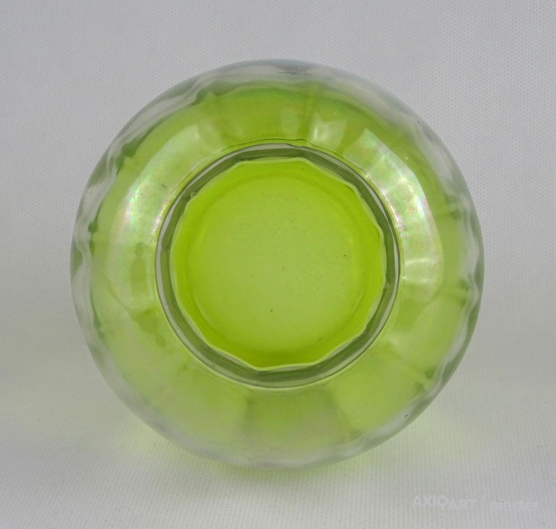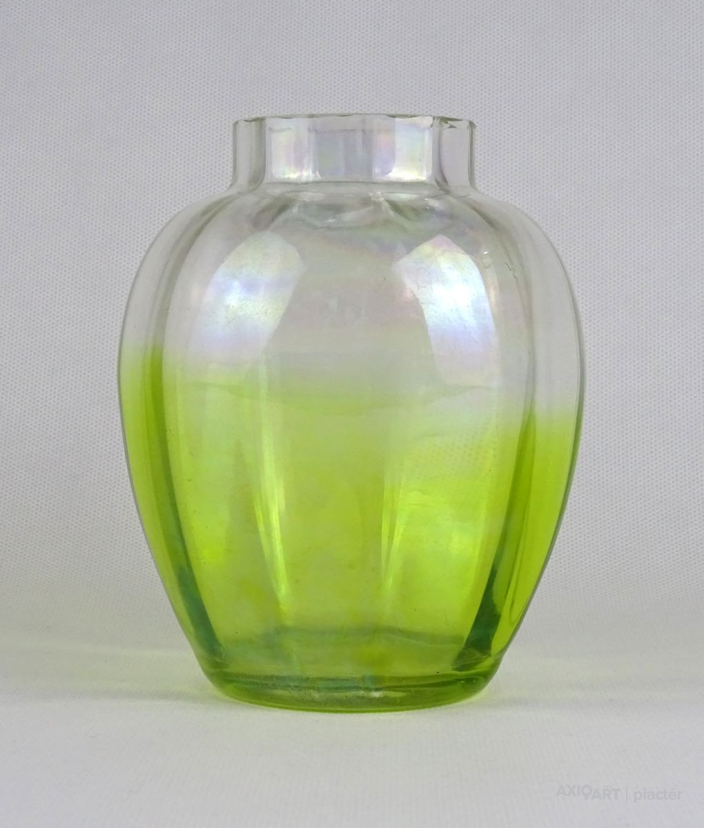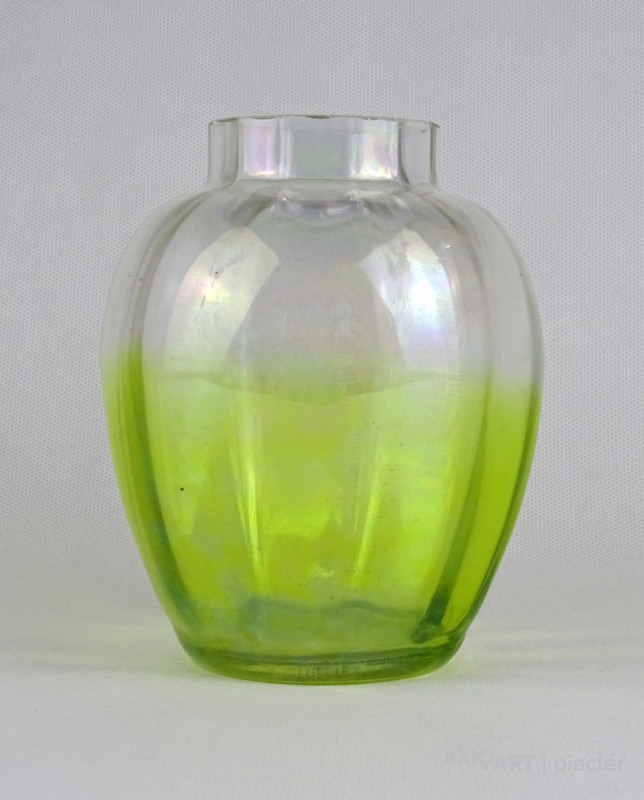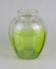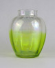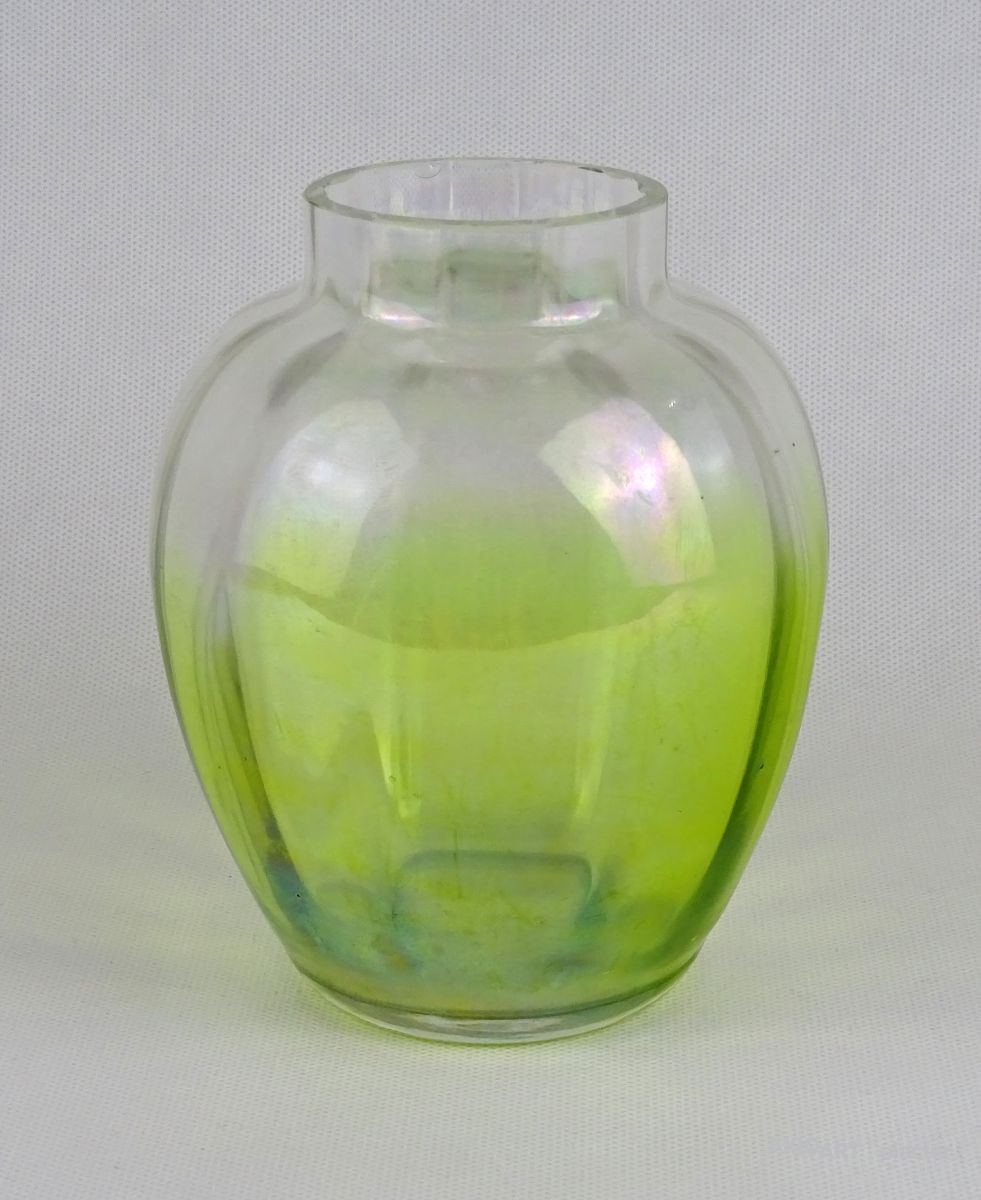 Gyönyörű antik gerezdes irizáló zöld átmenetes üveg váza 14 cm