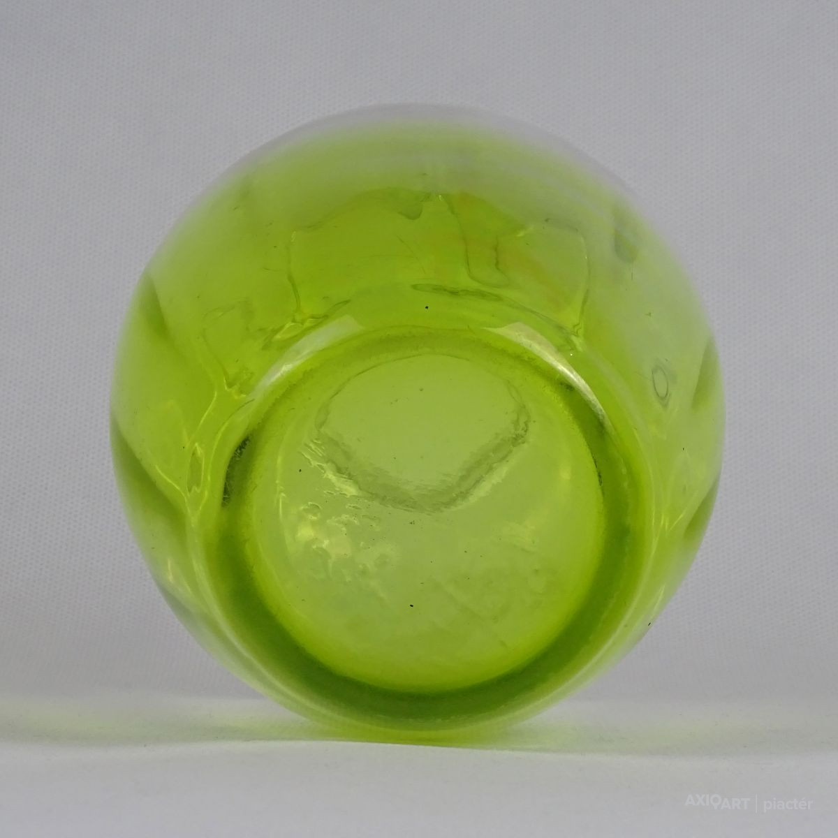 [1O212/Z046] Hibátlan állapotú, színezett fúvott üveg váza, talpas üveg váza vagy üveg kupa. Skandináv design üveg. Talpán a fúvás szakítás nyoma szépen kivehető. Magasság: 14 cm Szélesség: 6.5 cm Súly: 0.215 kg Erik Höglund  Ugrás a navigációhozUgrás a kereséshez A papról (1902–1971) lásd Erik Höglund (pap) . Erik Höglund Született 1932. január 31. Karlskrona , Blekinge megye Halál 1998. január 27. (65 éves) Maria Magdalena plébánia , Stockholm Állampolgárság svéd Foglalkozás/megbízás Tervező, művész Ismert Tervezés Koszta Boda számára Feleség Maerit Levin (sz. 1953–1967; elvált) Ingrid Höglund (sz. 1974–1998; halála) Partner Monica Backström (partner 1968-1972) Rokonok Anna Höglund (lánya) Erika Höglund (lánya) Albin Höglund (fia)  Erik Sylvester Höglund , 1932. január 31-én született Karlskronában , 1998. január 27-én halt meg a stockholmi Maria Magdalena plébánián , svéd szobrász , festő , grafikus és üvegművész . Életrajz  Erik Höglund Torsten Höglund és Jenny Jonsson könyvelő fia, valamint Tore Enar Höglund szobrász és grafikus öccse volt . Tanulmányait a stockholmi Konstfackban végezte , először dekorfestészetet Fritz Sjöströmnek , majd szobrászatot Robert Nilssonnak , végül 1951–1952-ben Harald Sallbergnek grafikát . Erik Rosén , a Boda Üveggyár 1953 és 1973 között dolgozó tervezője fogadta be , és ez idő alatt jött el, hogy átalakítsa a svéd műüveggyártást az üvegtermékek kinézetére vonatkozó új ötletek bevezetésével. Ösztöndíja többek között metszetekkel kapcsolatban, a színek és a földes, aszimmetrikus dizájn sikeres lett a külpiacon. Bodán töltött ideje alatt fenyővel, vasalással és bútorokkal is foglalkozott. Később más üveggyárakkal is együttműködött, például a Pukeberggel , a Lindshammarral és a Studioglas Strömbergshyttannal . 1968-ban Monica Backström üvegművésszel megalapította a Backström & Höglund Design AB formatervező céget, amely bútorok, háztartási eszközök és használati tárgyak tervezésével foglalkozik. Höglund tagja volt a Vet Hut AB-nek is, amelyet 1971-ben alapított a Boda glasbruk tíz tervezője szokásos munkájuk mellett: Erik Höglund, Monica Backström, Ann Wolff , Göran Wärff , Bertil Vallien , Ulrica Hydman-Vallien , Per Arne. Lundahl, Liselotte Jörgensdotter, Gunhild Sinnemark és Rolf Sinnemark . Erik Höglund szobrászként számos köztéri dekorációt készített különféle anyagokból, köztük téglából és betonból. Ezt követően gyakran dolgozott együtt olyan építészekkel, mint Jon Höjer a Höjer & Ljungqvistnél , Bengt Gate és Lars Ågren .  Kiállítás  A stockholmi Palmcrantzska gyárban korábban Ulf G. Lindén állandó kiállítása volt Erik Höglund alkotásaival. Ezt a gyűjteményt 2009 szeptemberében a karlskronai Blekinge Múzeumnak adományozták.  Közművek válogatásban  Két állat és egy játék (1966), gránit, Bredängs Torg Stockholmban. Fiskargumman a karlskronai halpiacon. Négyzet alakú oszlop Gävle-ben Erik Höglund mintegy 150 köztéri dekorációt készített üvegből, bronzból, kovácsolásból, téglából, gránitból és betonból. Kerékpárosok I (1956), bronz, a trelleborgi oktatási intézmény Kerékpárosok II (1957), bronz, a karlskogai oktatási intézmény Kerékpárosok III (1957), bronz, stockholmi Hökarängens iskola Az élő szó (1958), festmény a nybrói városi könyvtárban Kerékpárosok IV (1958), bronz, Handverkstorget Sandvikenben Kerékpárosok V (1959), Sjöboskolan, Borås Falfestmény üvegablak (1962) a borgholmi templomban Kristallglasskogen (1964), üvegmozaik fal, Ellagårdsskolan Täby községben A tudás fája (1966), vasműves és üveg, Folkets Hus Nybroban Állatszobrok (1964-67), gránit, Hallsberg Két állat és egy játék (1966), gránit, Bredängs torg Stockholmban Tó szökőkúttal (1967), gránit, Trelleborg Ülő terhes nő (1971), bronz, Haganässkolan Älmhultban Hajó halászokkal (1972), vas, üveg és fa, Hotel Witt Kalmarban Négyzet alakú oszlop (1971-74), beton, Stortorget Gävle -ben A súlyemelő (1974), bronz, az östersundi sportcsarnok Gyűrűk a vízen (1976-77), bronz, Rödeby Torg , Karlskrona önkormányzat Az élet játéka , tégladomborműves fal és régi érmék , üveg, mindkettő 1979–1980, Sparbanken Linköpingben Úszók (1980), kovácsoltvas, úszócsarnok Rödebyben , Karlskrona önkormányzat Cirkuszgömb (1980-81), kovácsoltvas, Kristianstad megyei tanács Fiskargumman (1981-82), bronz, halpiac Karlskronában Az olvasócsalád (1983), bronz és üveg, Kalmár Városi Könyvtár Életmentő (1985), réz, úszócsarnok Haganässkolanban Älmhultban Dans bort i vägen (1985), bronz, Torsås volt Anya és gyermeke , bronz, Trelleborg A büszke apa és Két ember , bronz, Eskadern lakónegyed Linköpingben Játssz szobrot téglából, Lönneberga óvoda, Norra Fäladen Lundban  Forrás: wikipédia