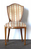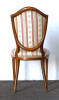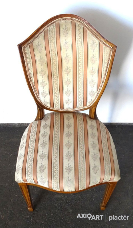 [0X944/KCS] Gyönyörű, hibátlan állapotú támlás szék, szép állapotú csíkos kárpittal. Ülőfelülete epedarúgós, kényelmes. Azonnal enteriőrbe helyezhető állapotban van. Magasság: 97 cm Szélesség: 50 cm