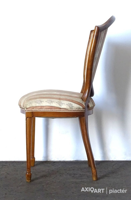 Gyönyörű, hibátlan állapotú támlás szék, szép állapotú csíkos kárpittal. Ülőfelülete epedarúgós, kényelmes. Azonnal enteriőrbe helyezhető állapotban van.
