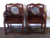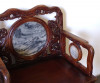 [1F739/BX-2] Gyönyörű, egzotikus keményfából készült, áttört díszes, támlás, karfás szék. Faragott orientalista bútor. Támlájában és a karfák alatt kör alakú márvány betét található. Az 1900-as évek elejéről származó darab. Magasság: 94 cm Szélesség: 60 cm