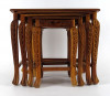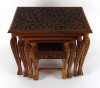 [1H503/BX-2] Gyönyörű, gazdagon faragott, négy darabból álló, egymásba tolható, széthúzható kisasztal készlet. Minden darab lapja és lábai gyönyörűen faragottak. A legkisebb faragott fiókkal rendelkezik. Magasság: 40 cm Szélesség: 30 cm Hosszúság: 45.5 cm Súly: 7.4 kg